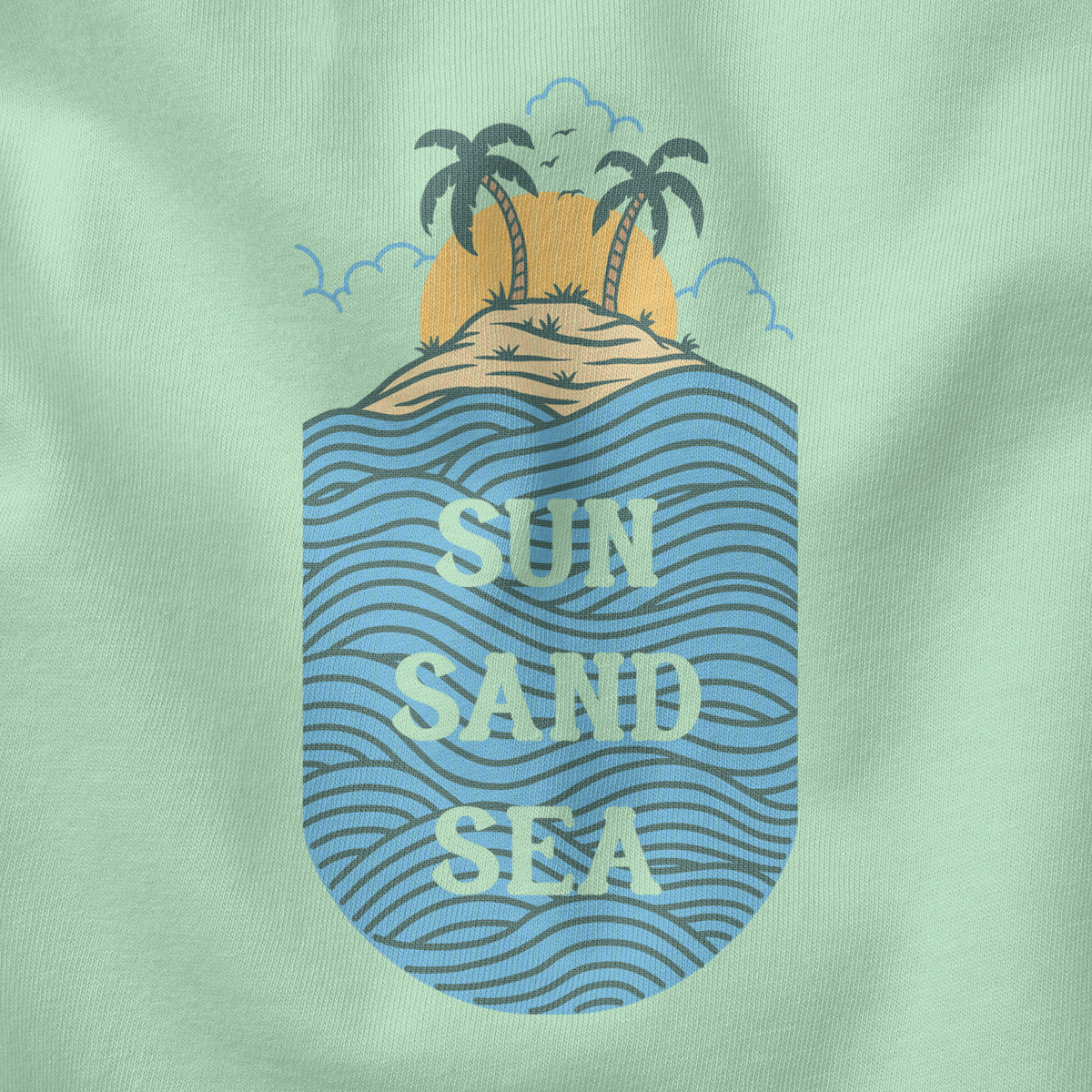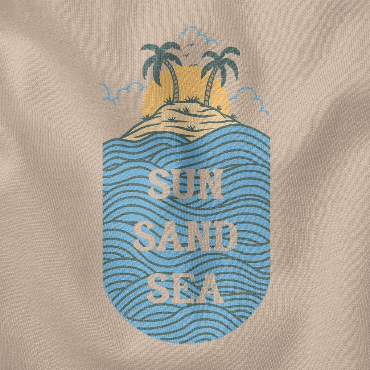 Sun, sand, and sea for summer fun Adult Cotton Tee T-Shirt is ideal for beach lovers. Enjoy walking barefoot on sand, beach fun, sun and sea adventures, sun, sea, and beach fun, and beach life with sun and sea. Made from high-quality cotton, this tee is perfect for casual summer days.