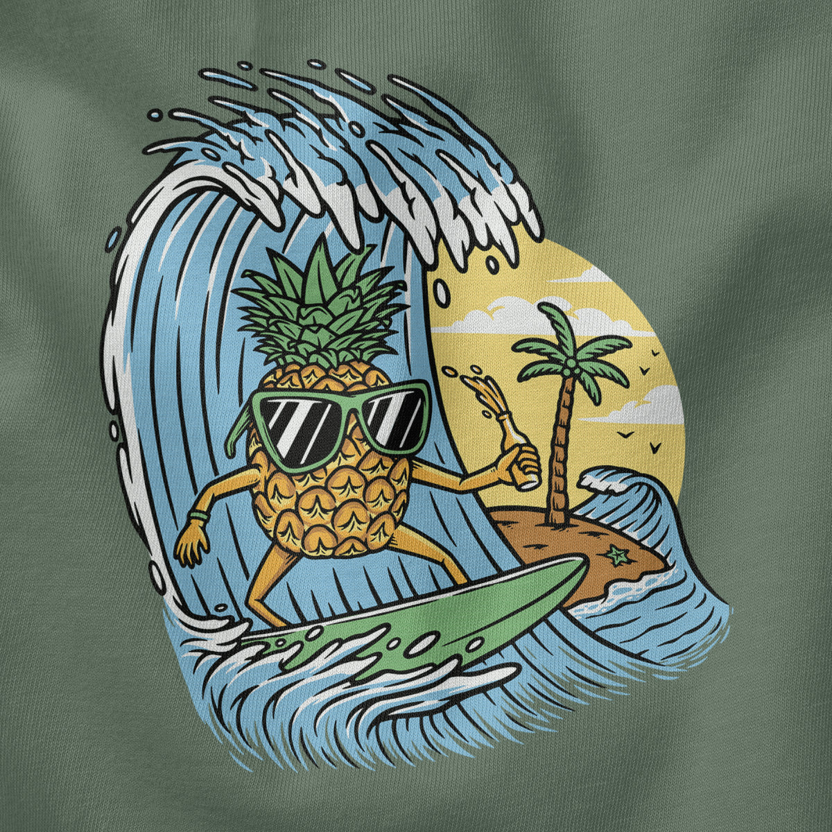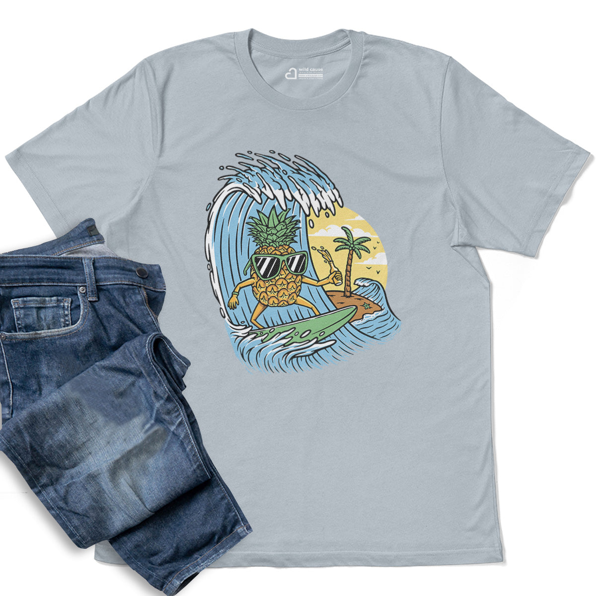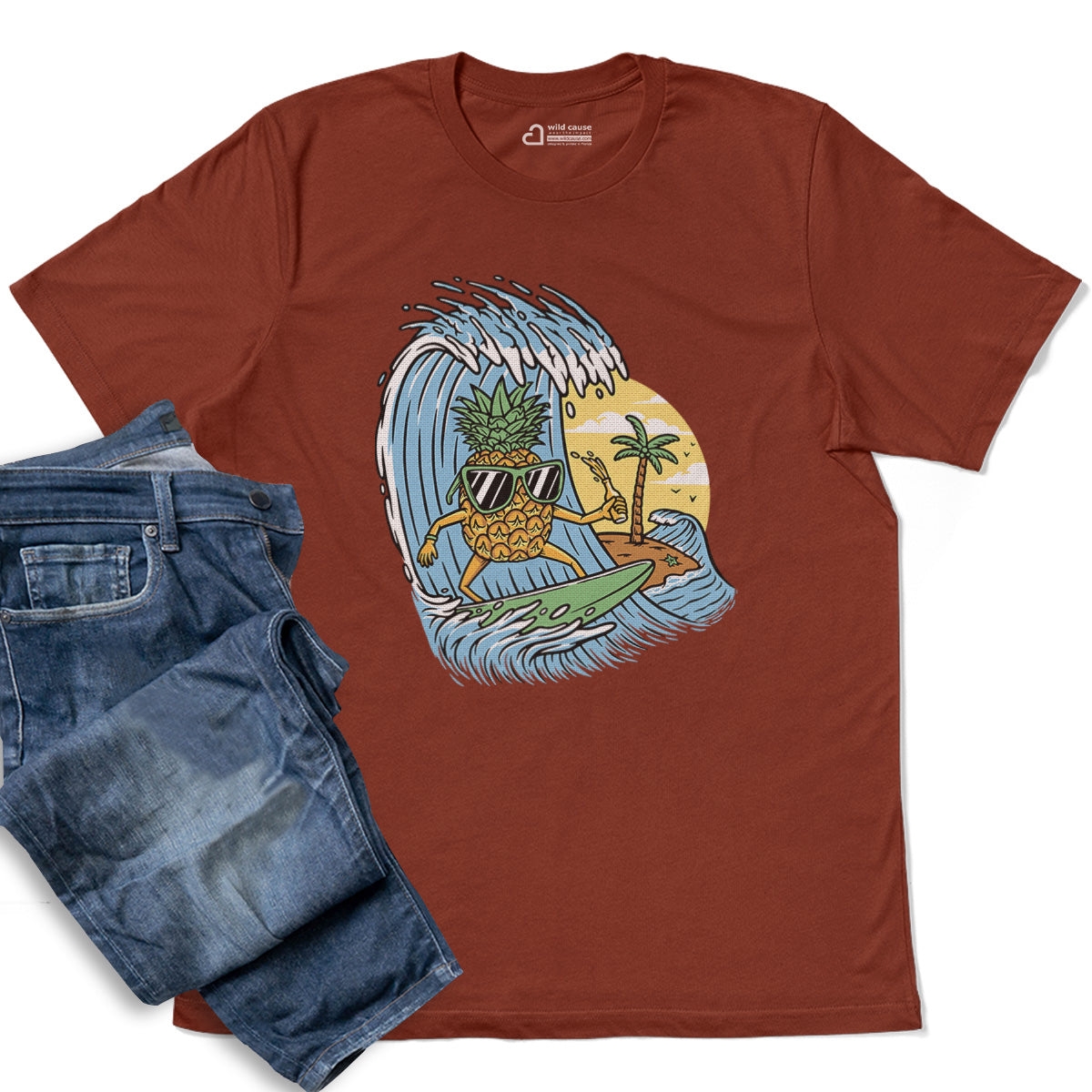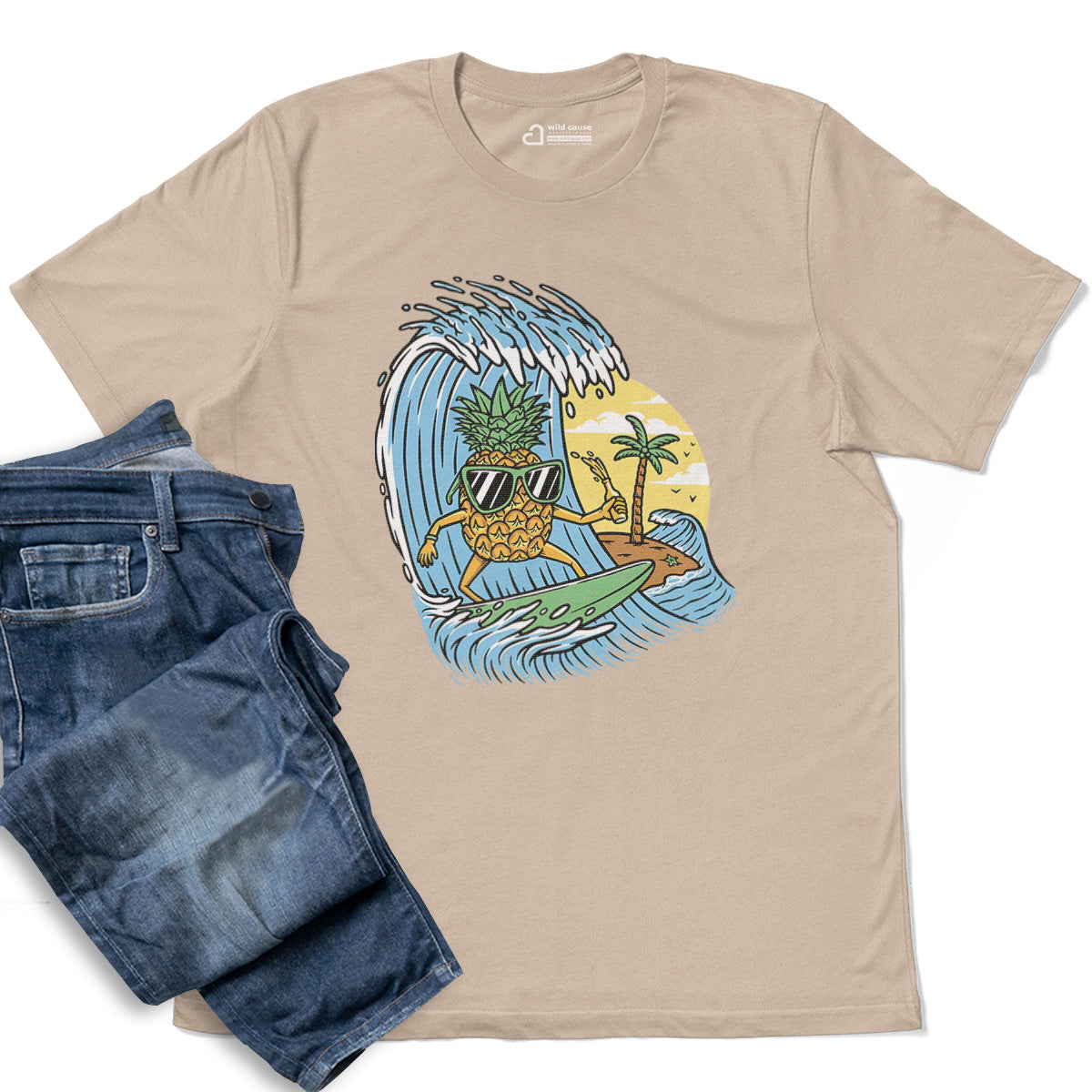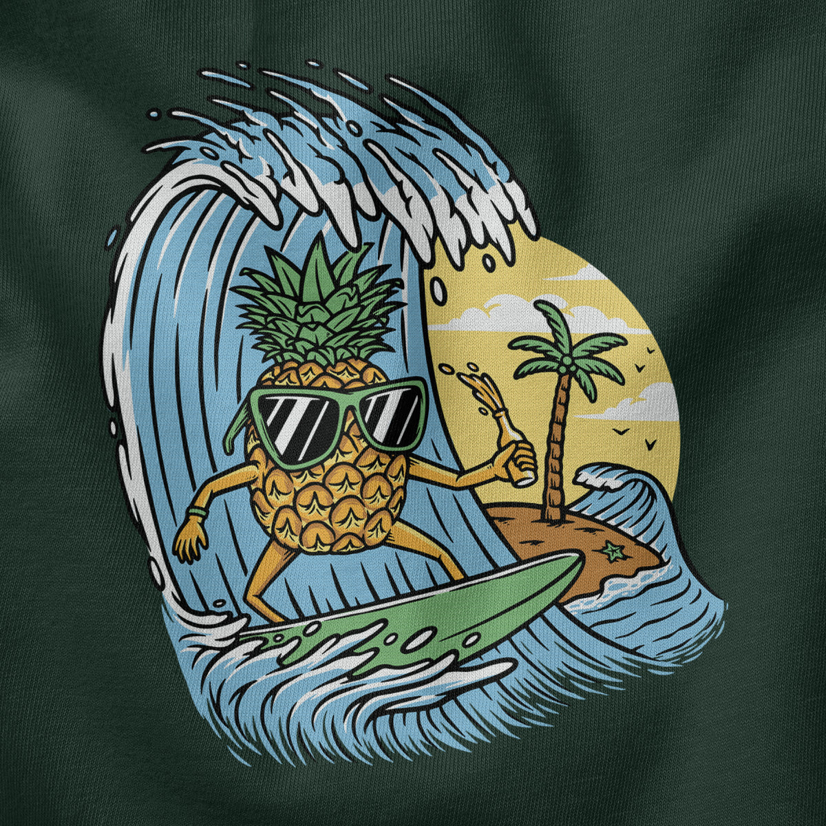 Surfing Pineapple Surfboard Adventure Adult Cotton Tee T-Shirt