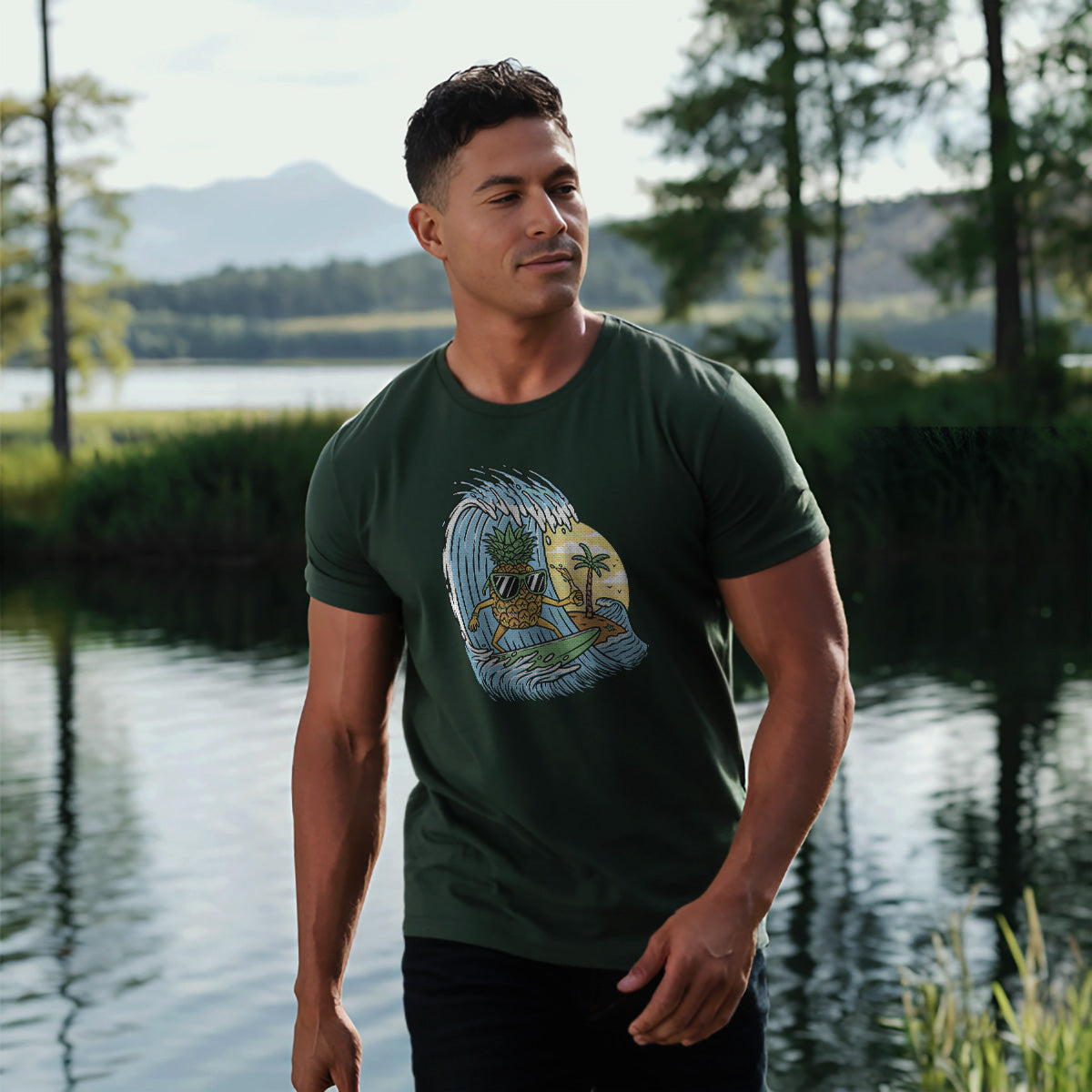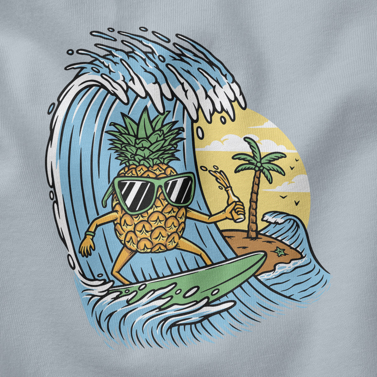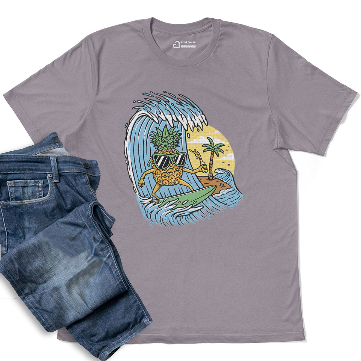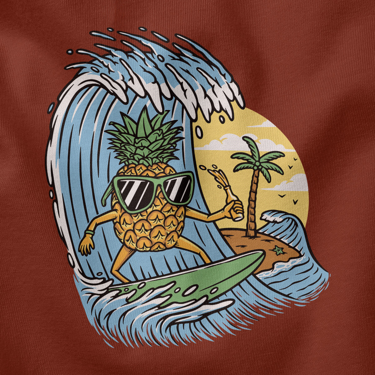 Surfing Pineapple Surfboard Adventure Adult Cotton Tee T-Shirt