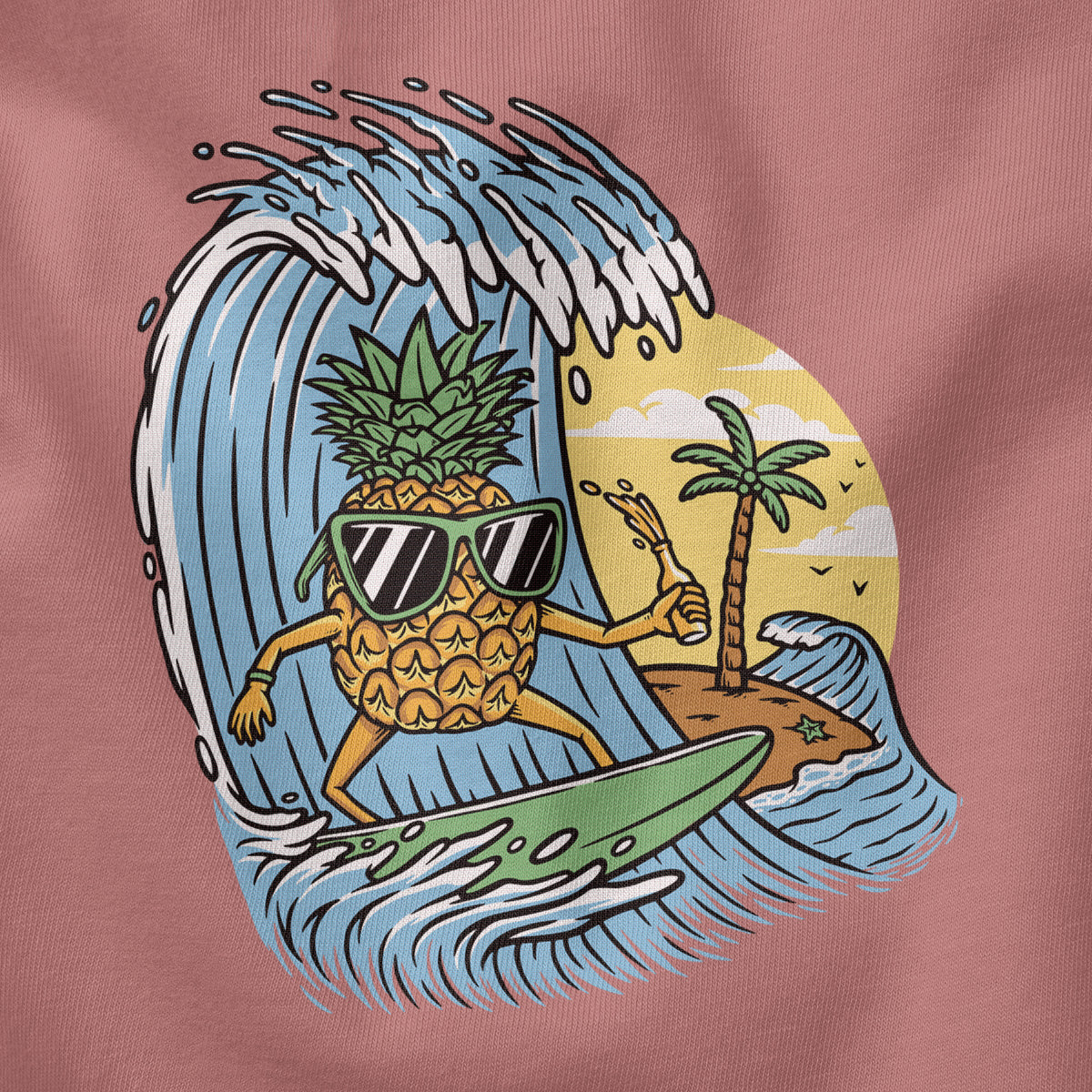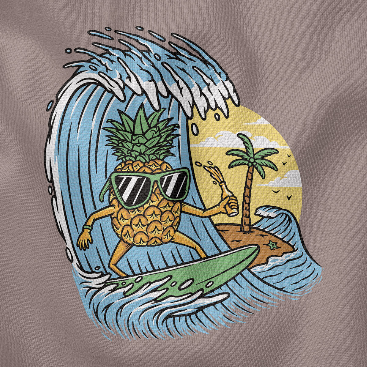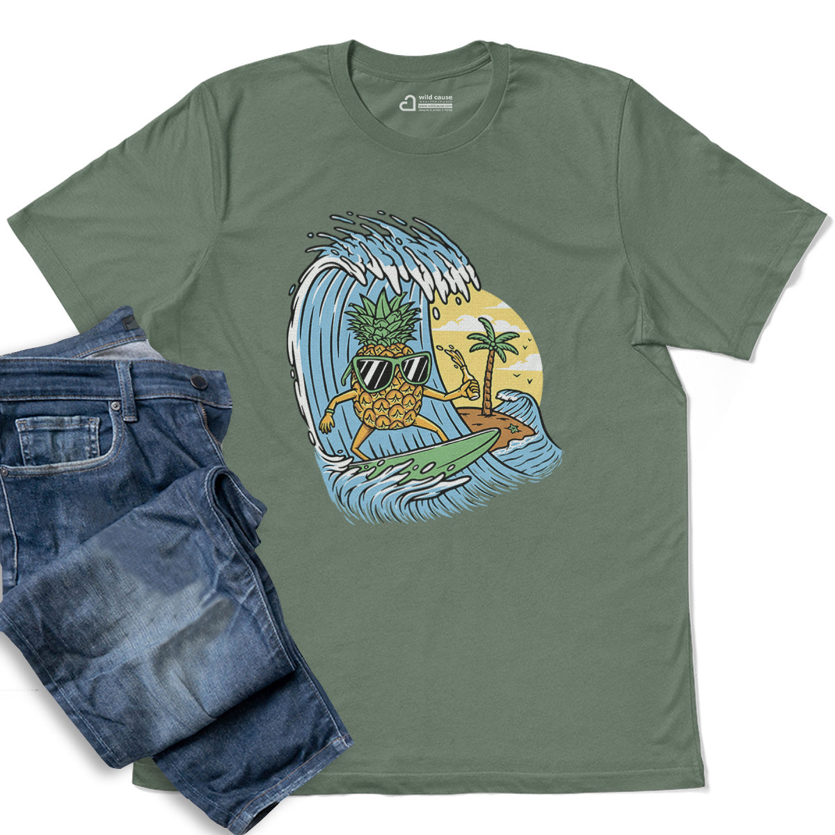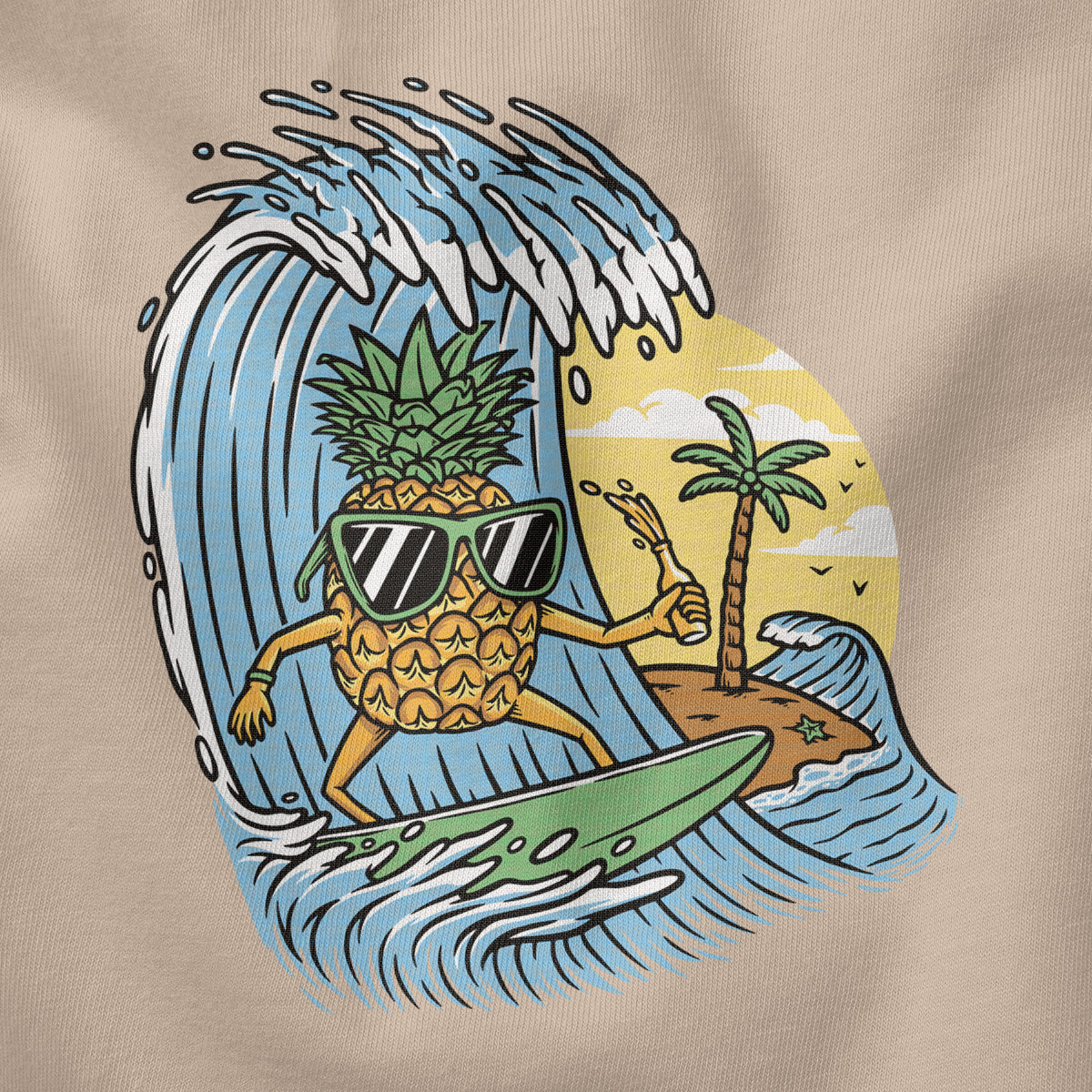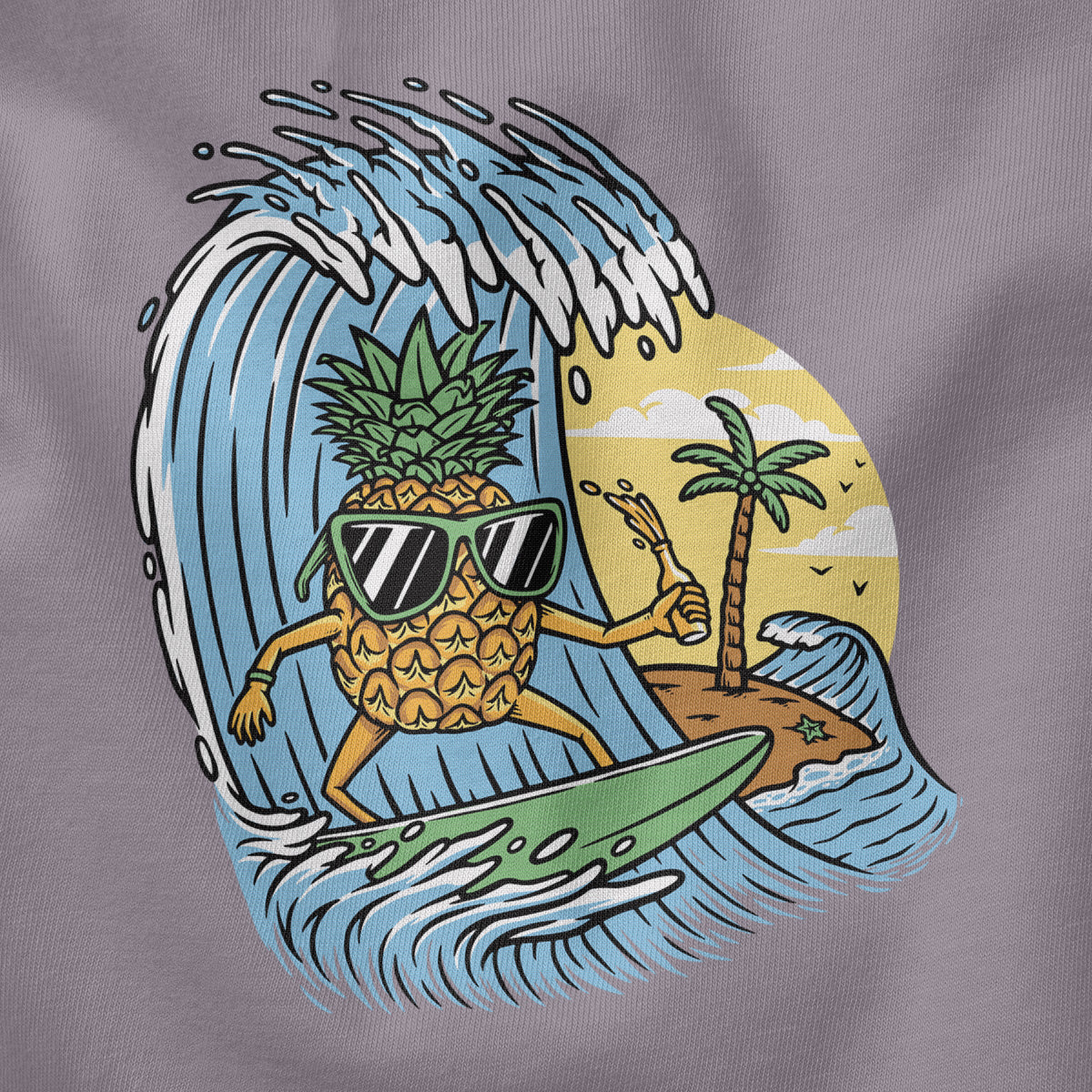 Surfing Pineapple Surfboard Adventure Adult Cotton Tee T-Shirt