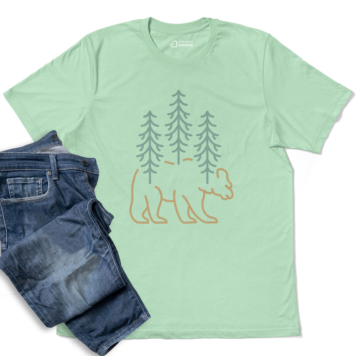 Trekking Through Wild Bears In Forest Adult Cotton Tee T-Shirt $34.99