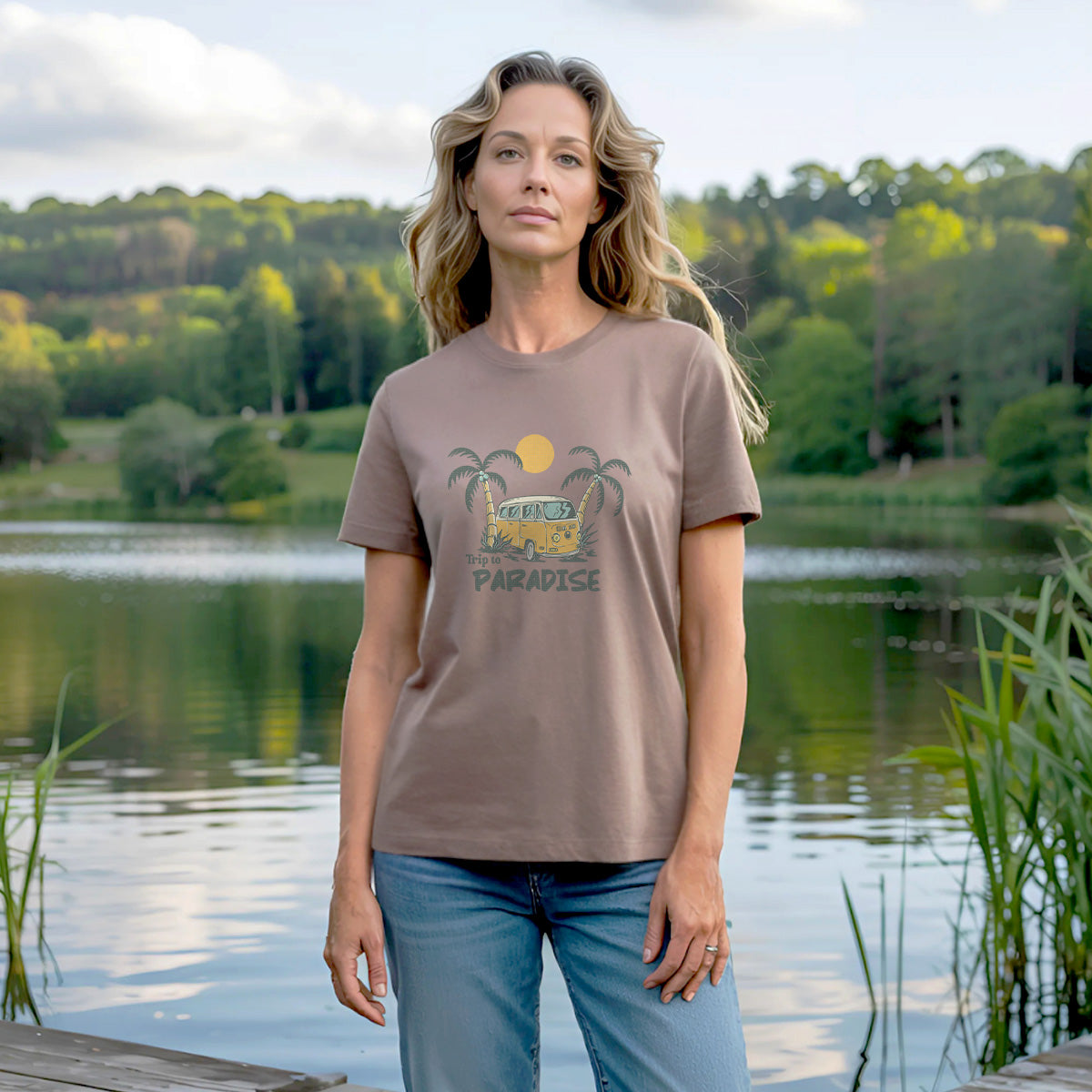 Trip To Paradise Beach Van Life Adult Cotton Tee T-Shirt