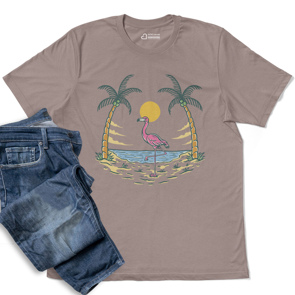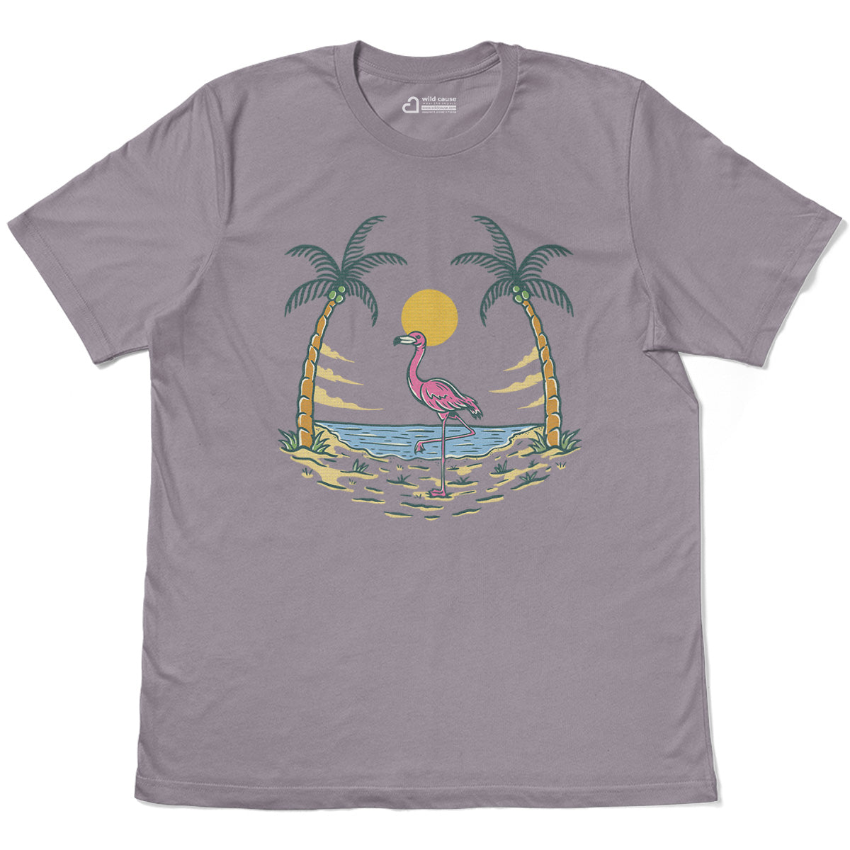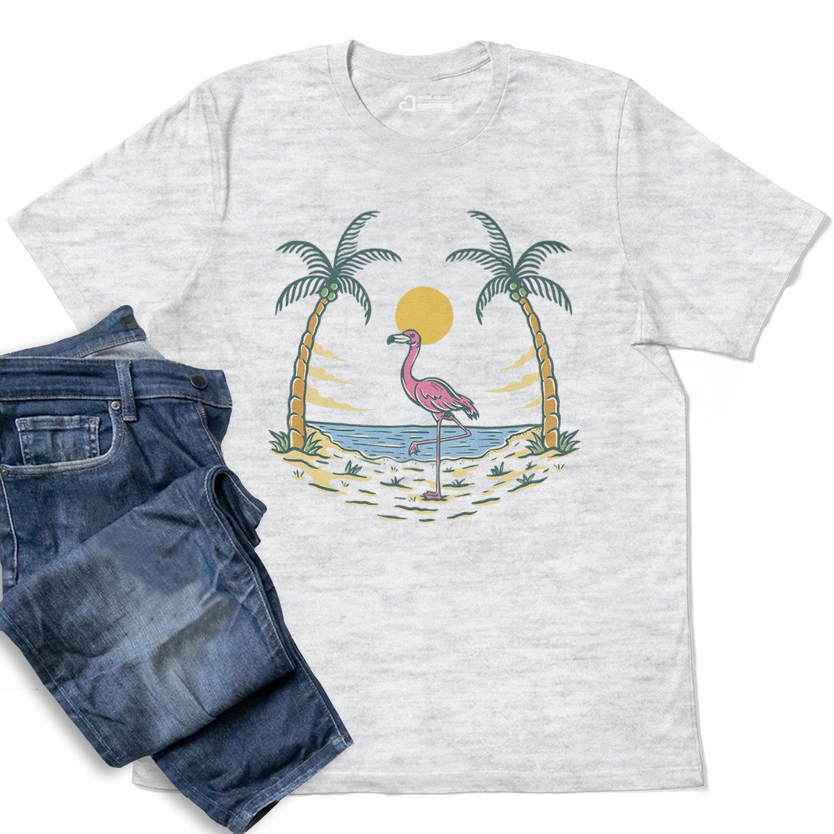 Summer vibes and beach fun await Adult Cotton Tee T-Shirt featuring the Flamingo By The Beach design. Embrace Sunset Beach Gathering with Flamingo Beach Vibes and warm Sunset Beach Days. This Pink Bird Loves Sunset tee is perfect for beach lovers.