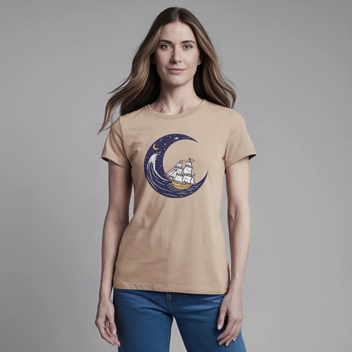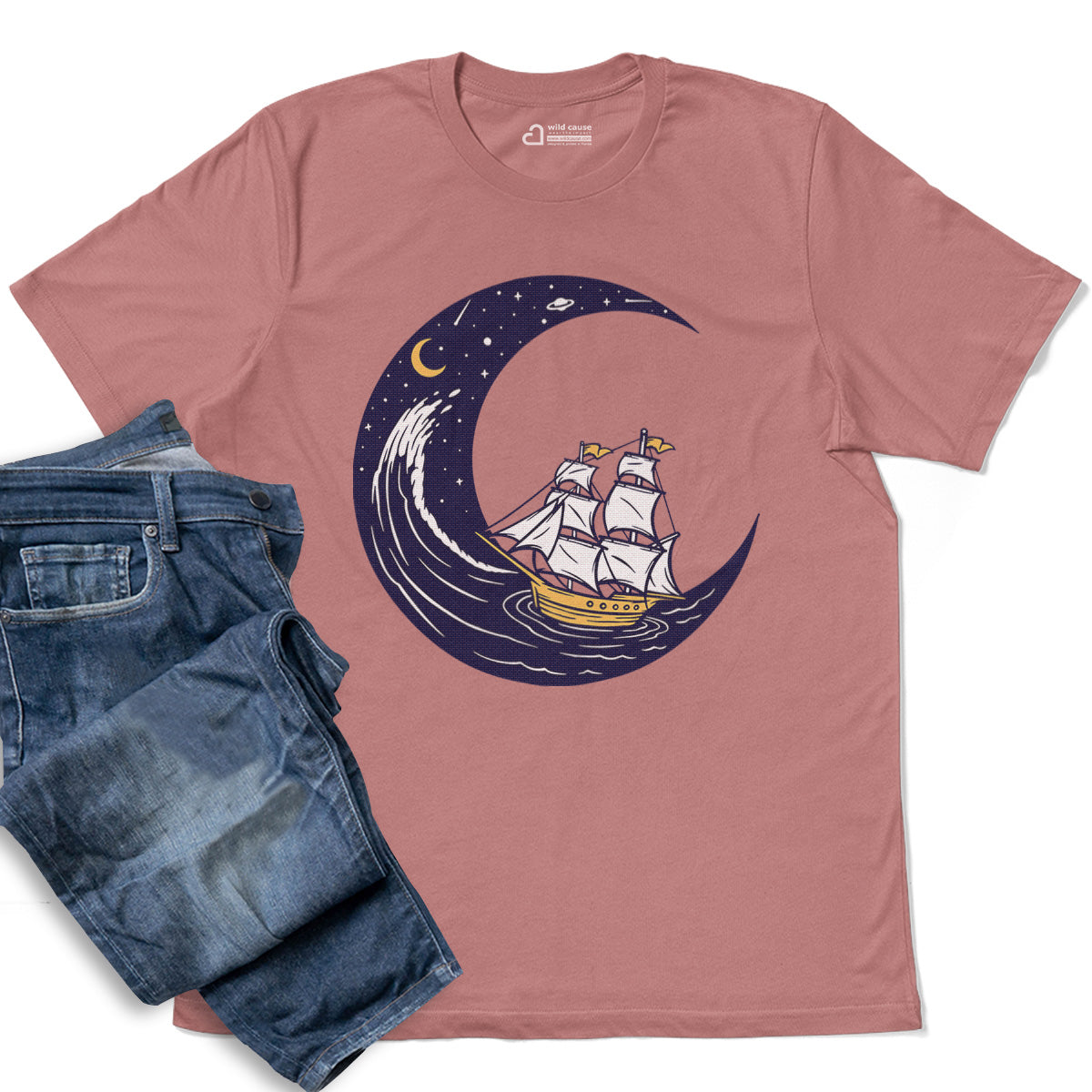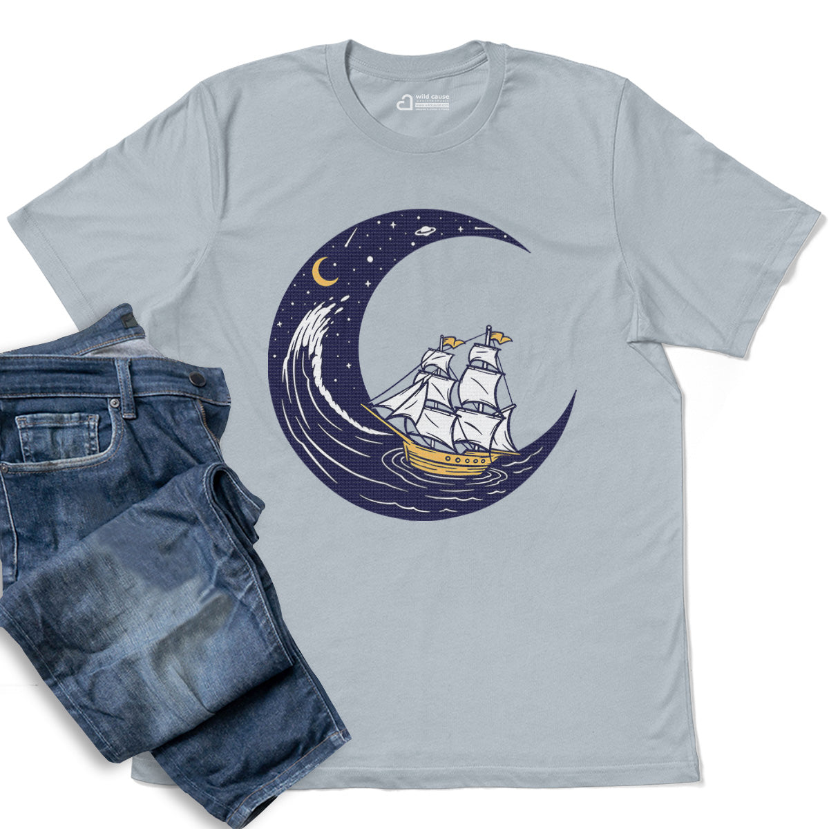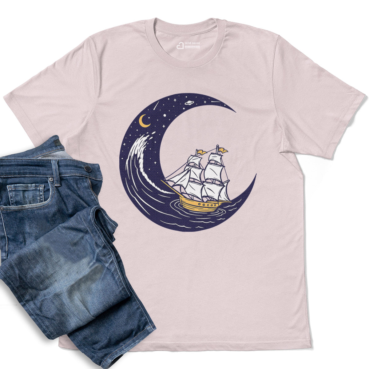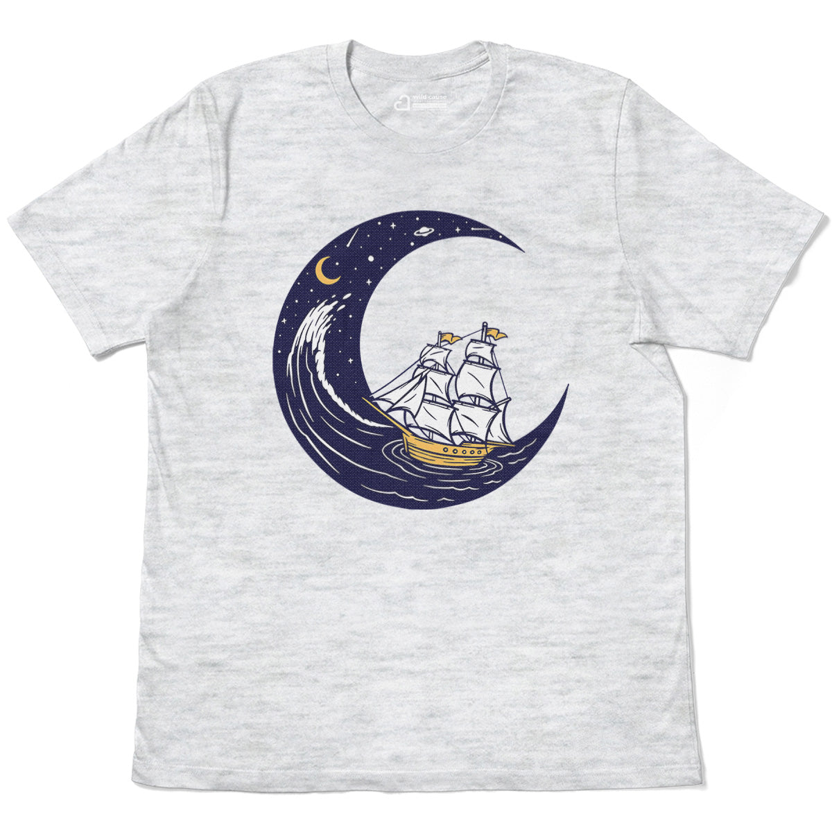 Unknown Sailing Moon Boat Adventure Adult Cotton Tee T-Shirt