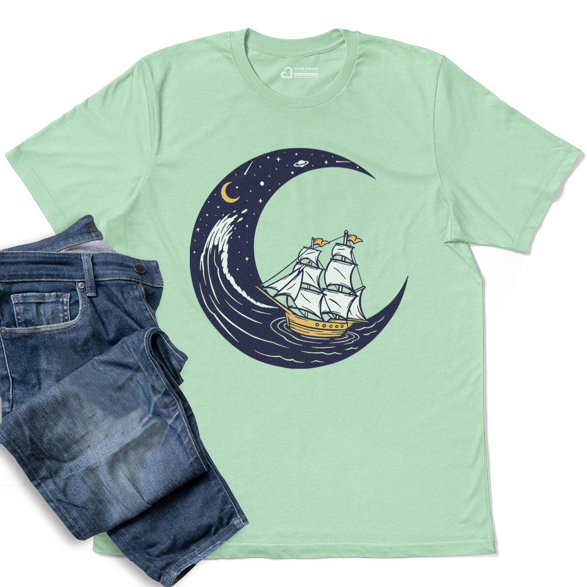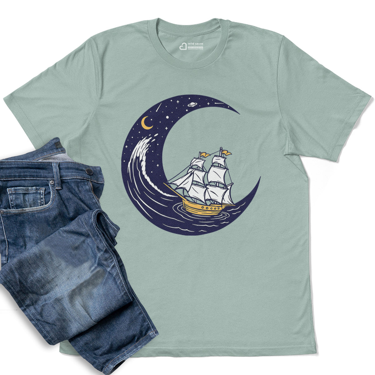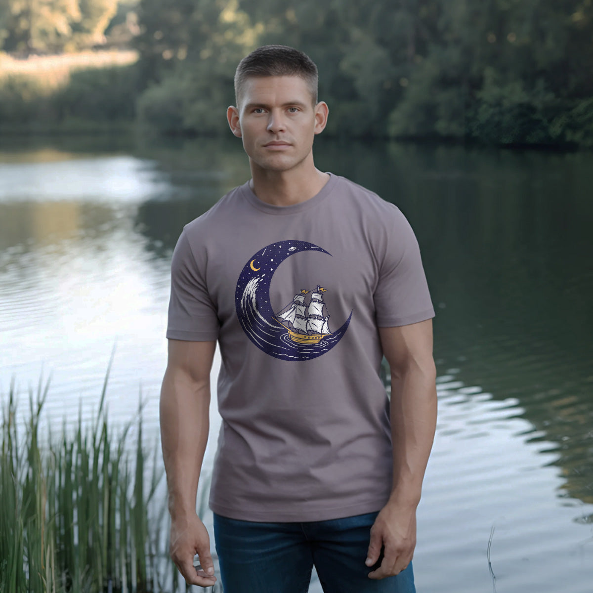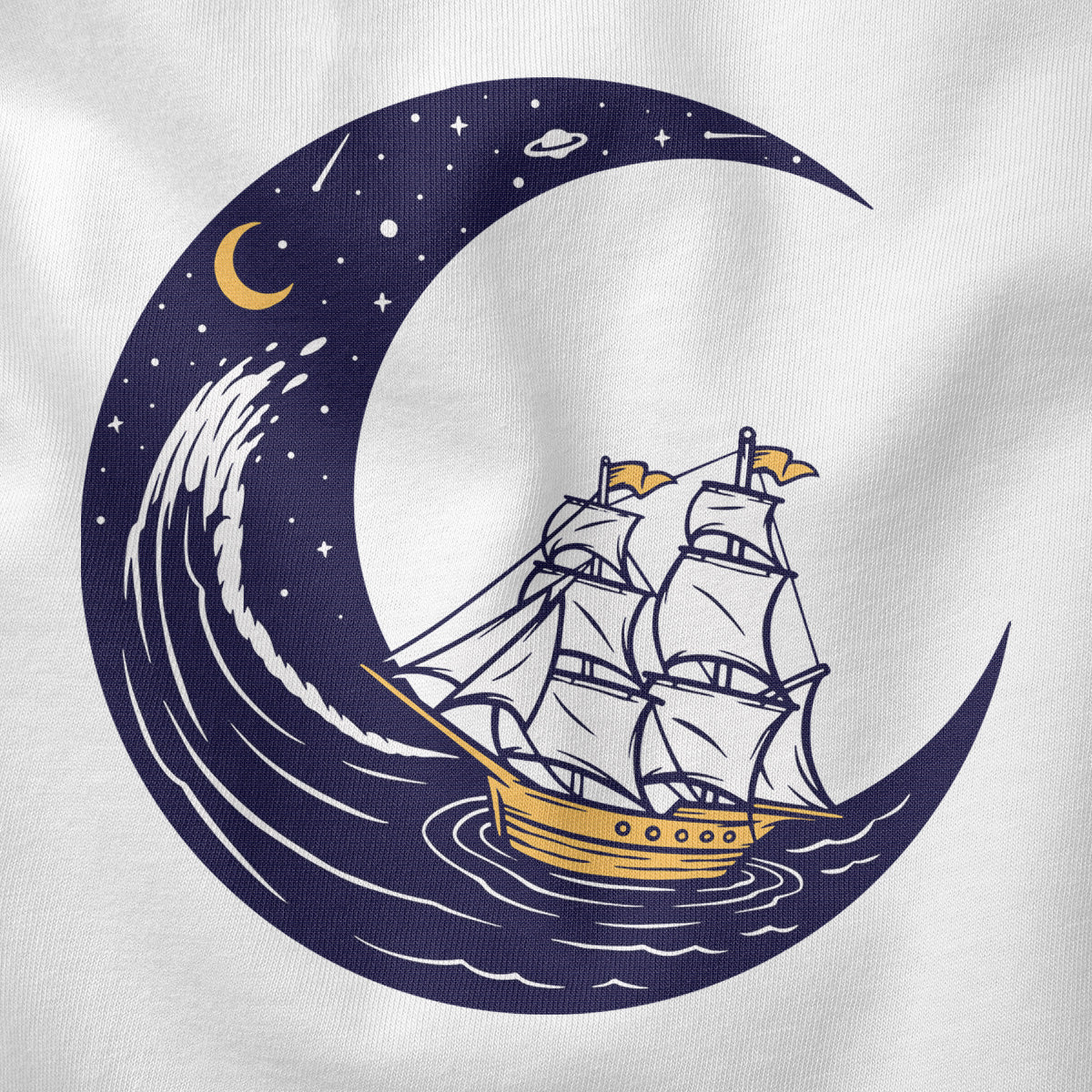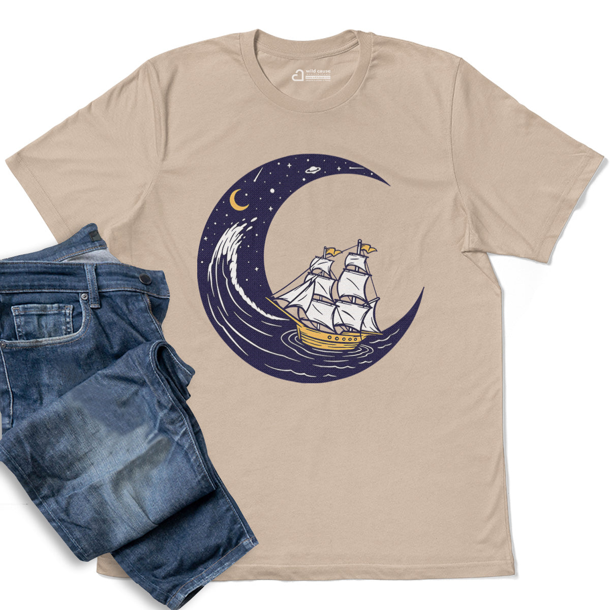 Unknown Sailing Moon Boat Adventure Adult Cotton Tee T-Shirt