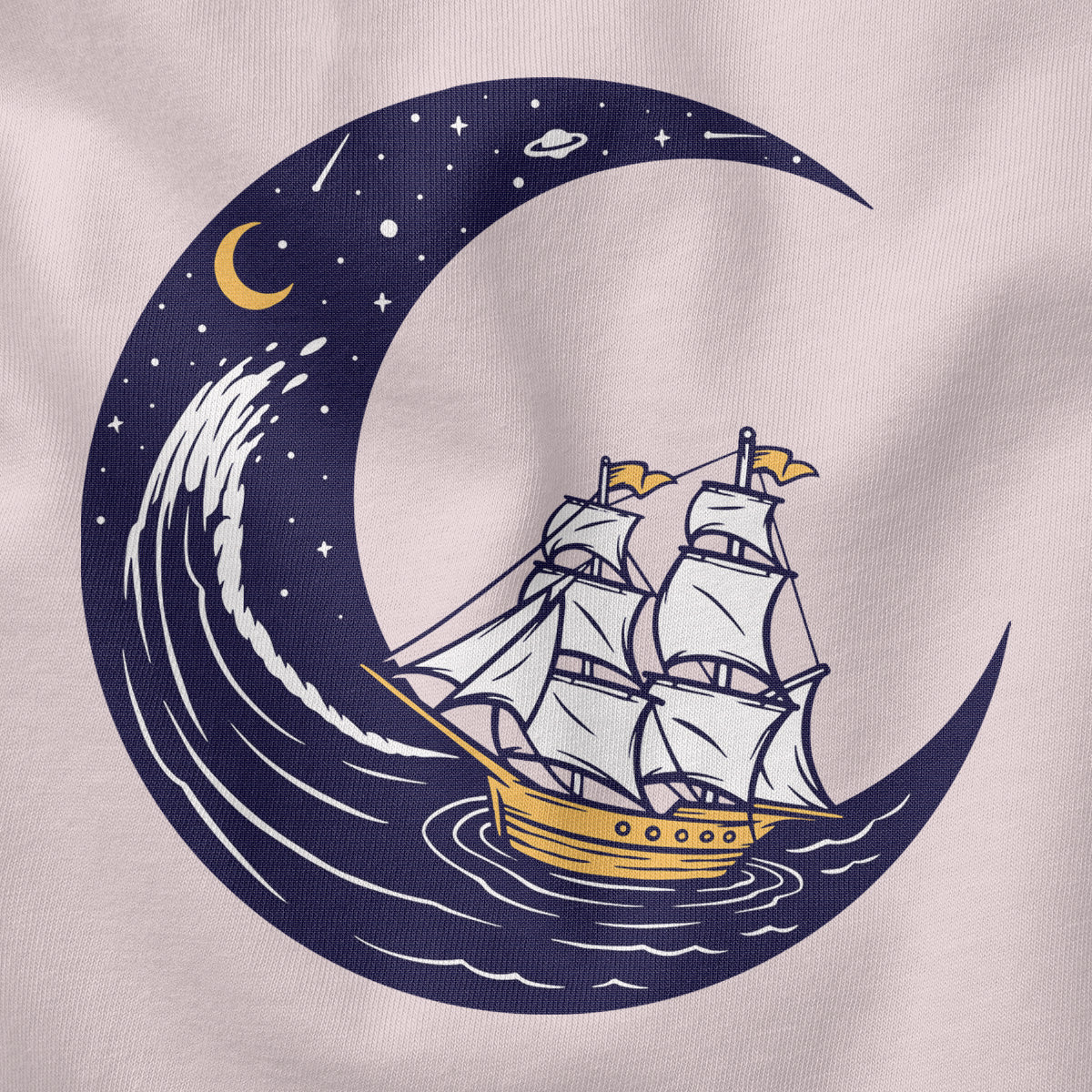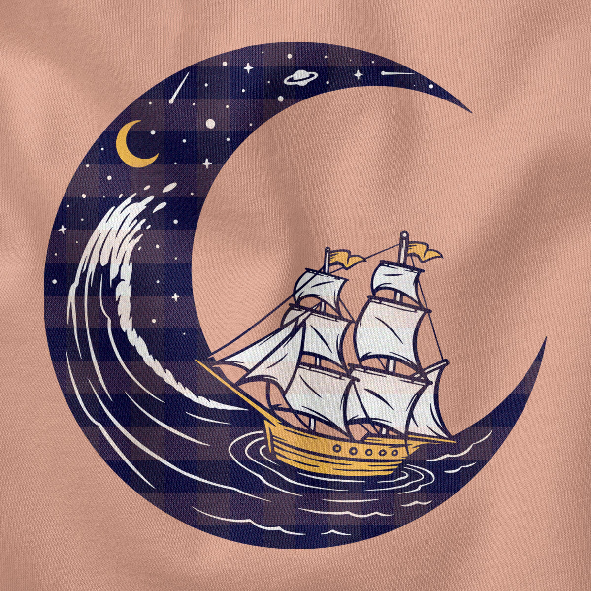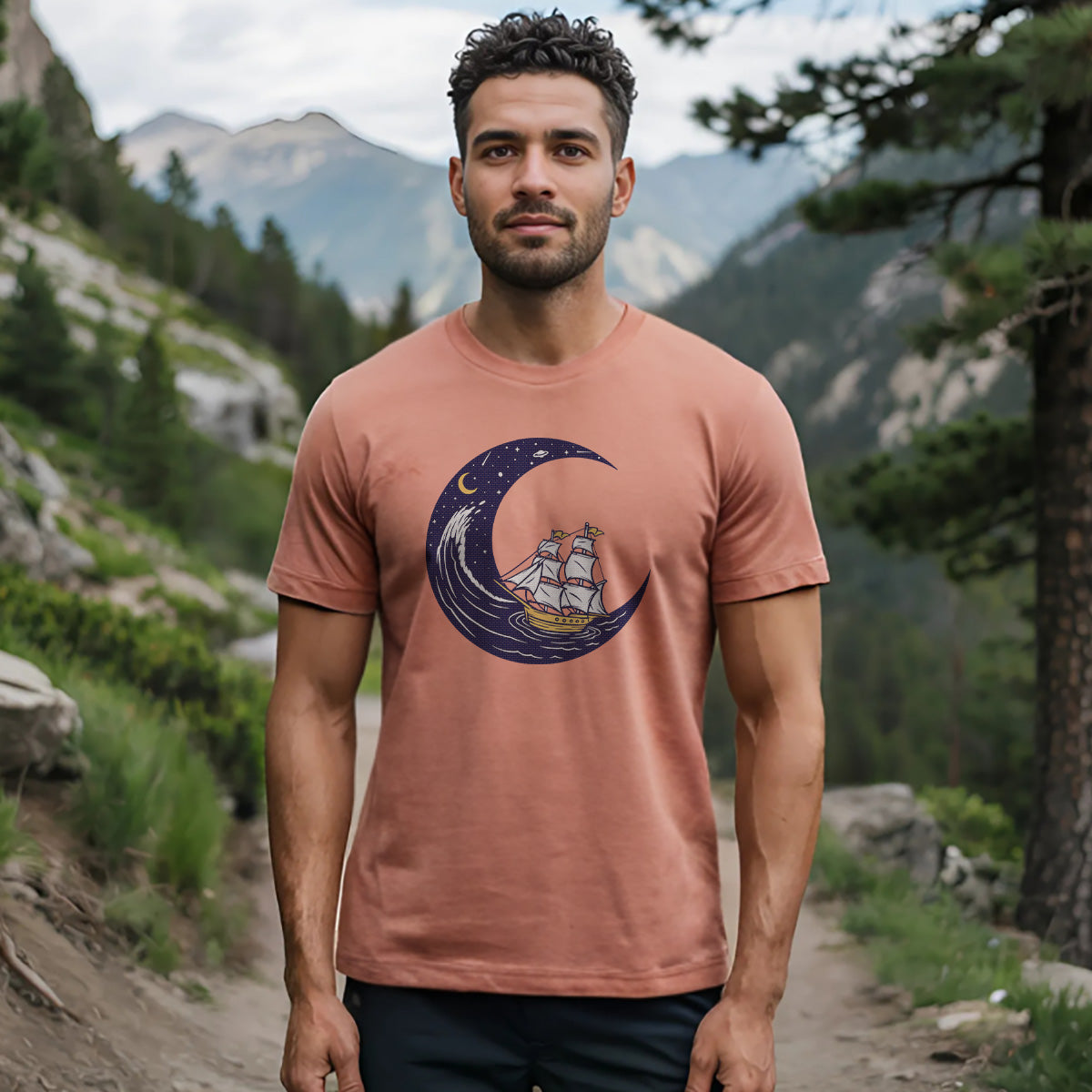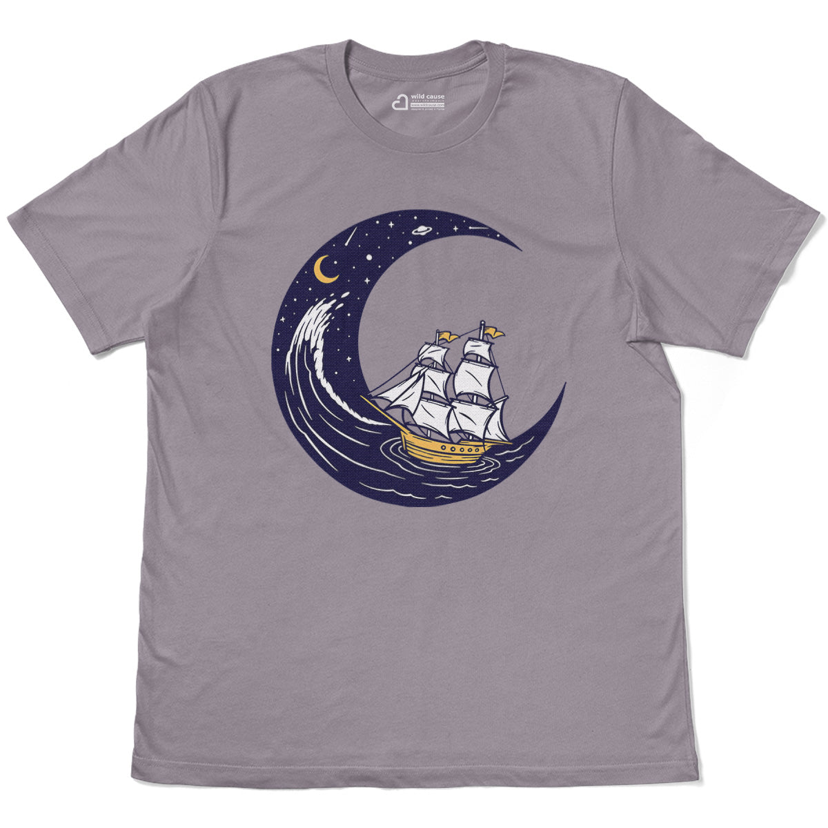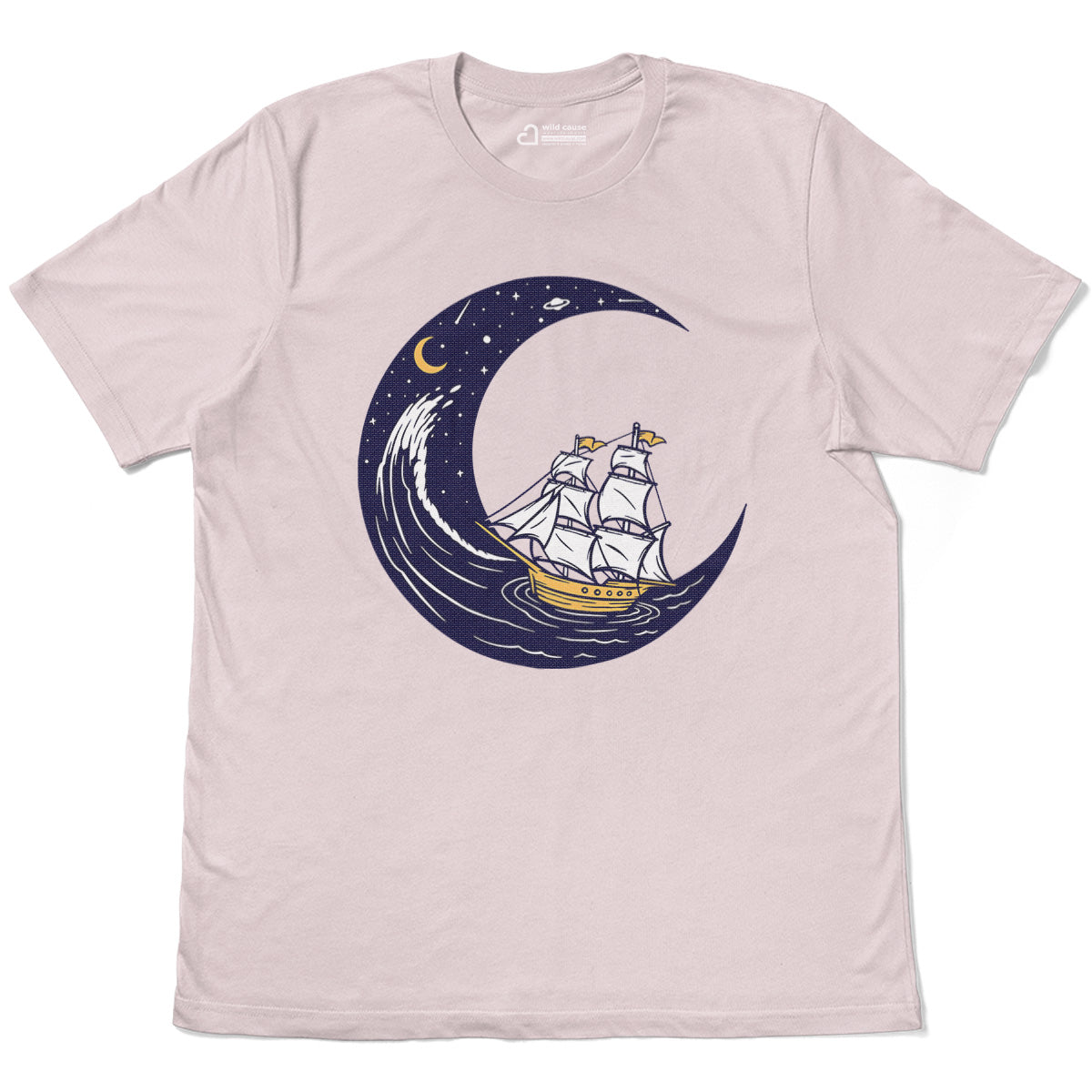Unknown Sailing Moon Boat Adventure Adult Cotton Tee T-Shirt