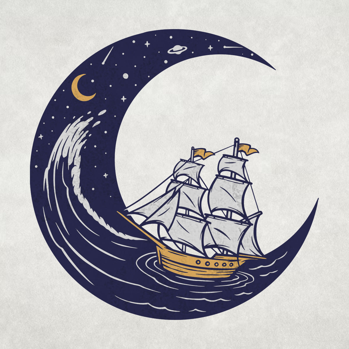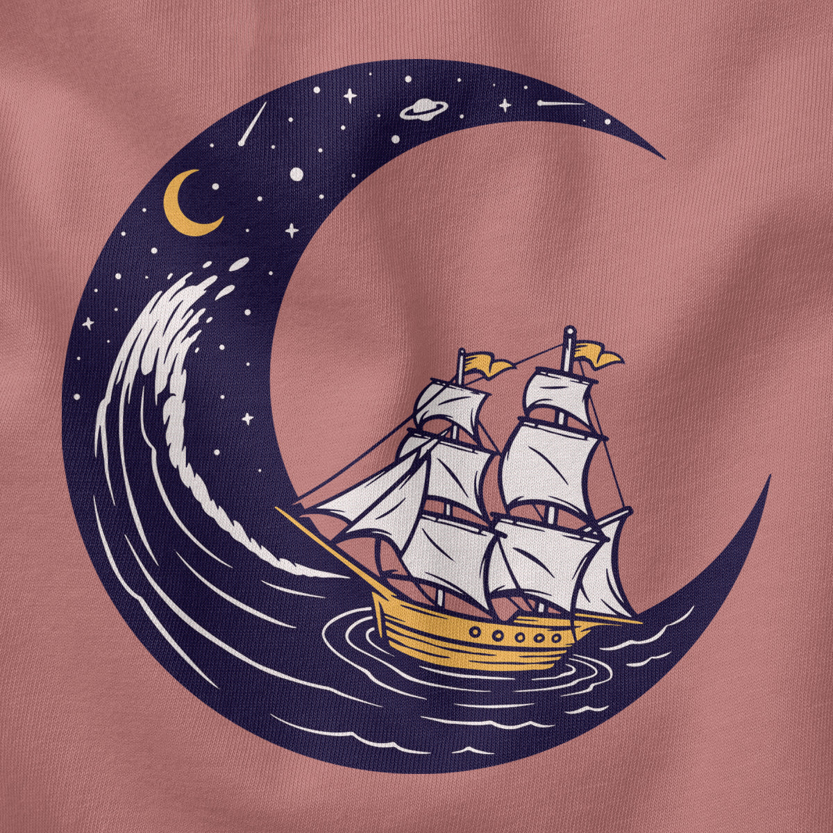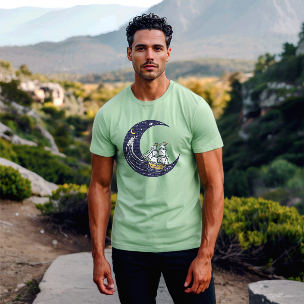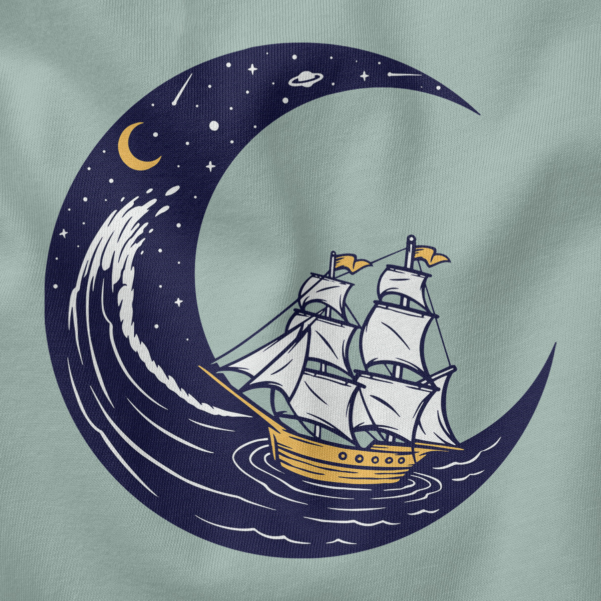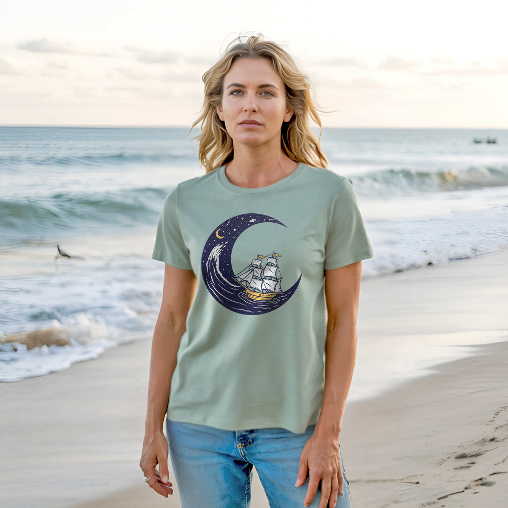 Unknown Sailing Moon Boat Adventure Adult Cotton Tee T-Shirt