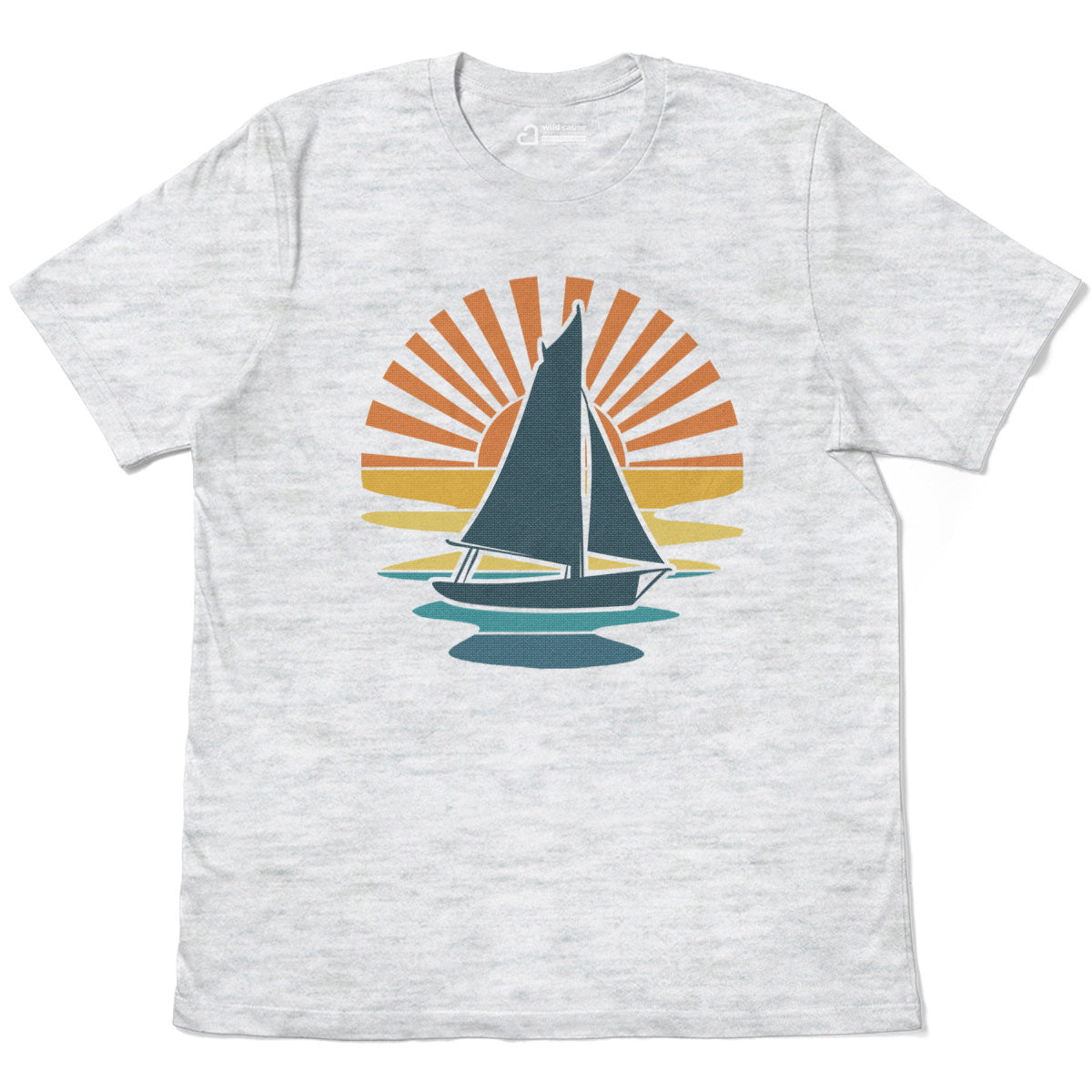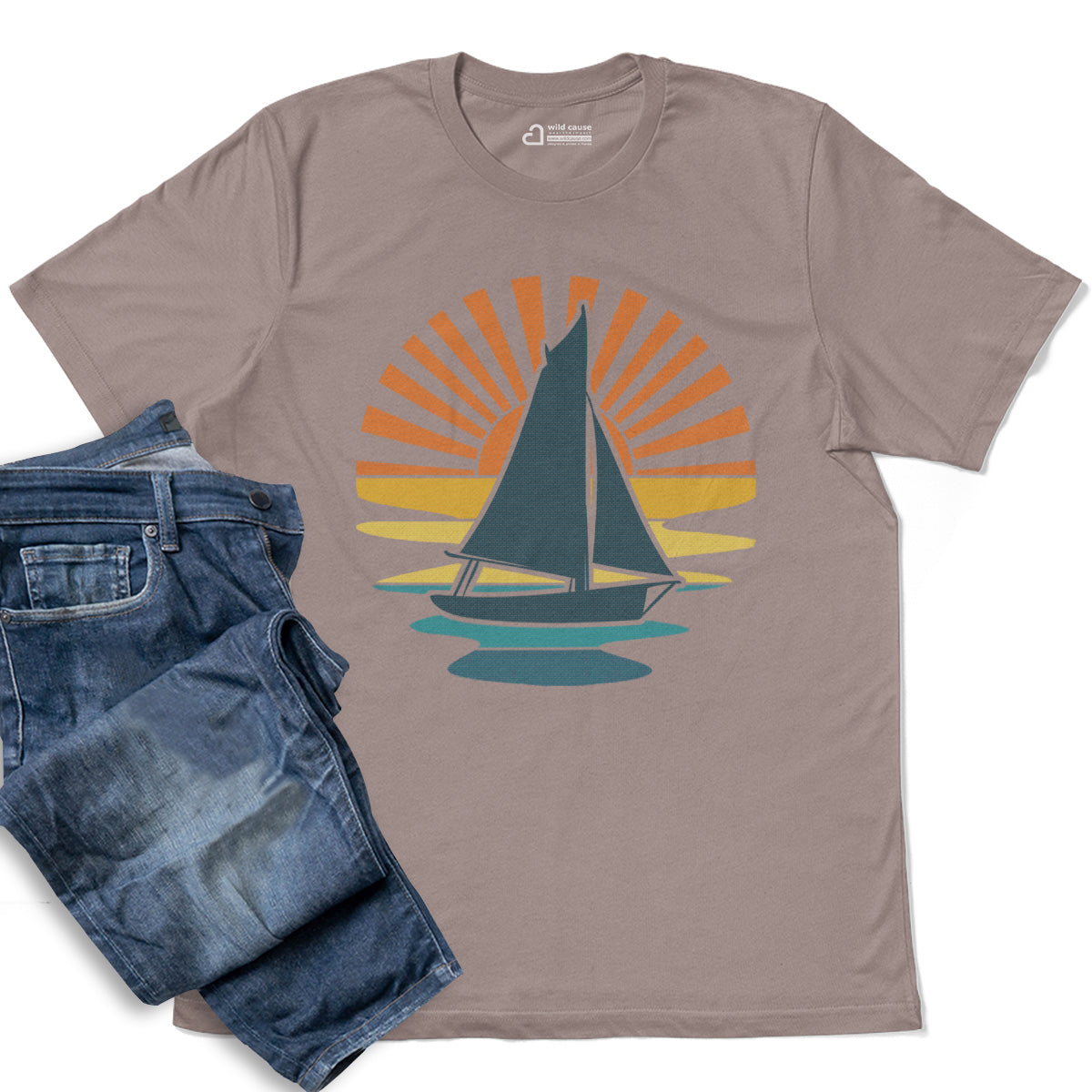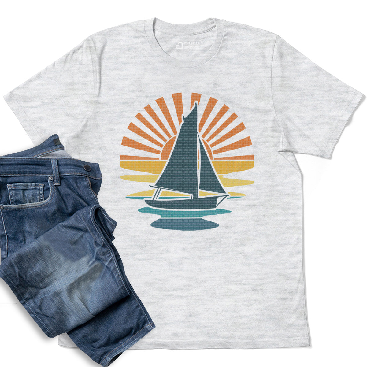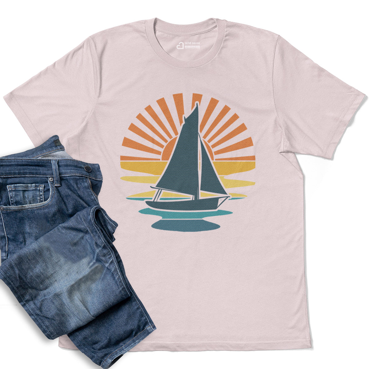 Vintage Sailboat Sunset And Beach Adventure Adult Cotton Tee T-Shirt