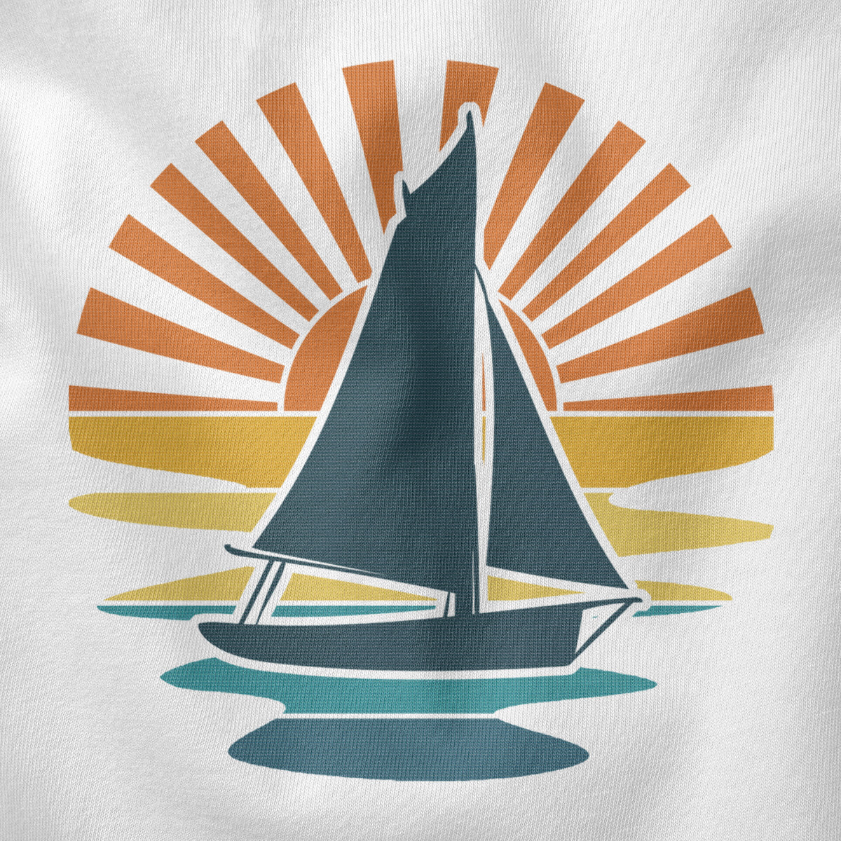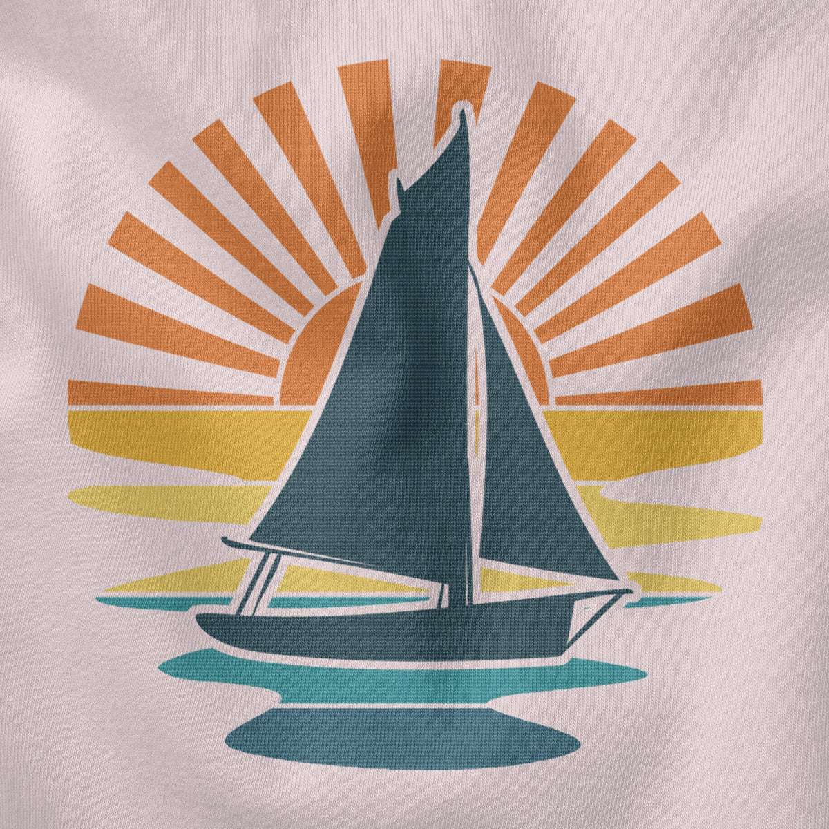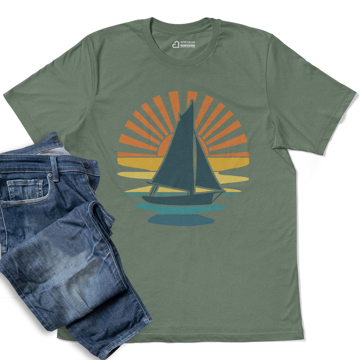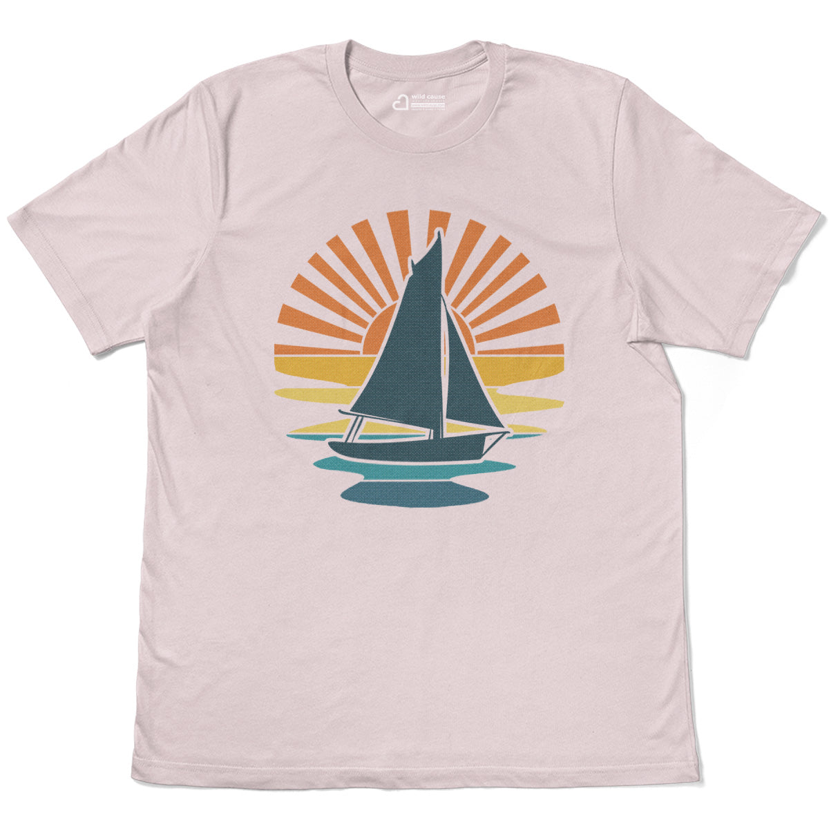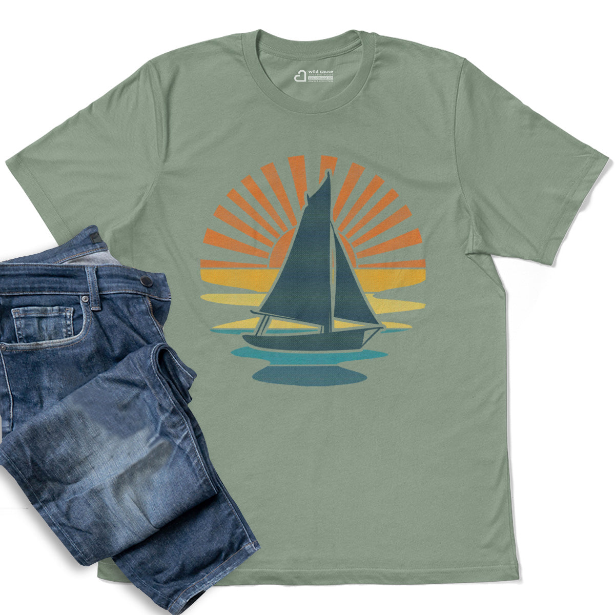 Vintage Sailboat Sunset And Beach Adventure Adult Cotton Tee T-Shirt