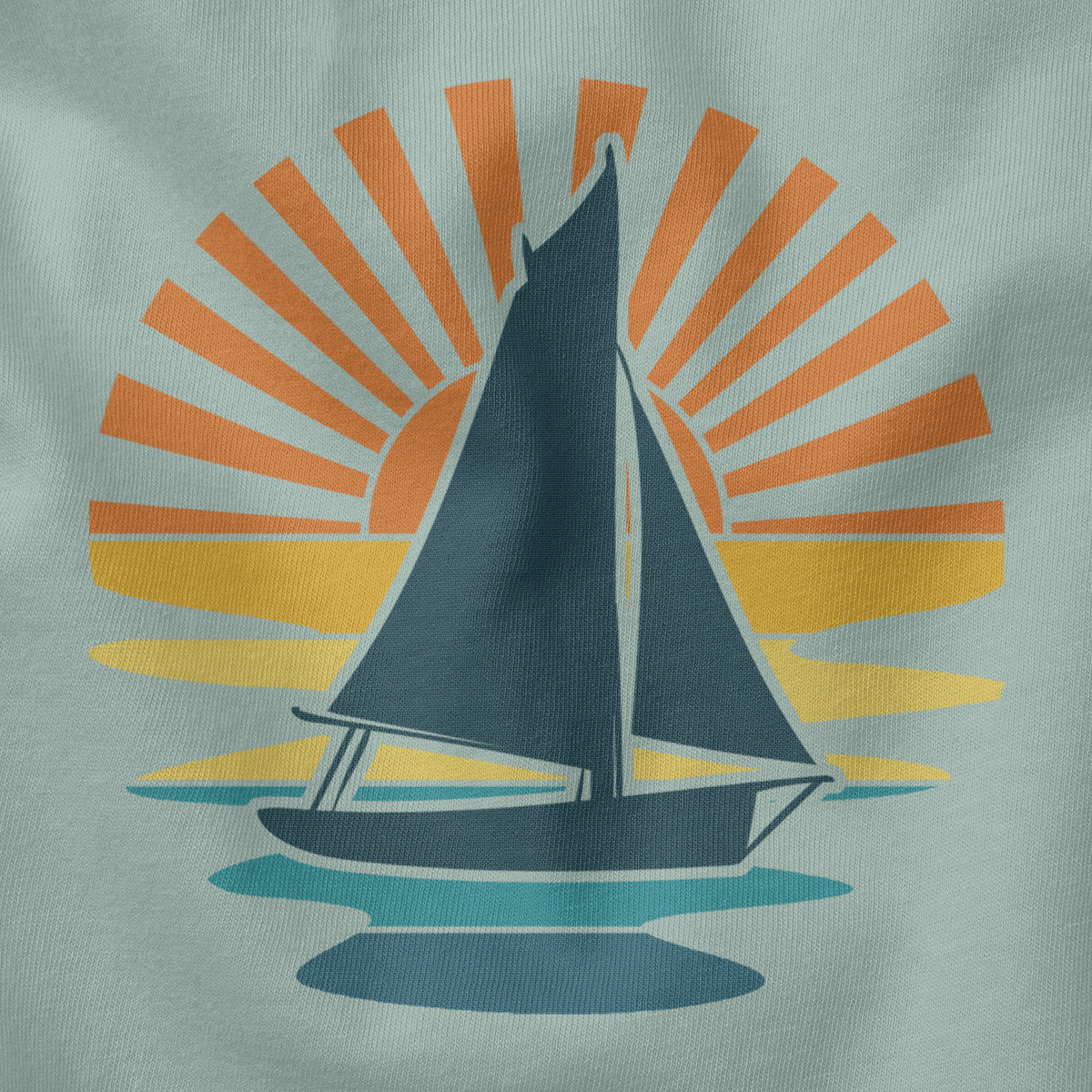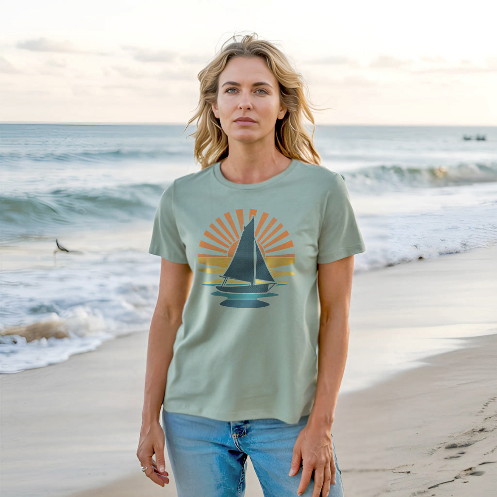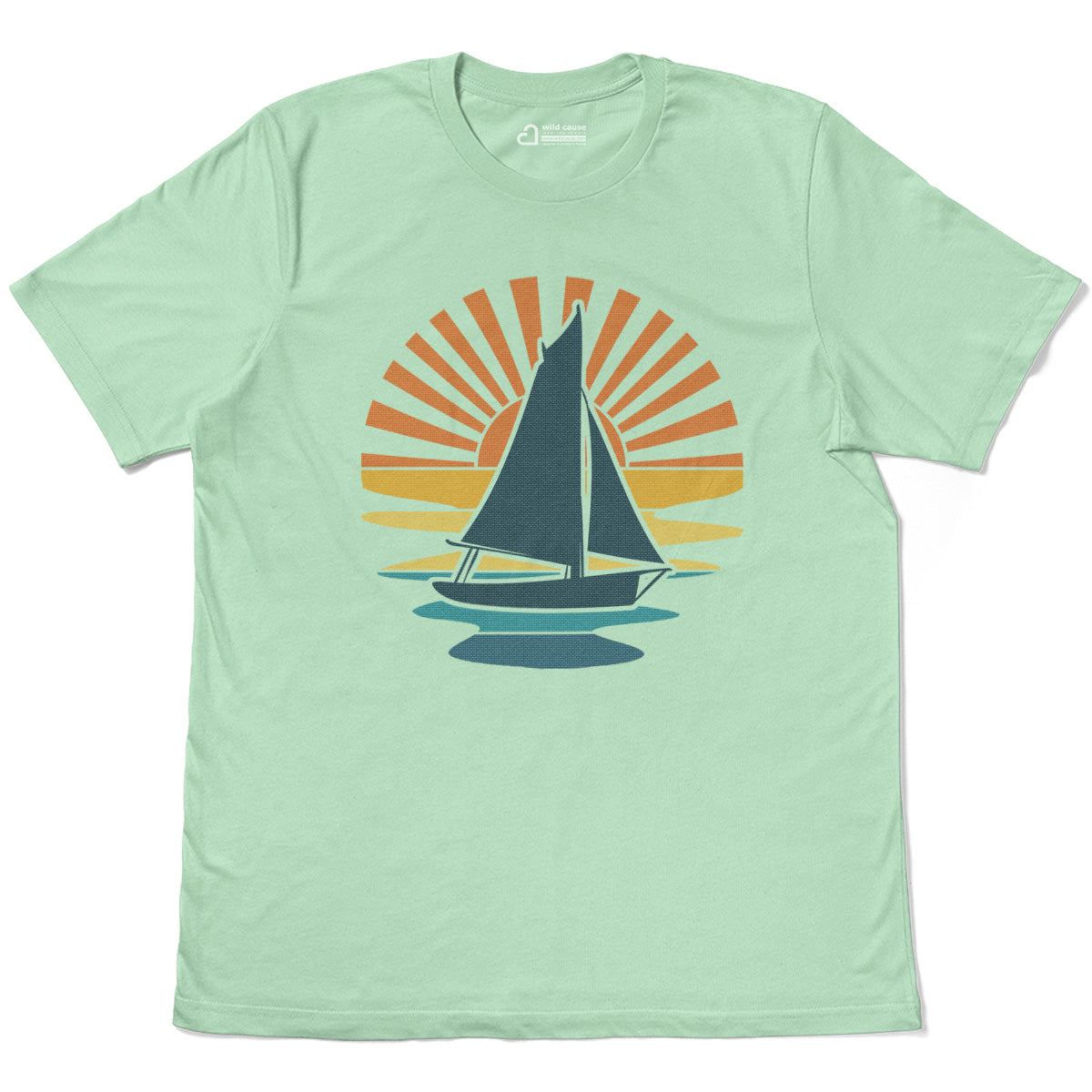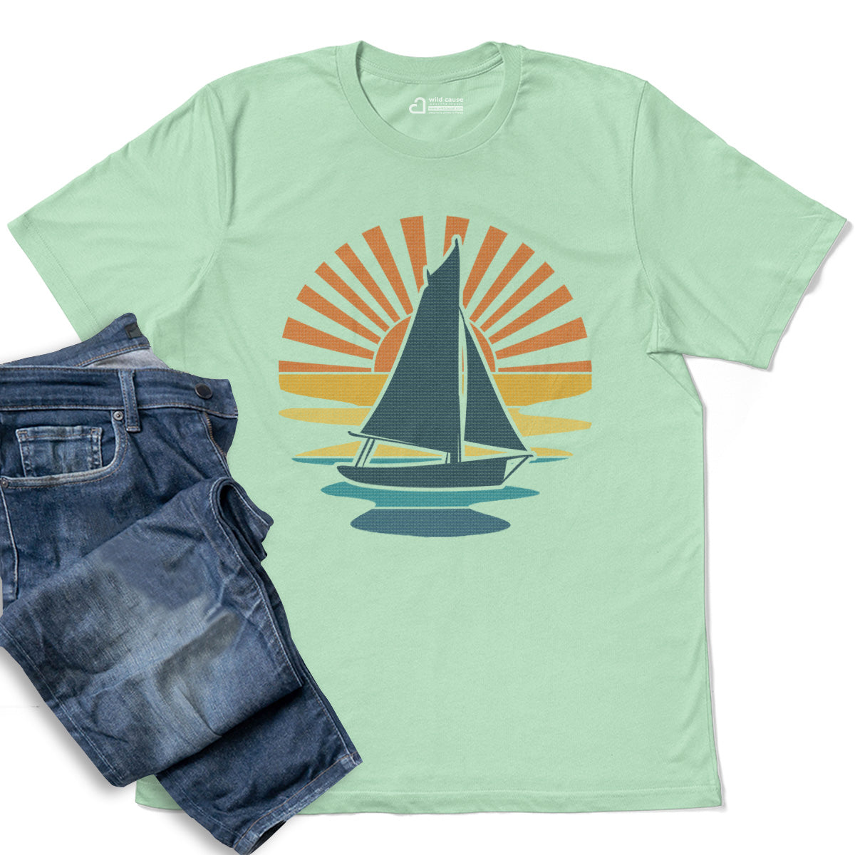 Vintage Sailboat Sunset And Beach Adventure Adult Cotton Tee T-Shirt