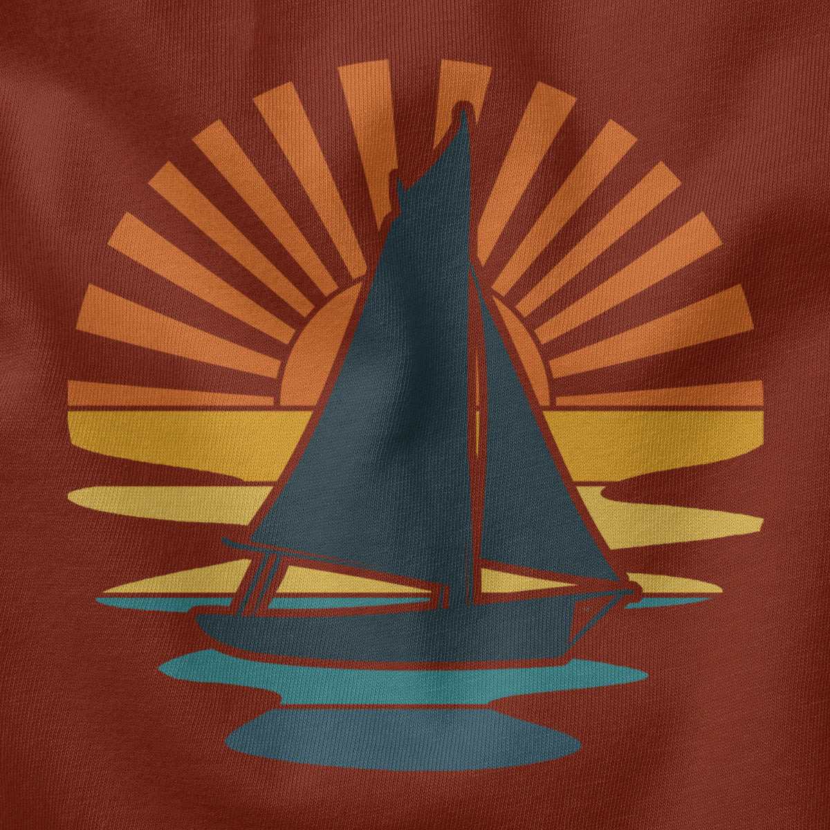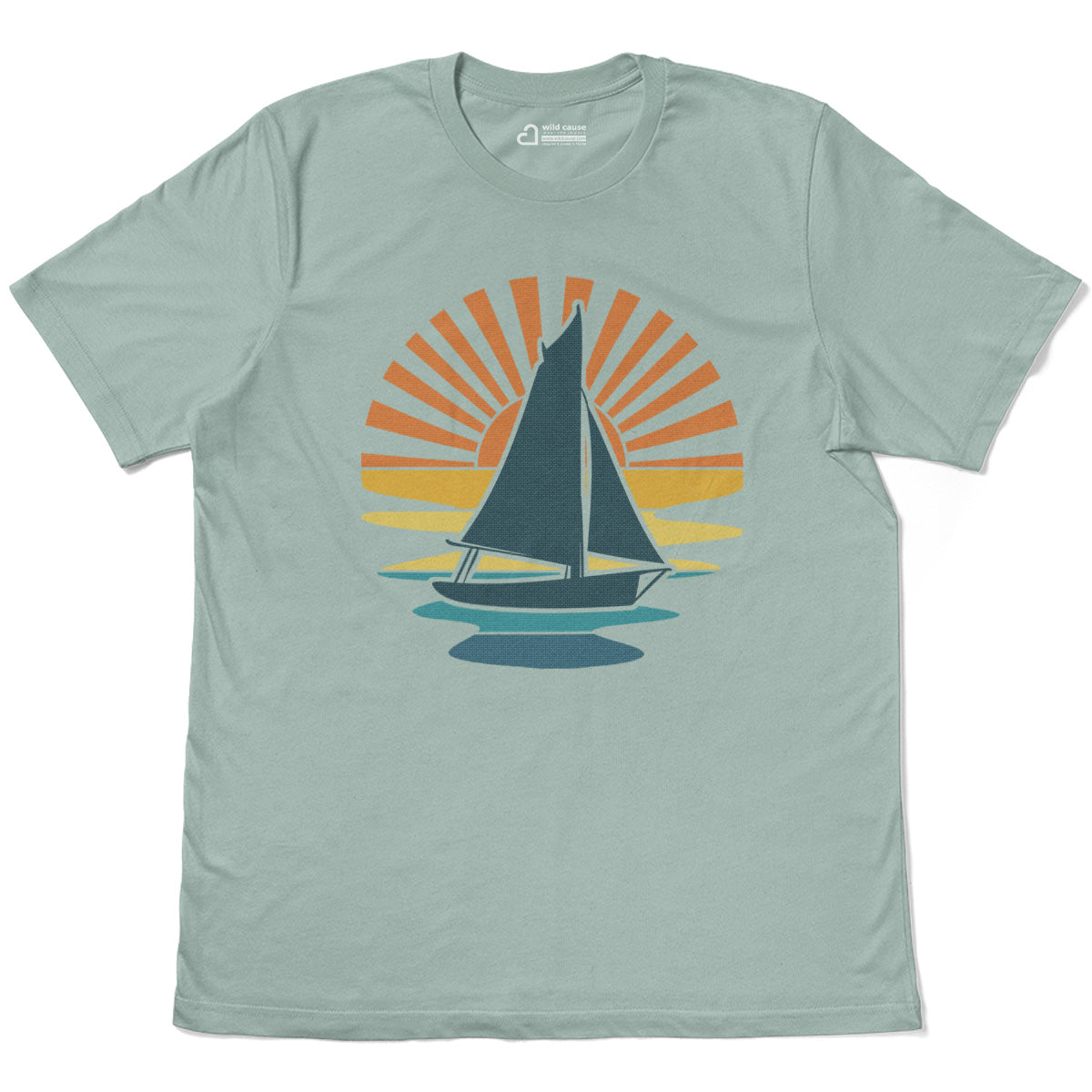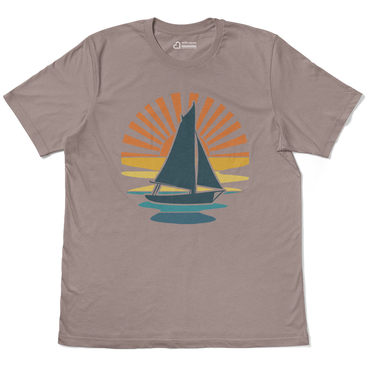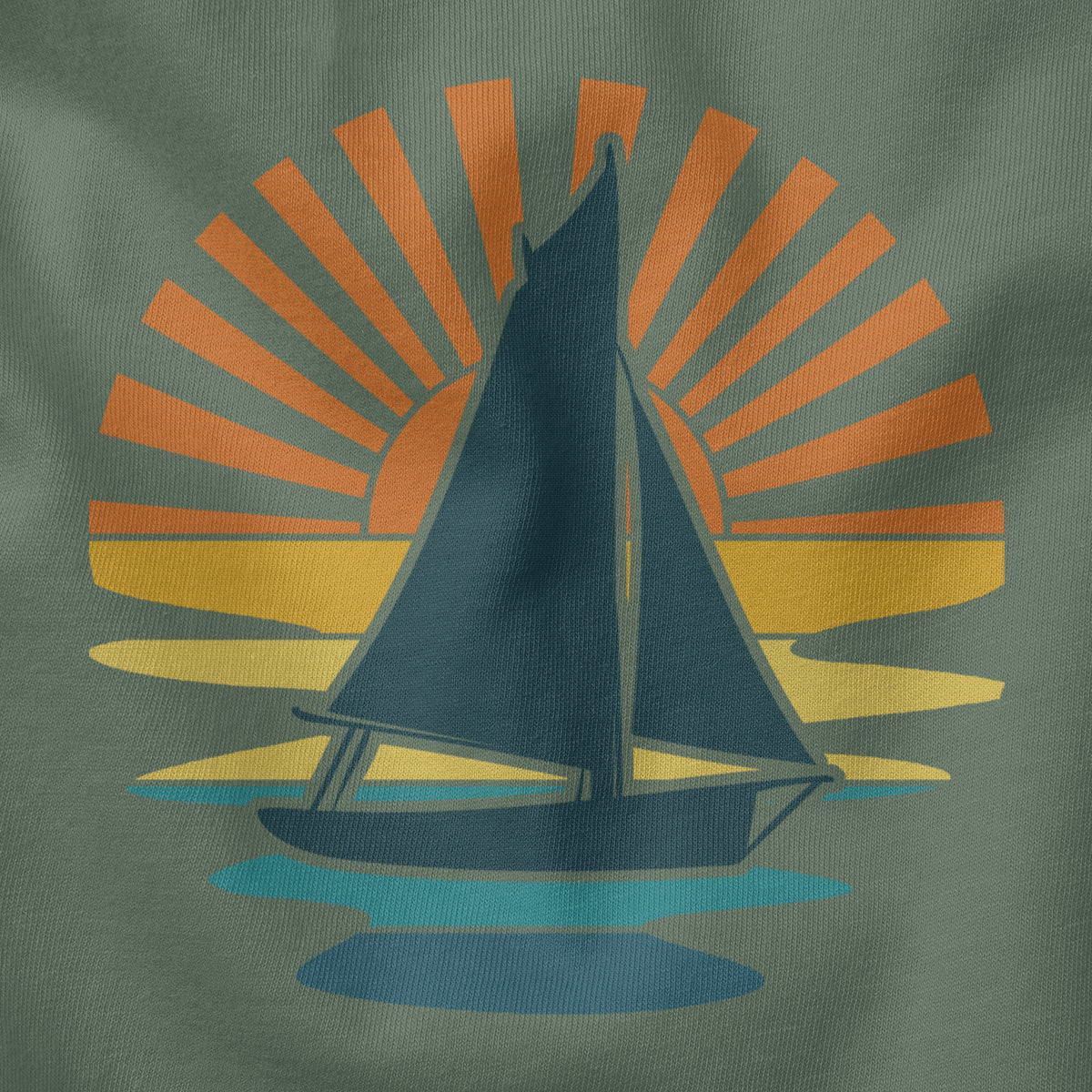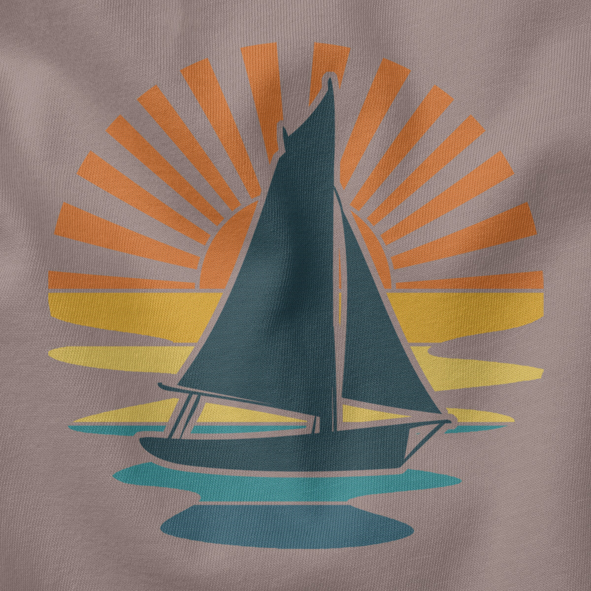 Vintage Sailboat Sunset And Beach Adventure Adult Cotton Tee T-Shirt