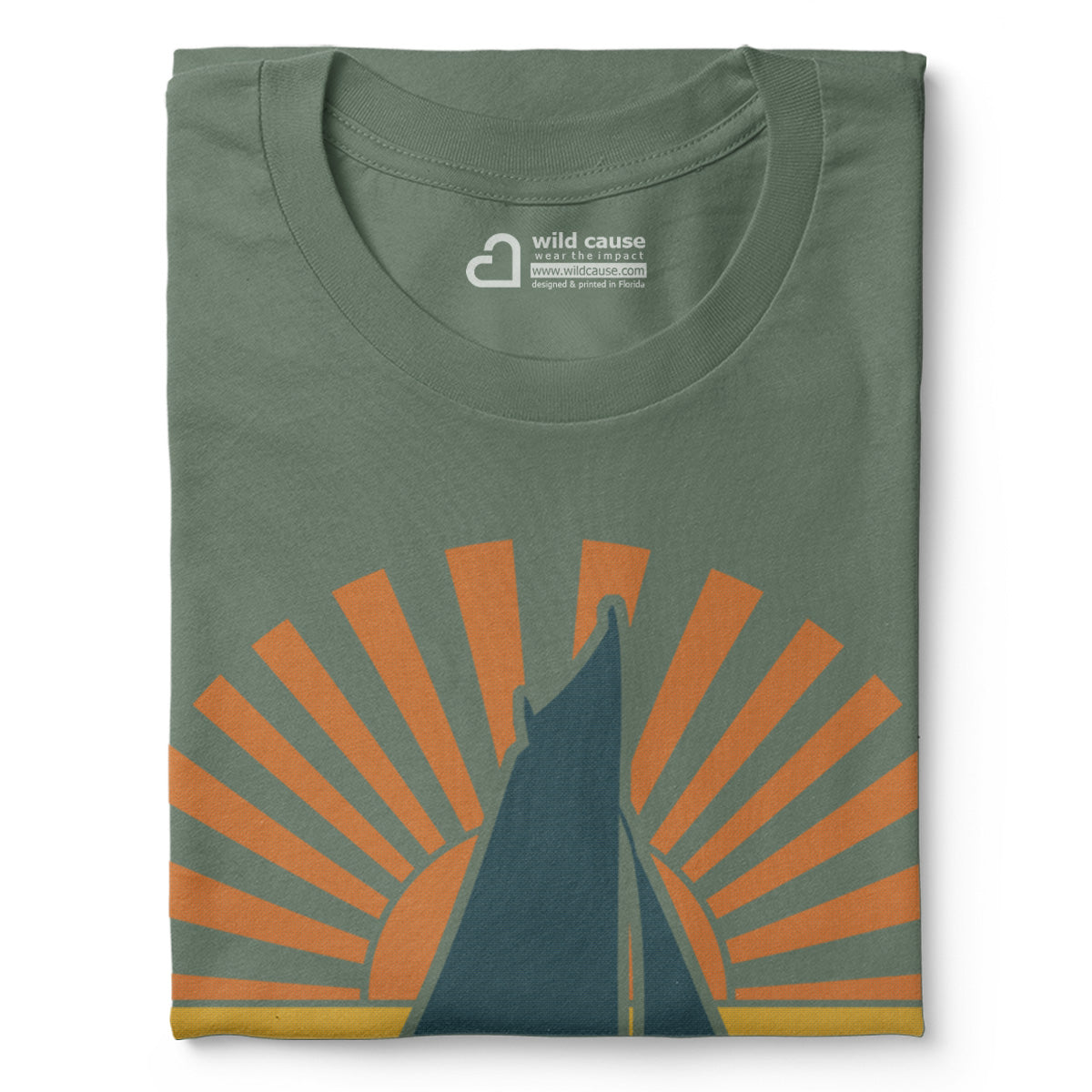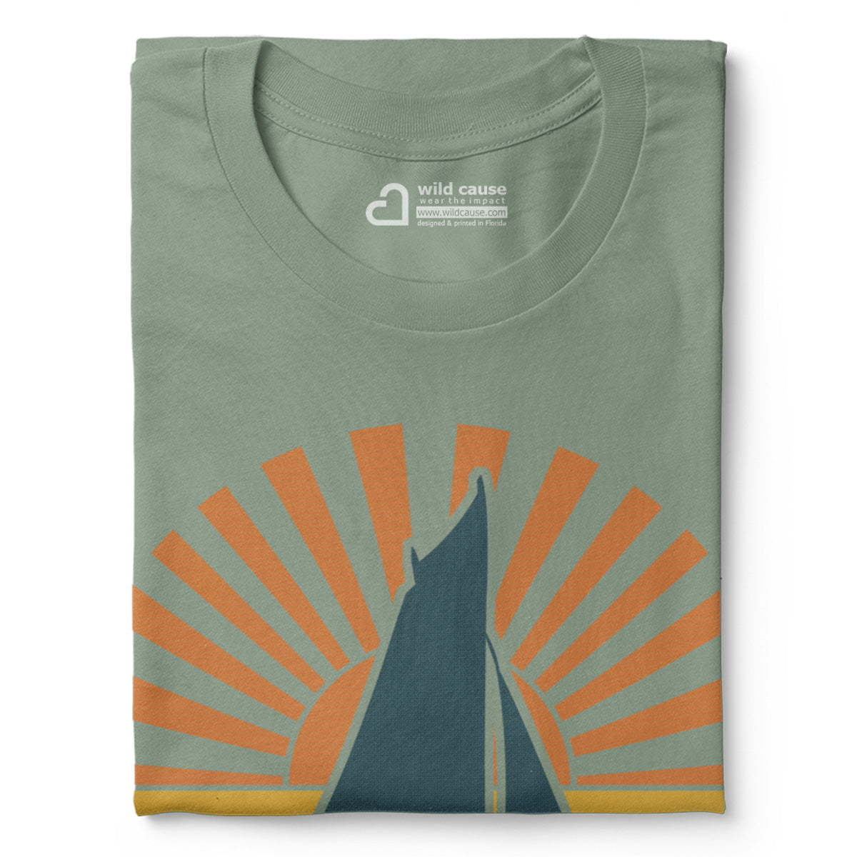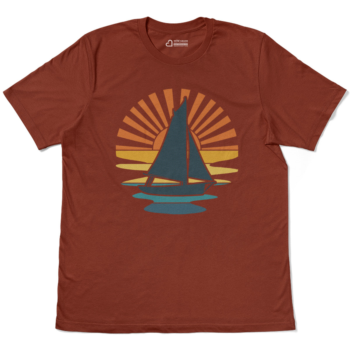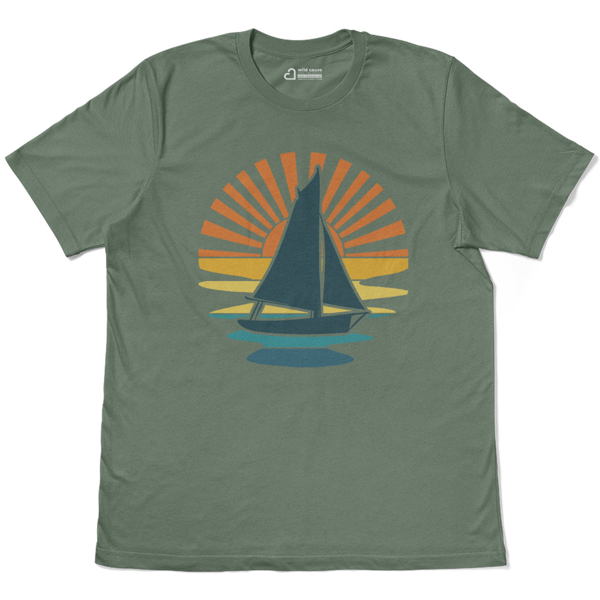 Vintage Sailboat Sunset And Beach Adventure Adult Cotton Tee T-Shirt