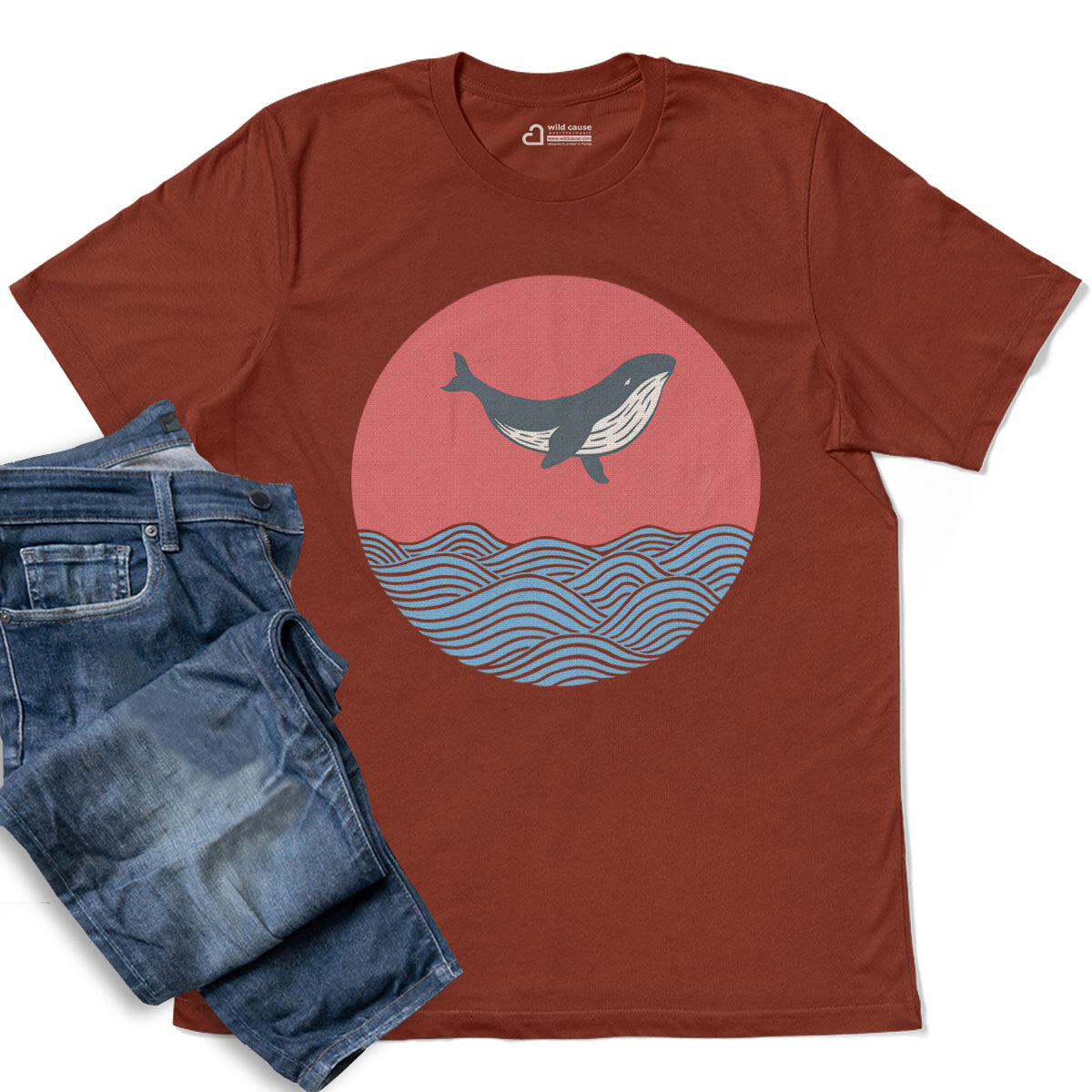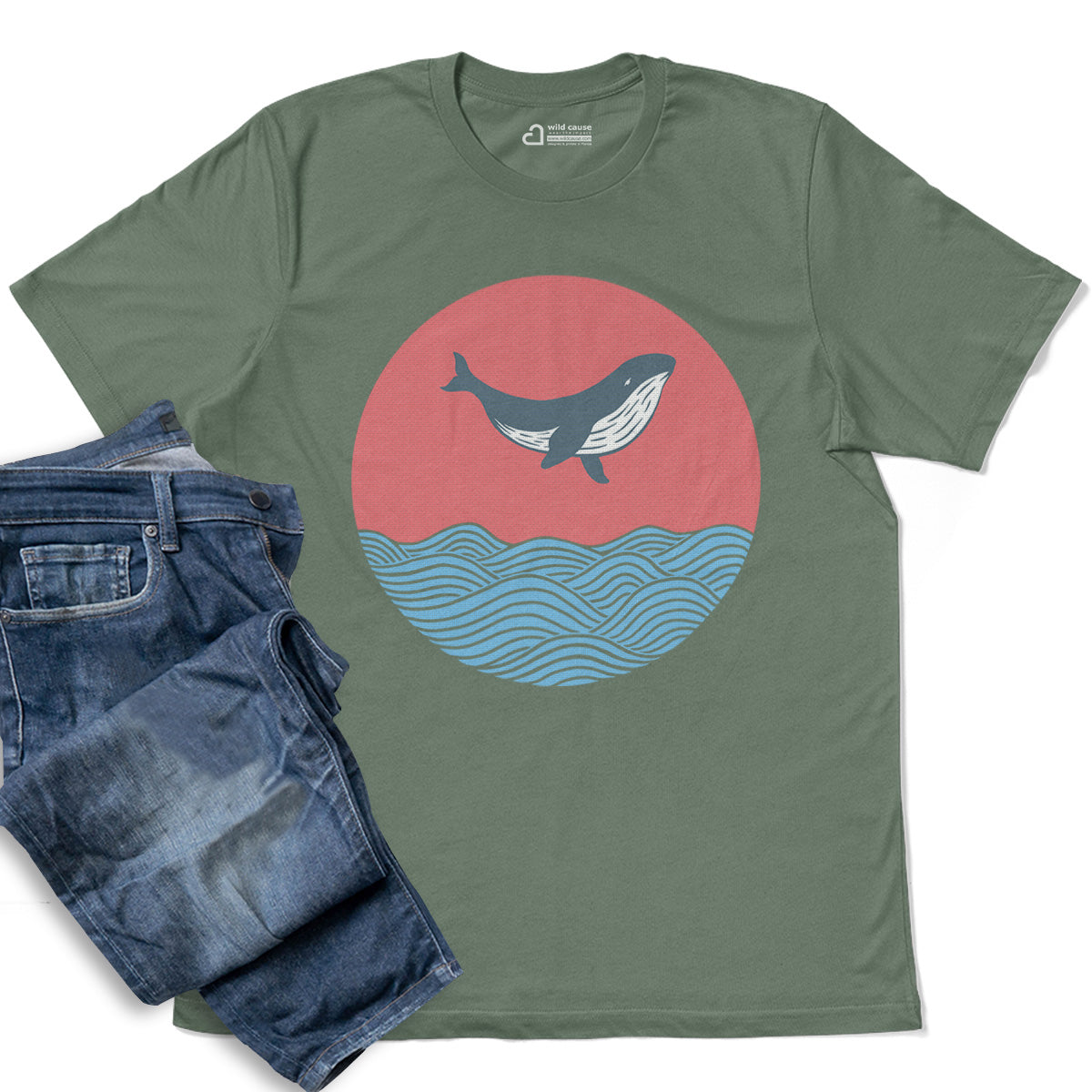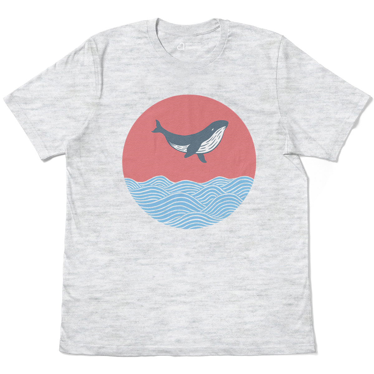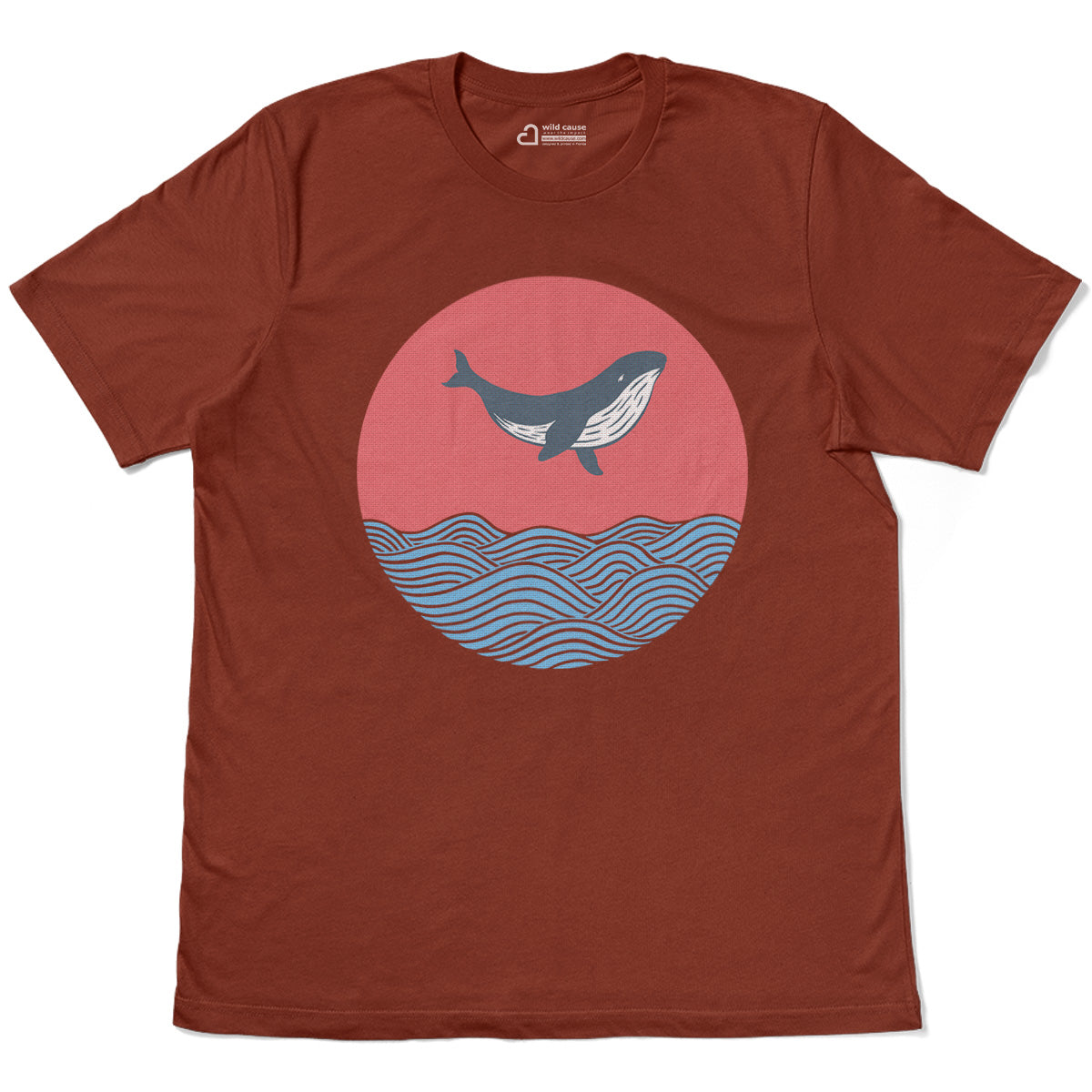 Whale Sunset Jumping In Ocean Waves Adult Cotton Tee T-Shirt $34.99