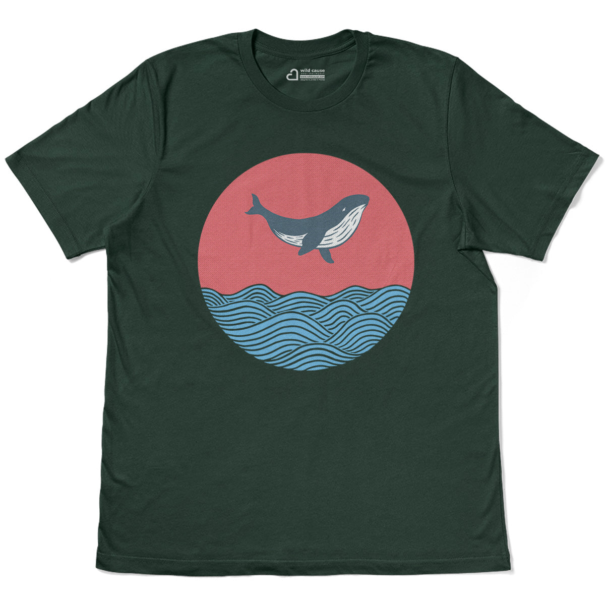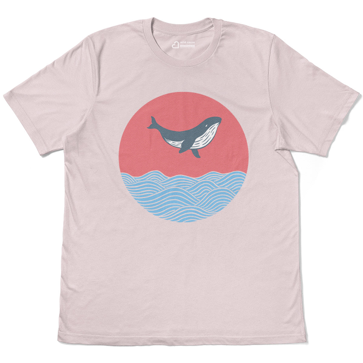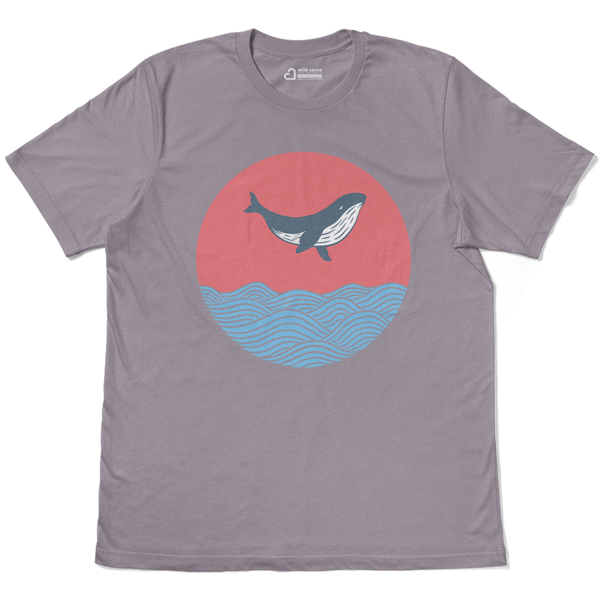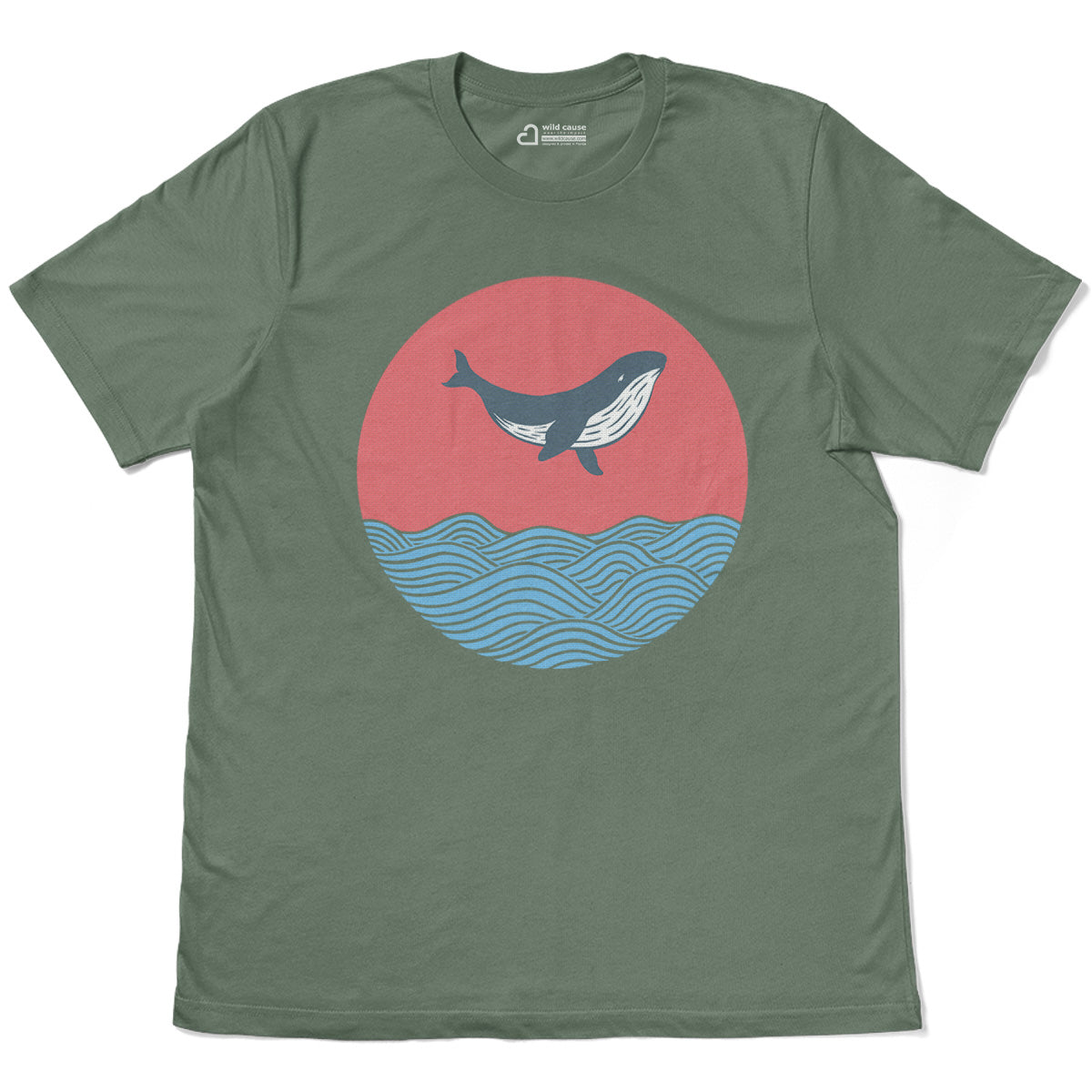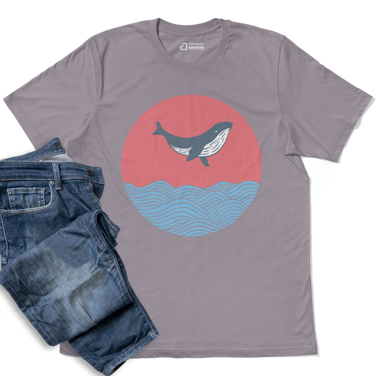 Whale Sunset Jumping In Ocean Waves Adult Cotton Tee T-Shirt $34.99