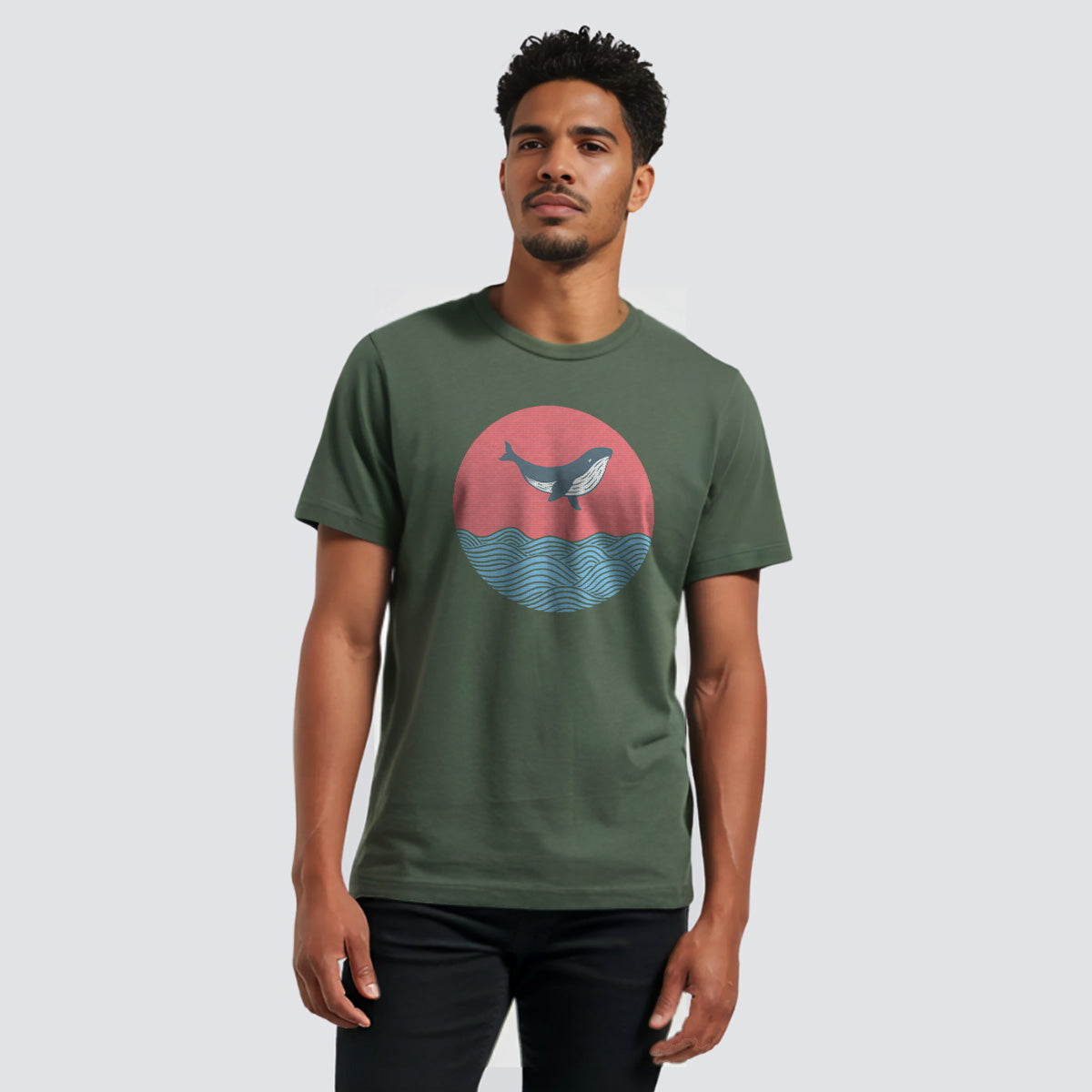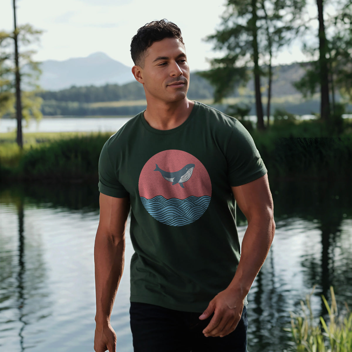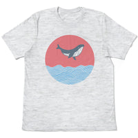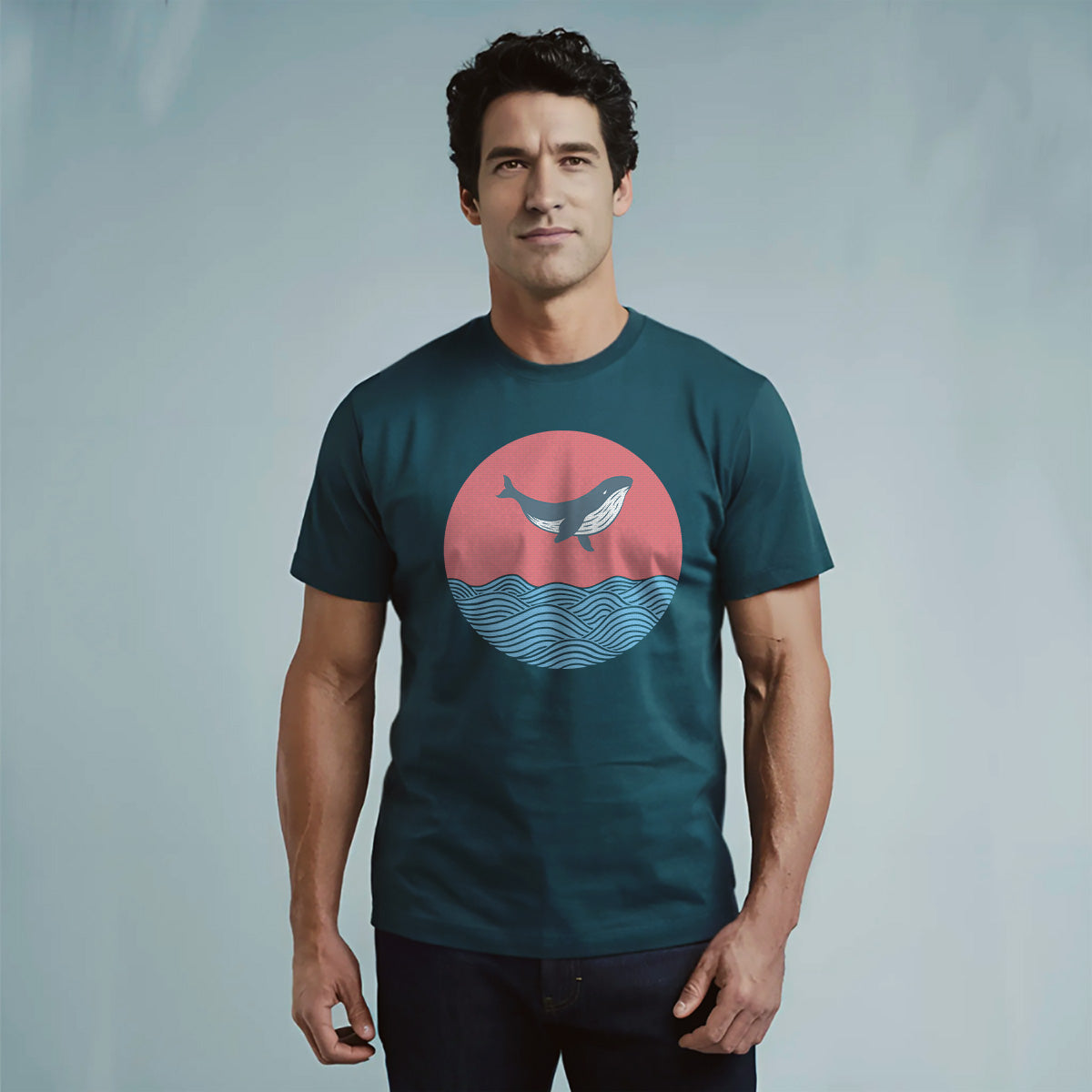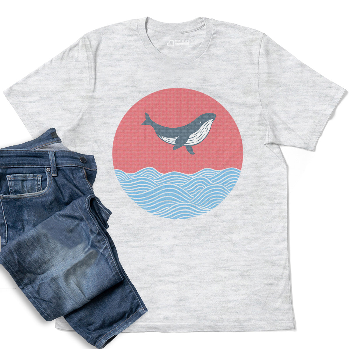 Watch whales jump in ocean waves Adult Cotton Tee T-Shirt features a stunning design of a whale leaping through waves. Made from soft cotton, this tee captures the whale in action over the waves, offering a unique whale adventure in ocean waves experience.