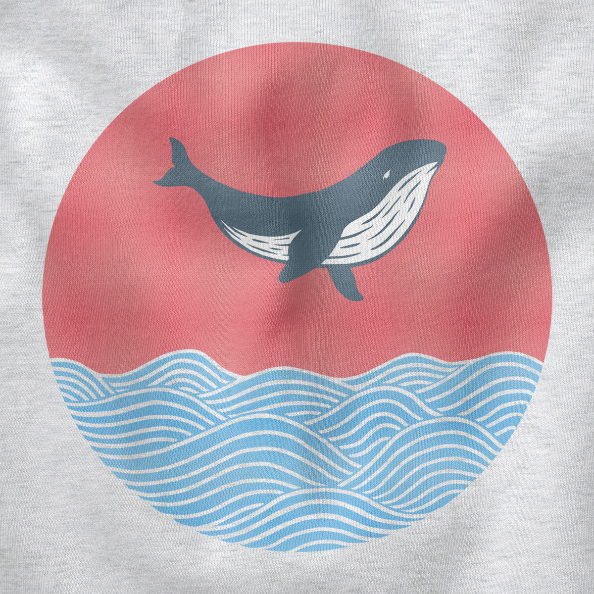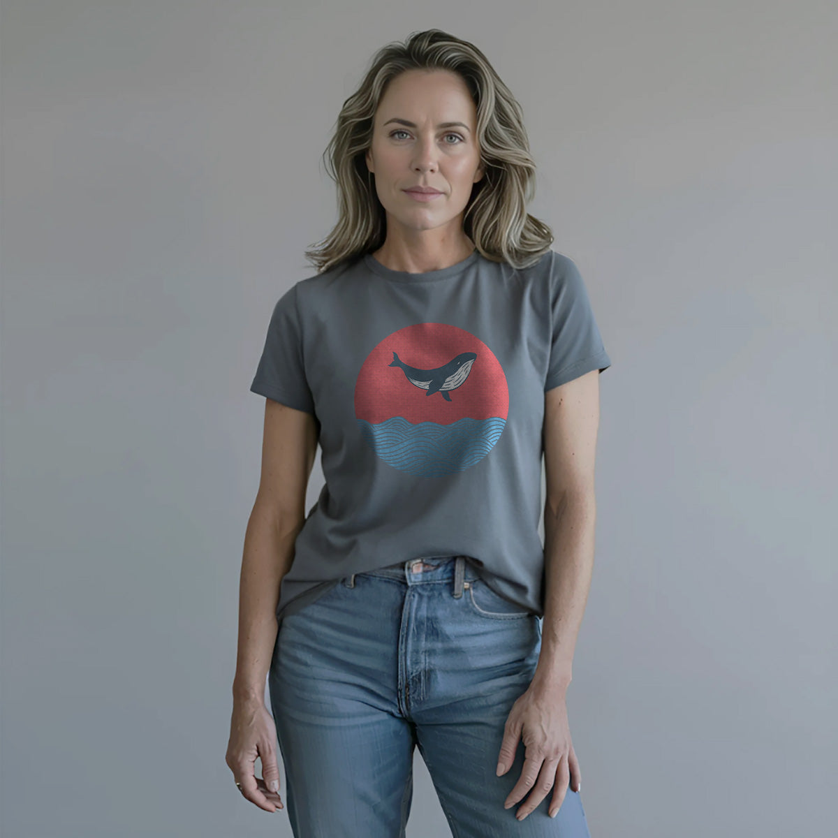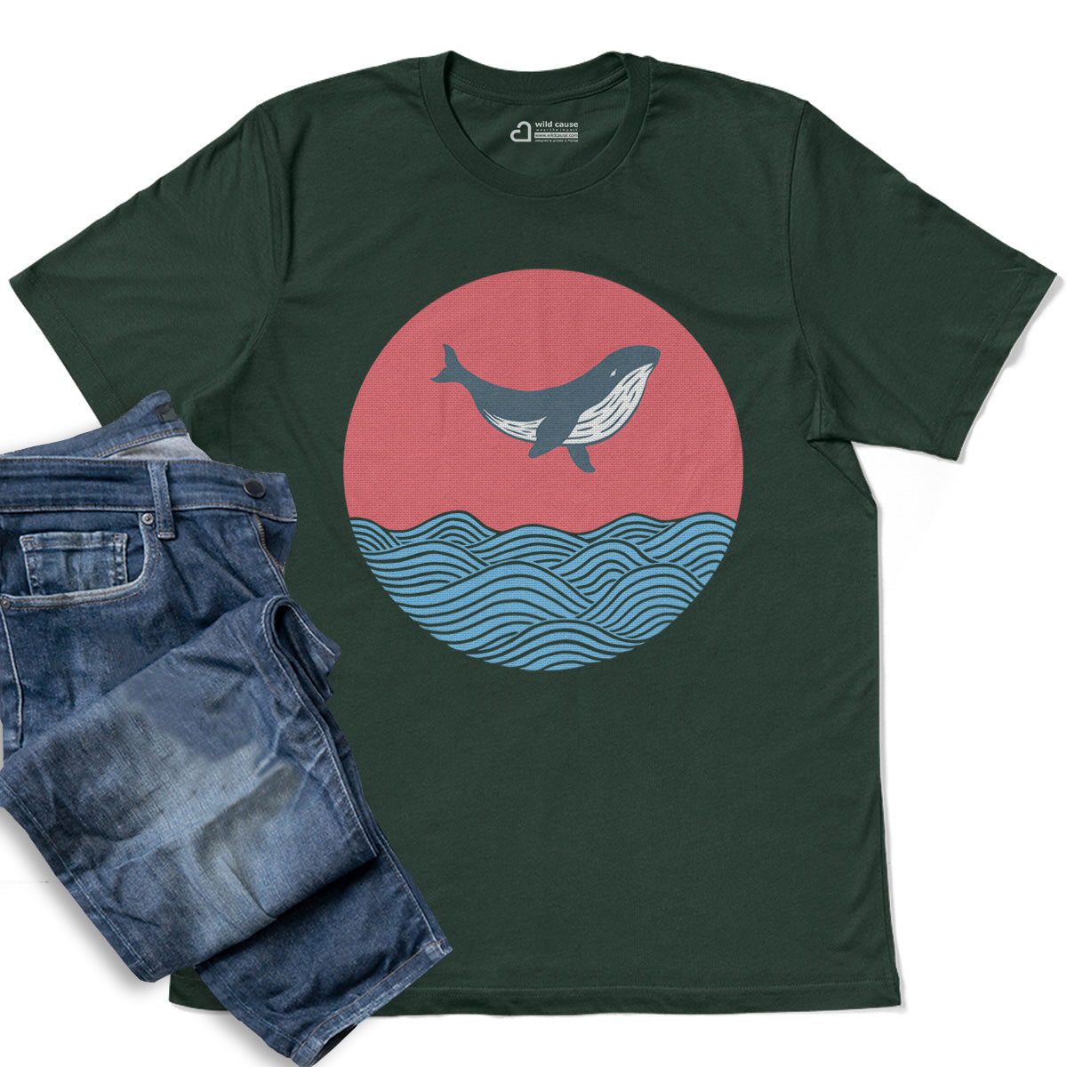 Whale Sunset Jumping In Ocean Waves Adult Cotton Tee T-Shirt