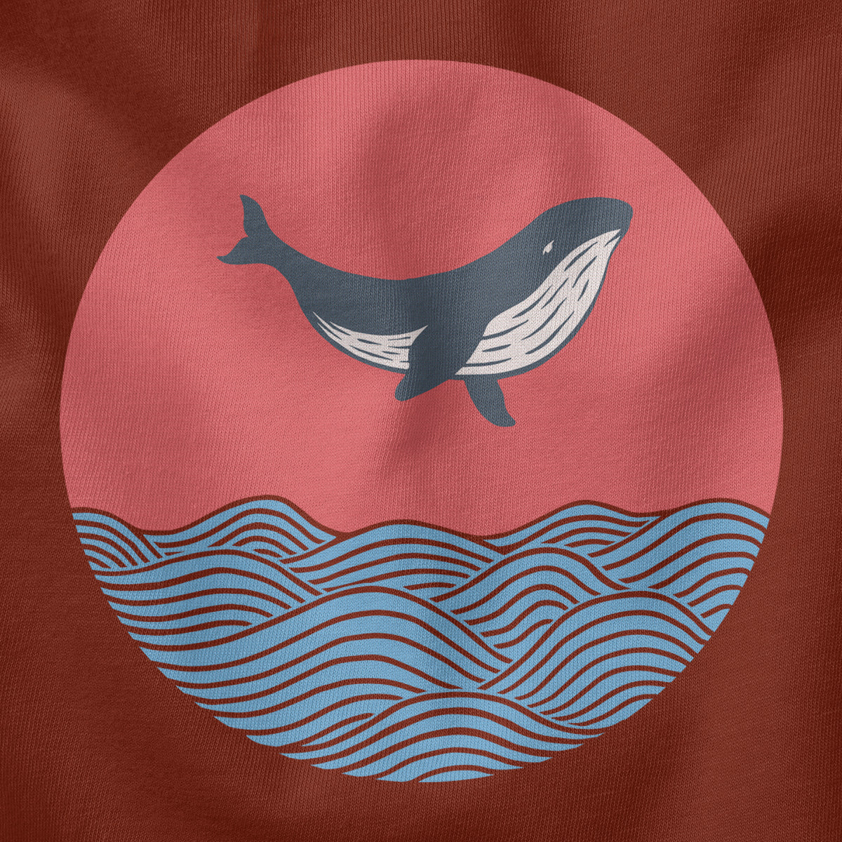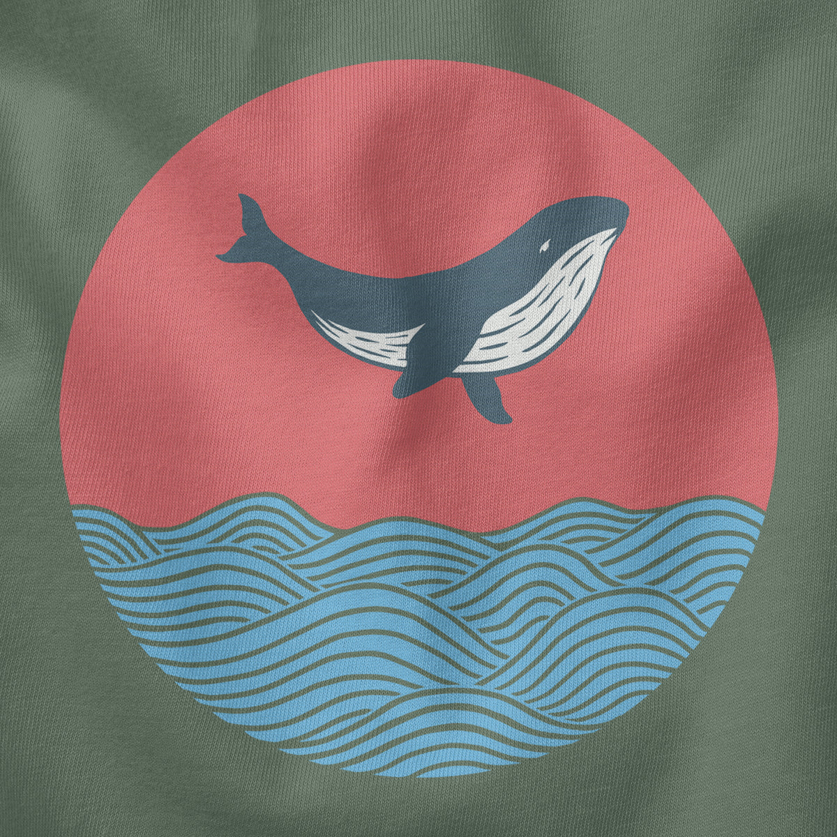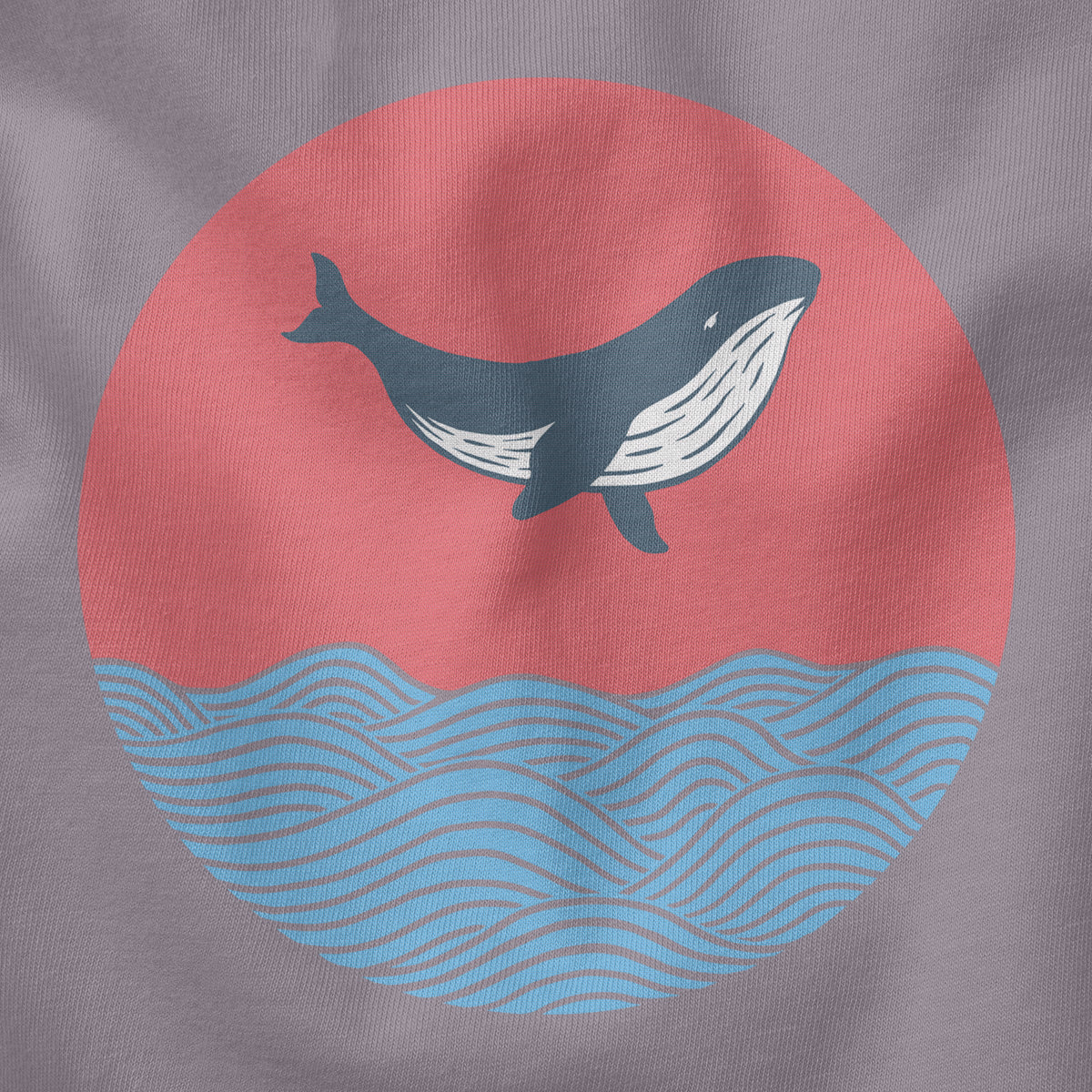 Whale Sunset Jumping In Ocean Waves Adult Cotton Tee T-Shirt