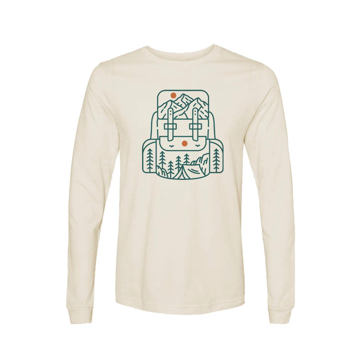 Trails in Great Outdoors Adult Long Sleeve Tee T-Shirt is a must-have for backpacking adventures. Explore nature as a backpacker and wander the wild with backpack. Perfect for nature backpacking trips.