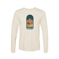 The Camper life with dog feels great Adult Long Sleeve Tee T-Shirt is ideal for dog-friendly camping adventures. Explore outdoors with your dog in this fun camper design. Enjoy the comfort of soft fabric while highlighting your love for dog and camper.