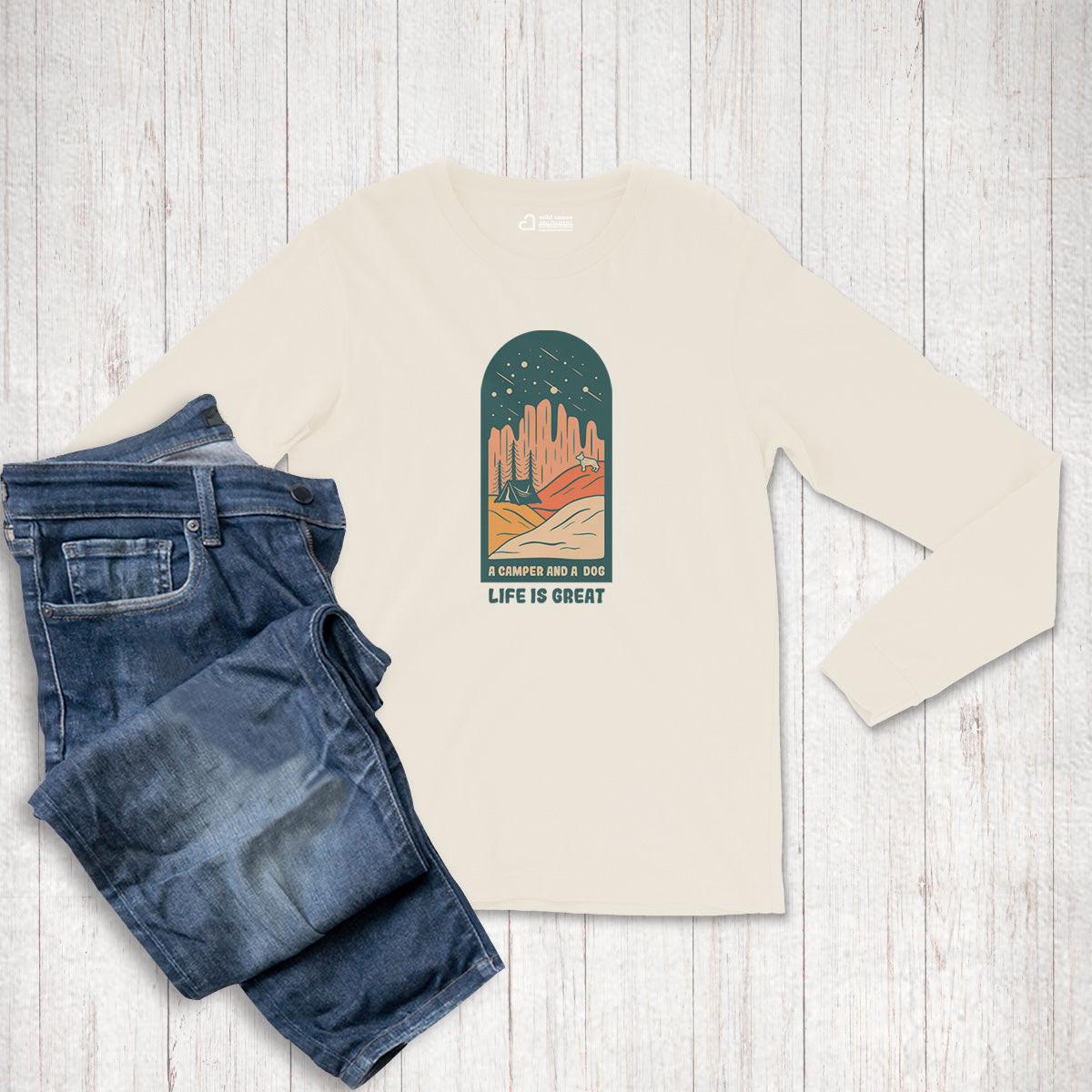 A Camper And A Dog Life Is Great Adventure Adult Long Sleeve Tee T-Shirt $39.99