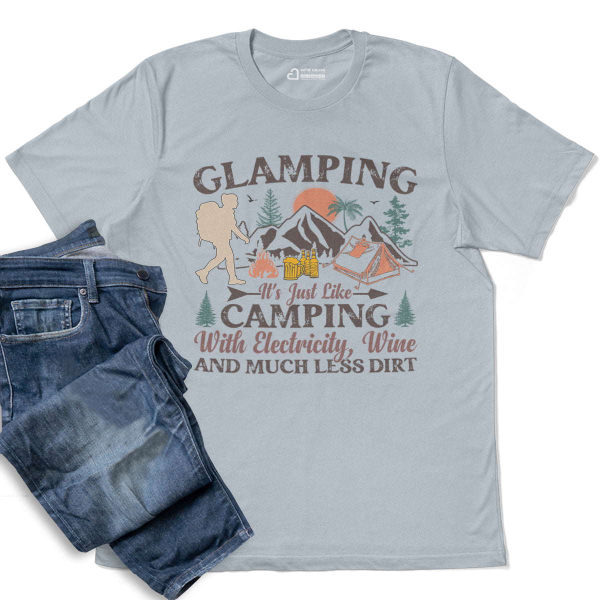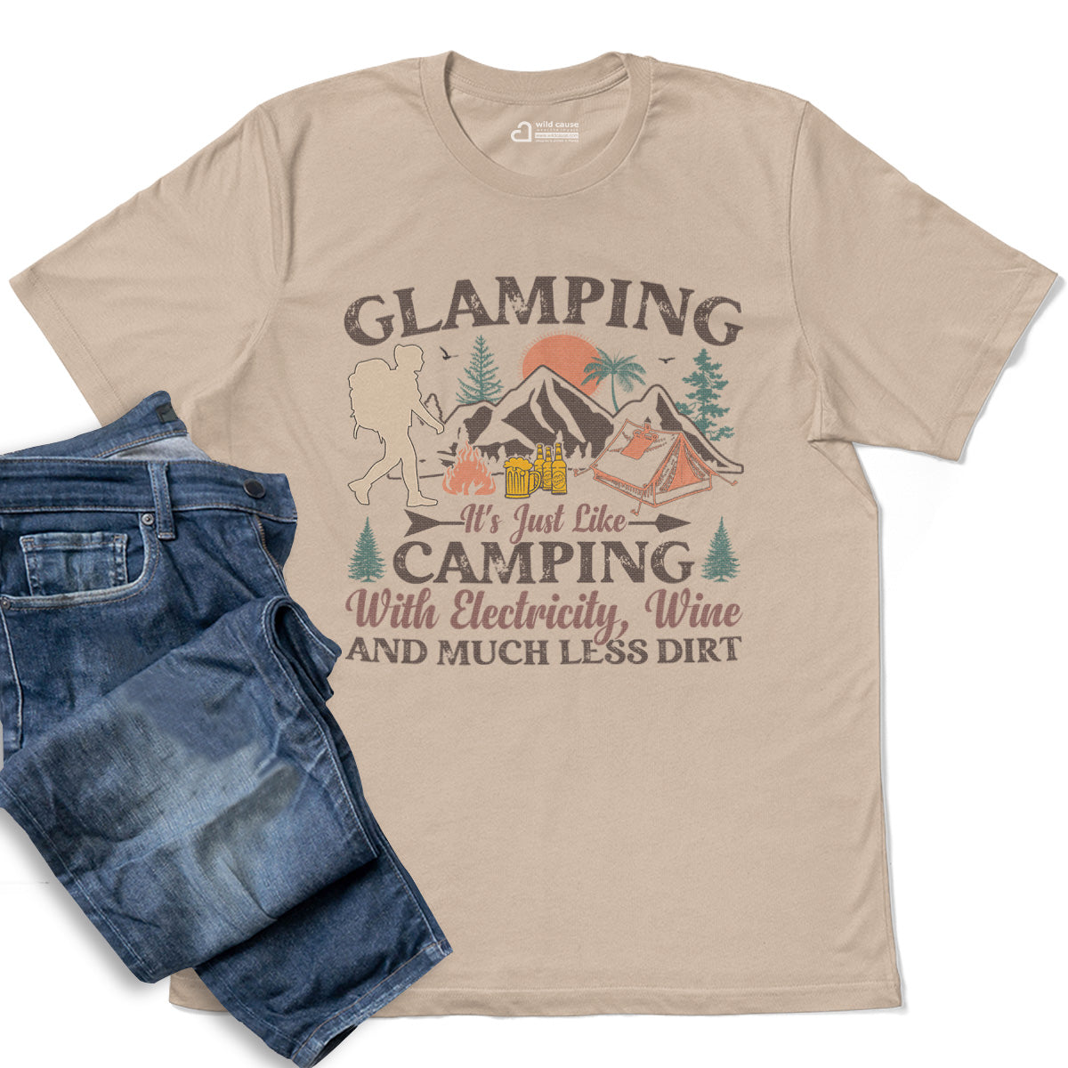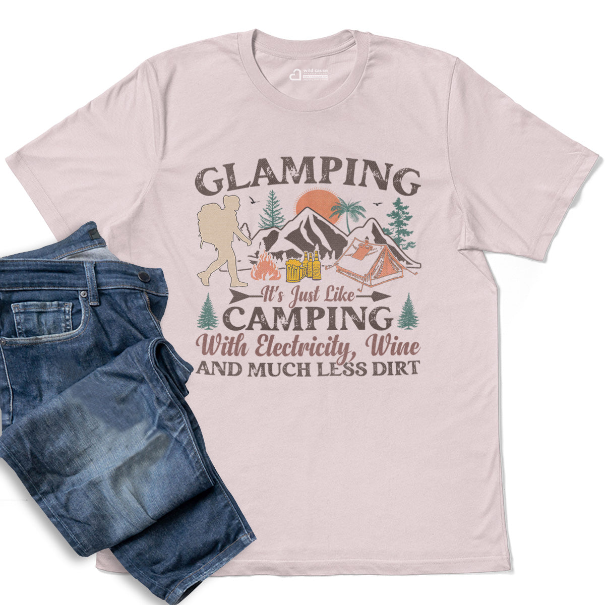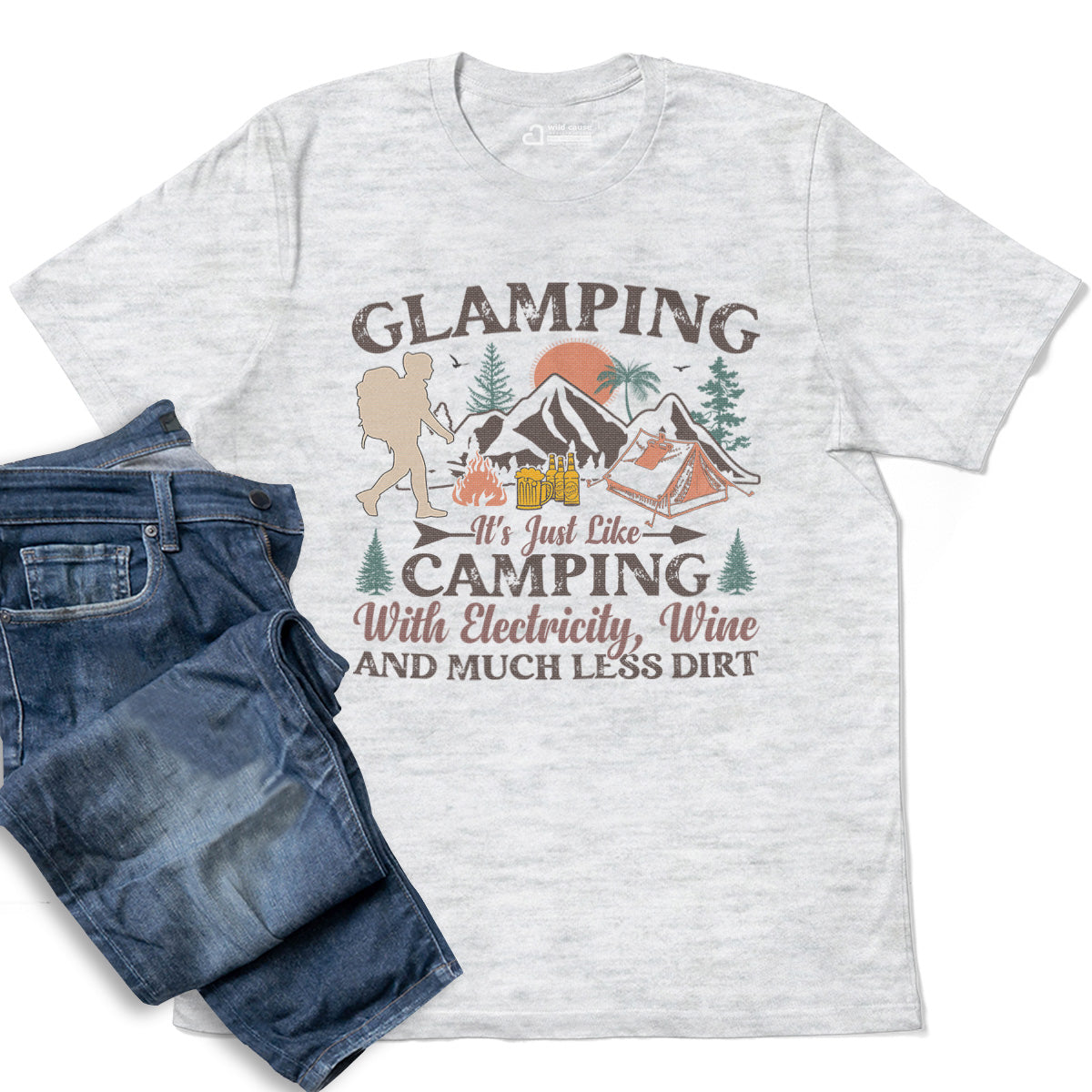 Comfort Glamping Camping With Wine And Electricity Adult Cotton Tee T-Shirt