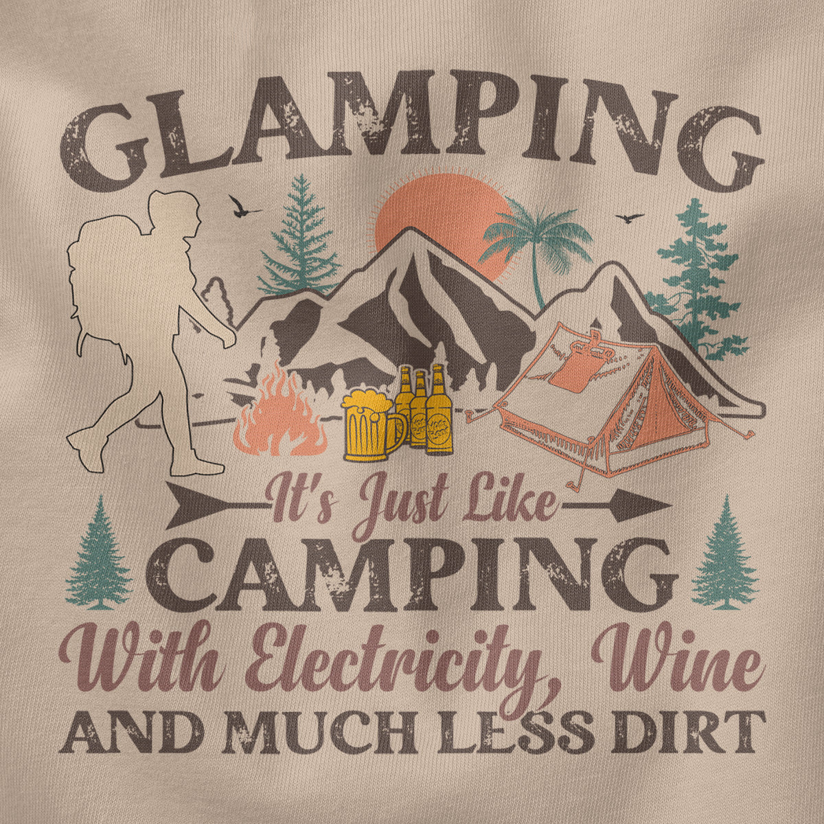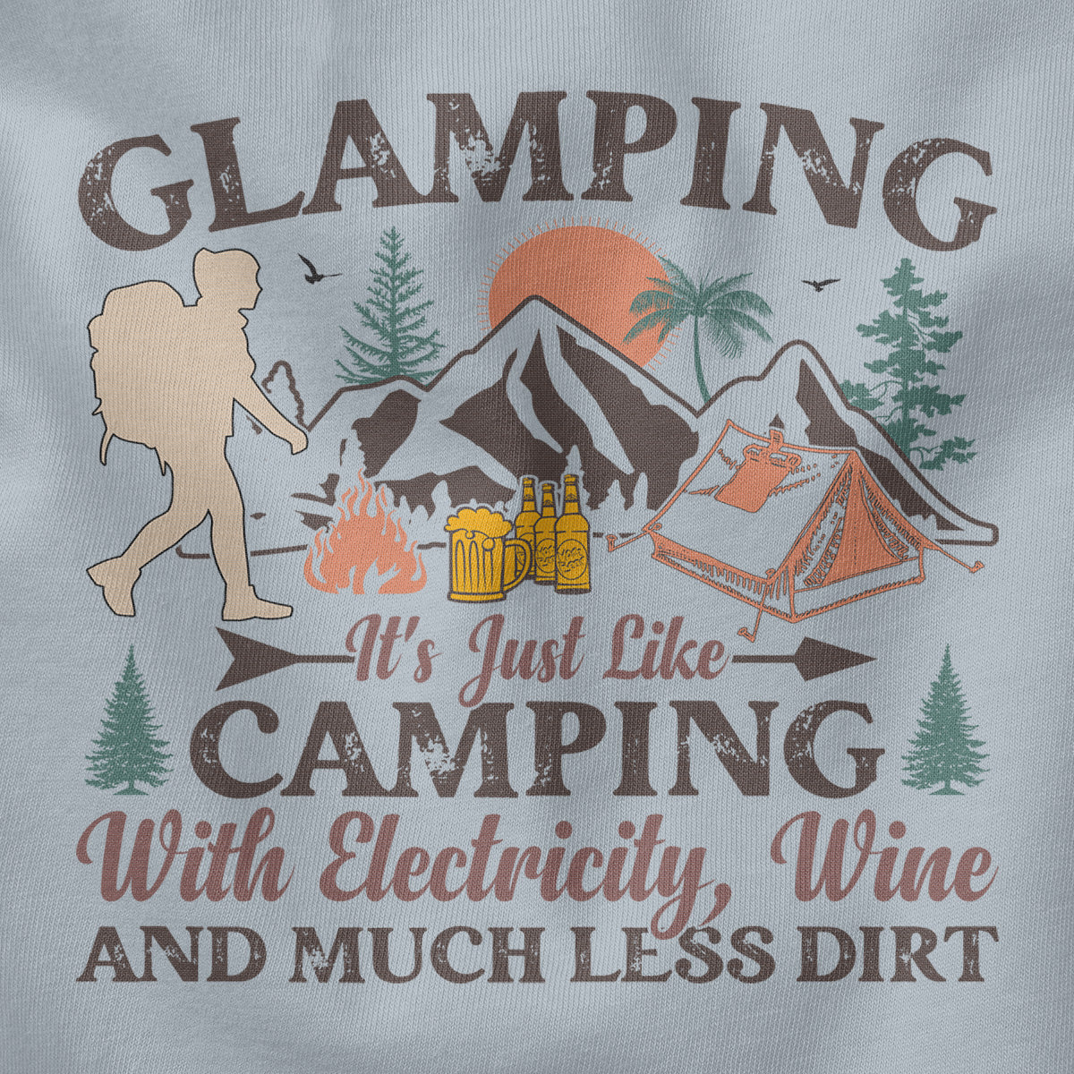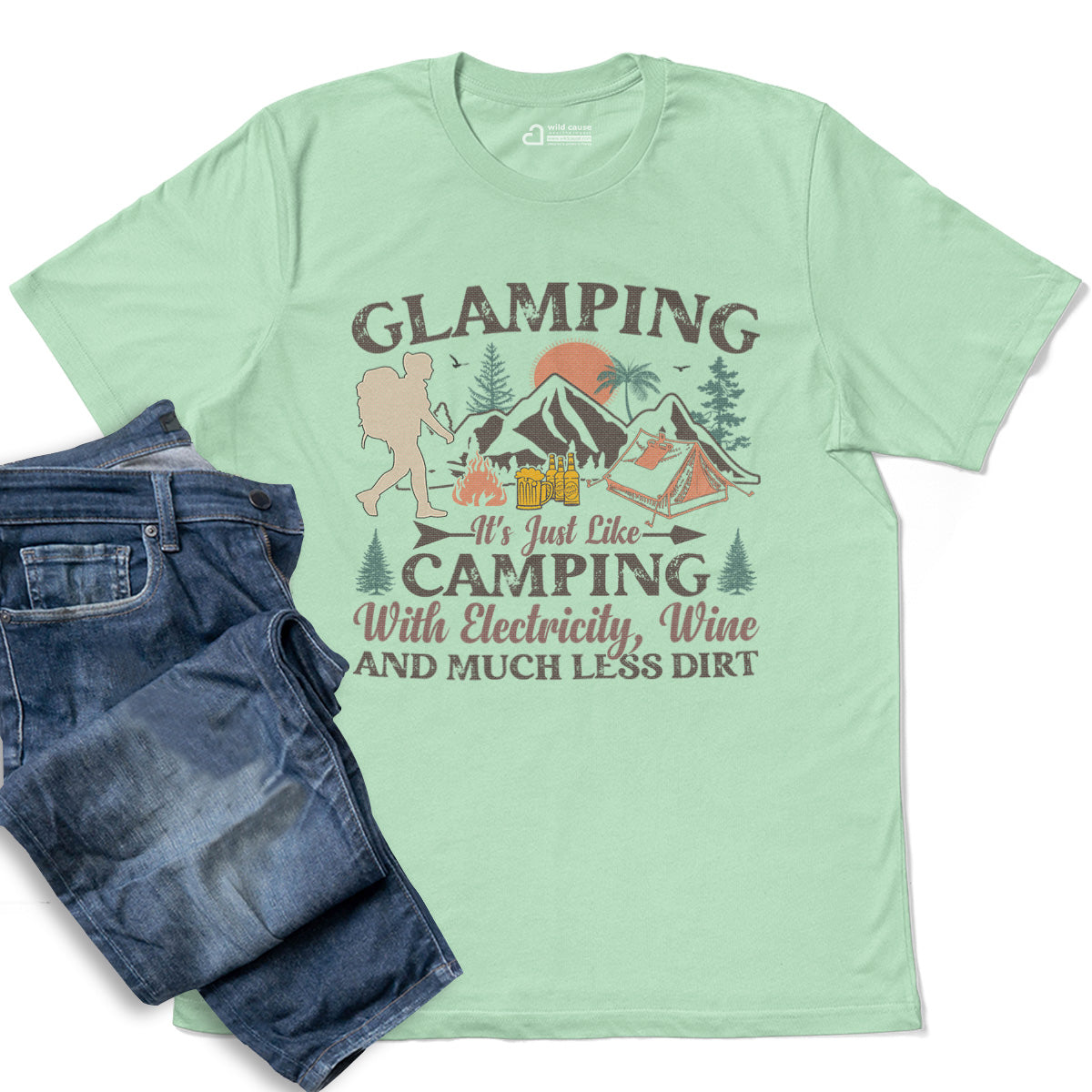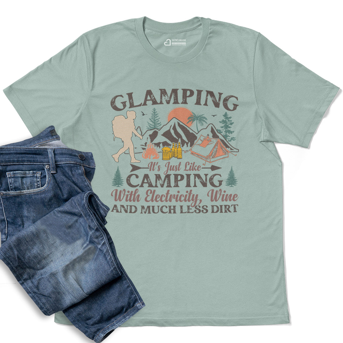 Comfort Glamping Camping With Wine And Electricity Adult Cotton Tee T-Shirt