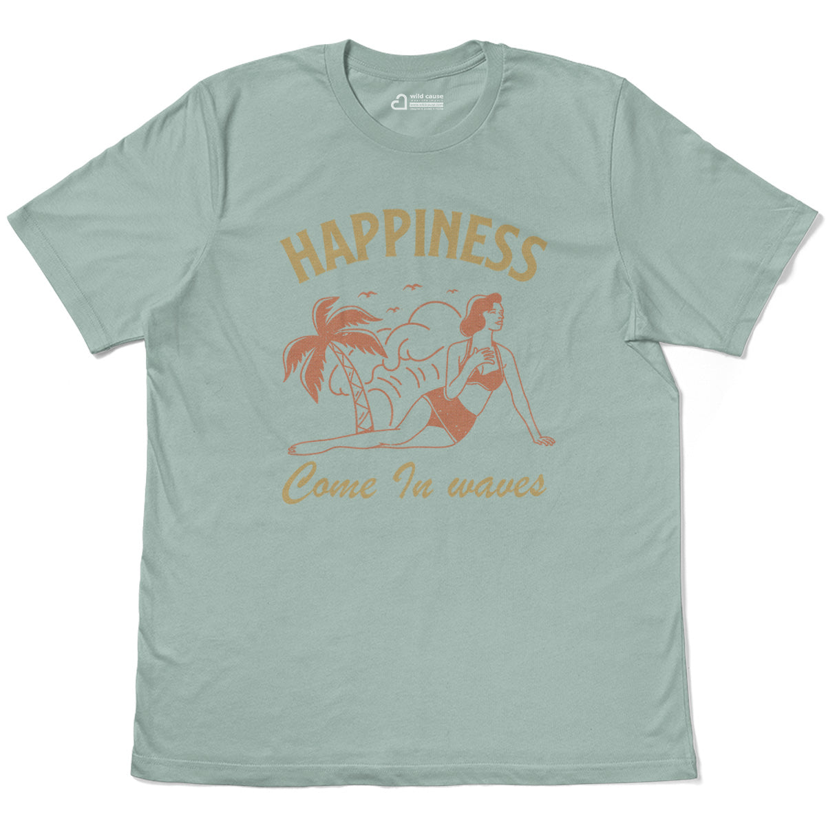 Happiness Come In Waves Beach Float Adult Cotton Tee T-Shirt $34.99