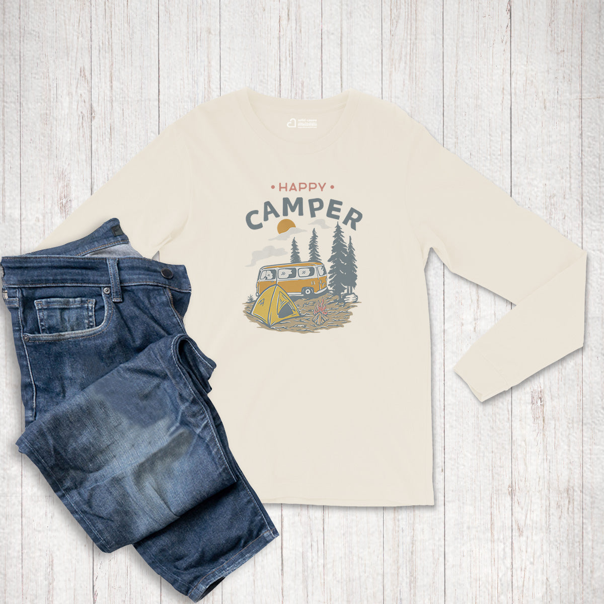 View Our positive impactHappy Camper Wilderness Outdoor Vibes Adult Long Sleeve Tee T-Shirt