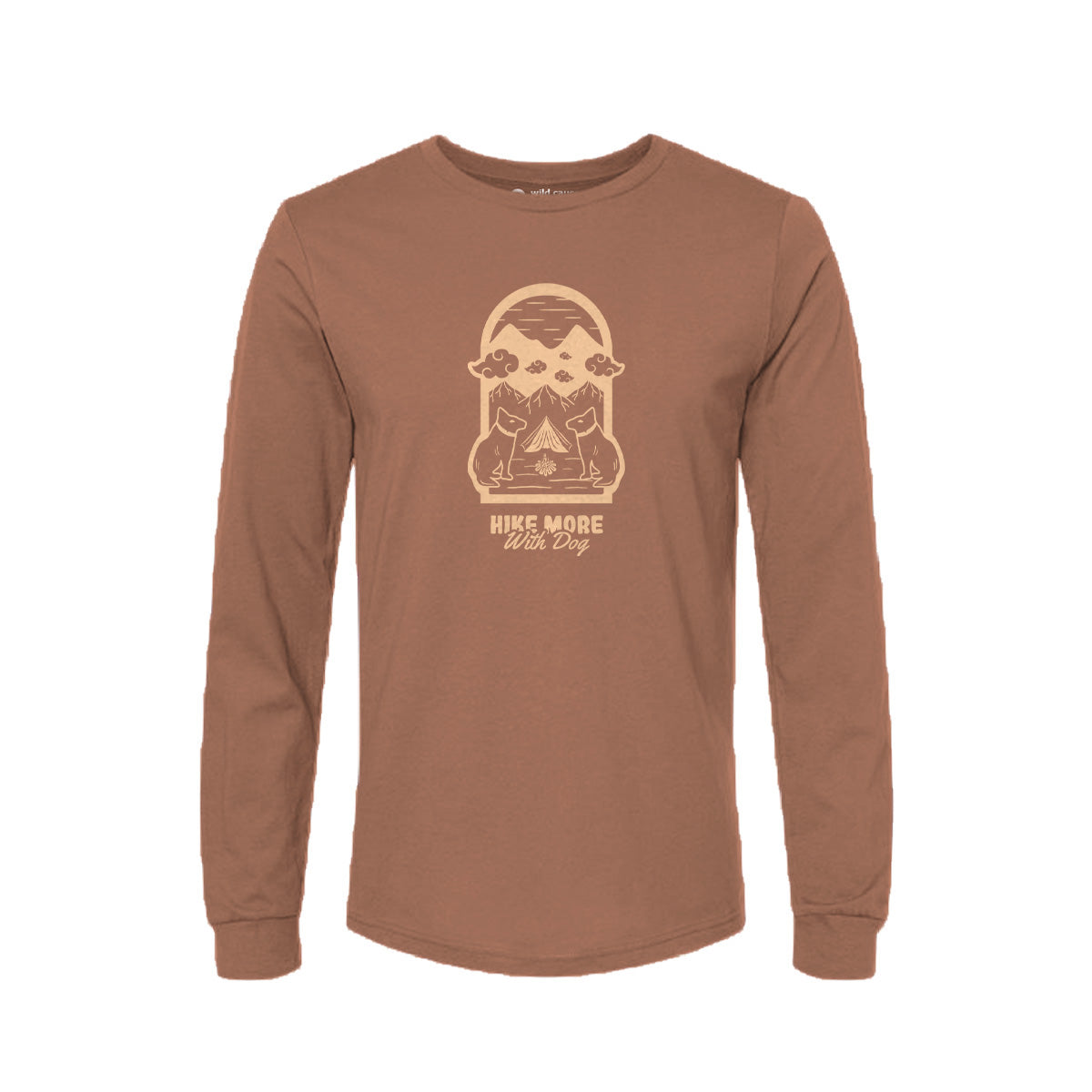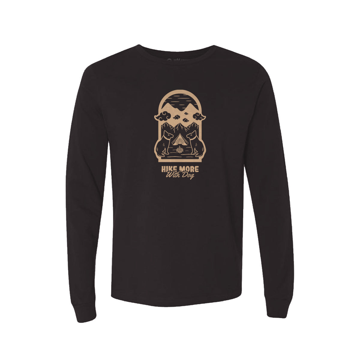 The Hike More with your Dog Adult Long Sleeve Tee T-Shirt is ideal for outdoor hike with pet enthusiasts. Featuring the slogan 'More hiking more wagging' it celebrates happy trails happy tails. With wagging tails on trails, this tee is perfect for hiking with happy dogs.