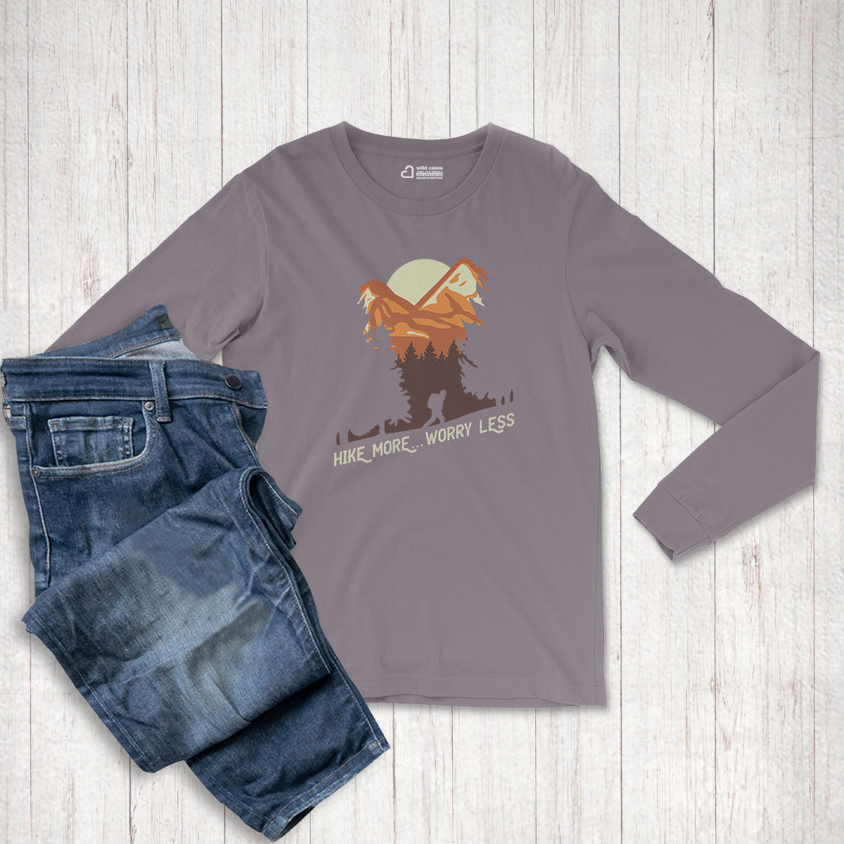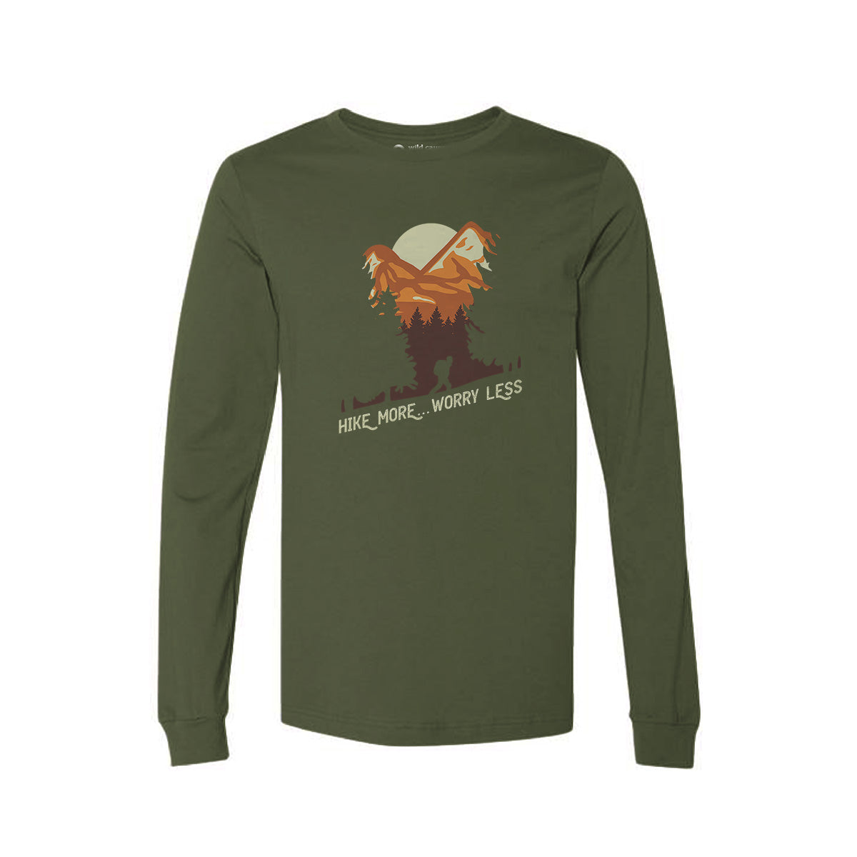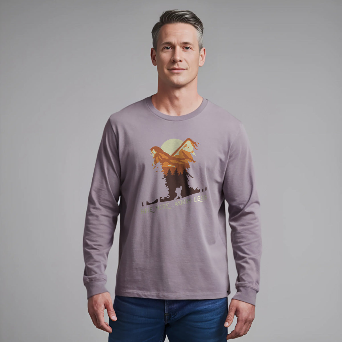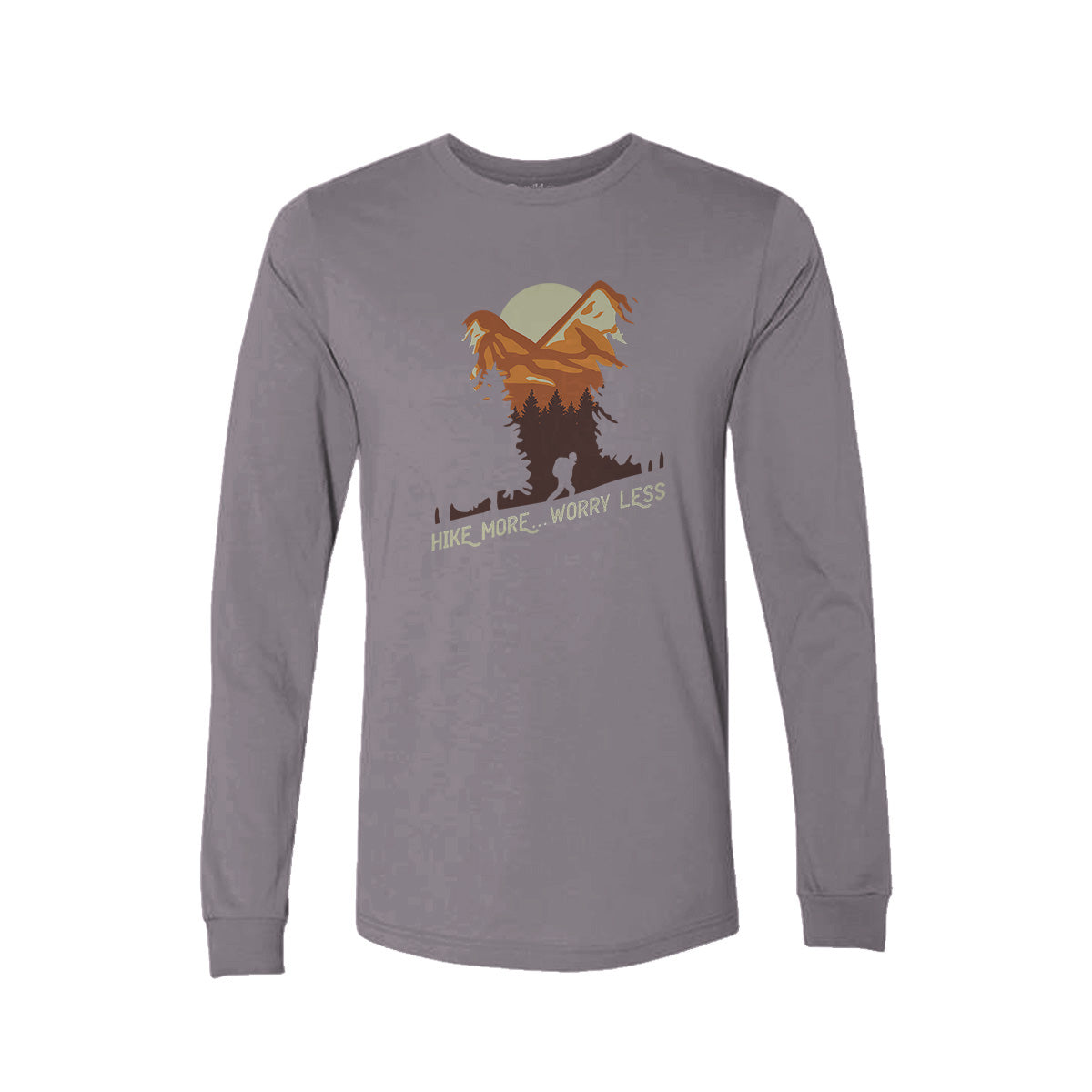 Hike More Worry Less Mountain Hiker Adult Long Sleeve Tee T-Shirt