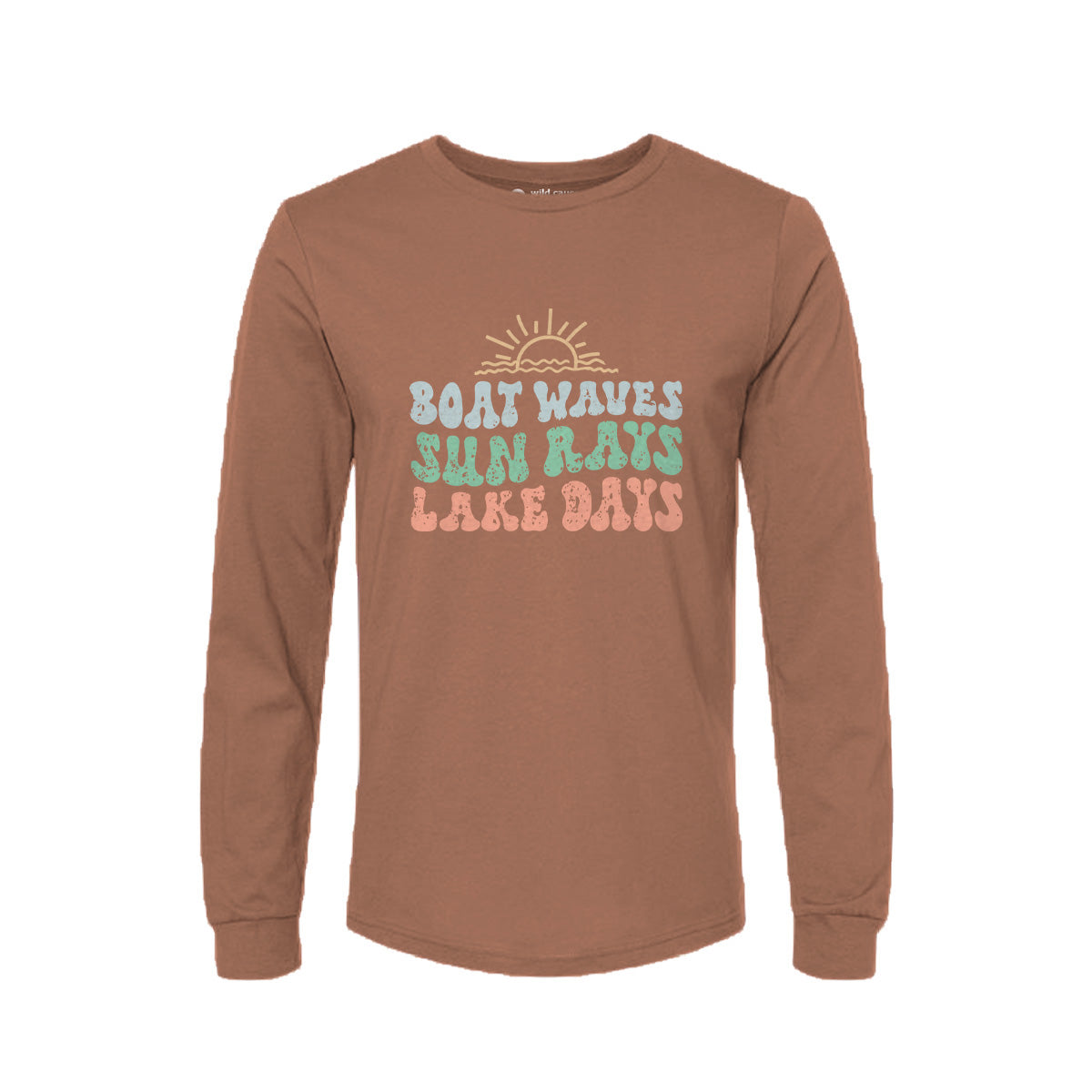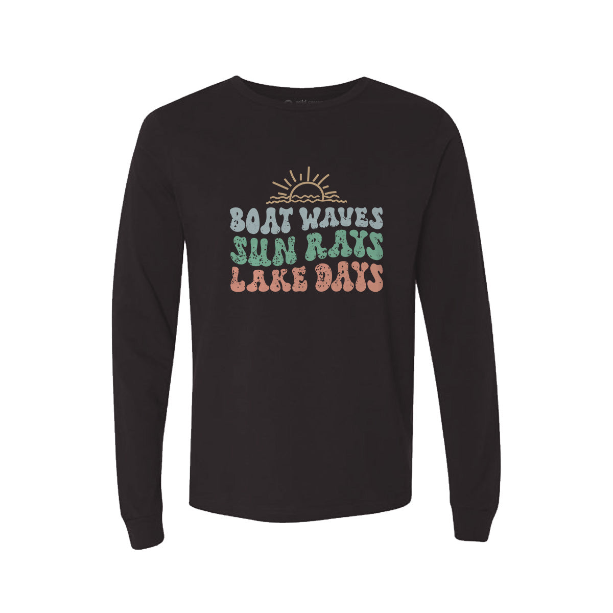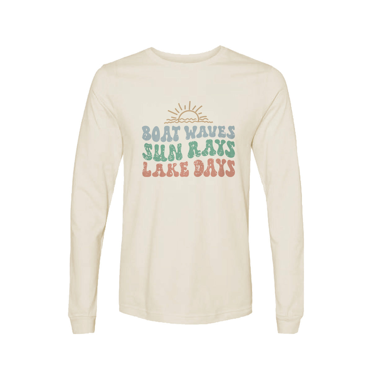 The Sun, waves, and lake fun! Adult Long Sleeve Tee T-Shirt is ideal for those seeking summer boating adventure. Featuring a design that captures the essence of cruising through the waves and carefree waterfront living. Perfect for golden hour on the lake with tan lines & good times.