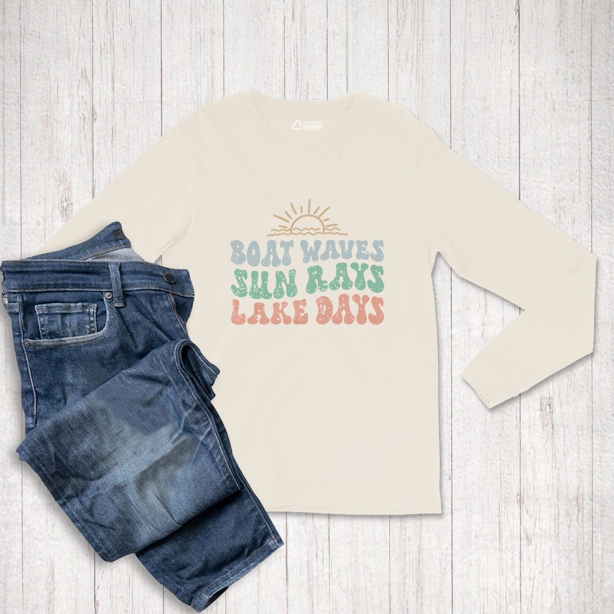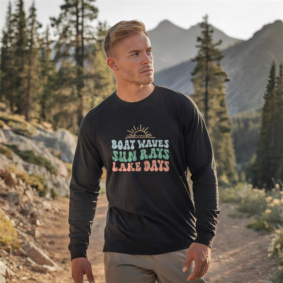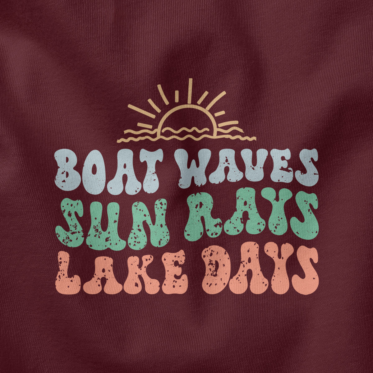 The Sun, waves, and lake fun! Adult Long Sleeve Tee T-Shirt is ideal for those seeking summer boating adventure. Featuring a design that captures the essence of cruising through the waves and carefree waterfront living. Perfect for golden hour on the lake with tan lines & good times.
