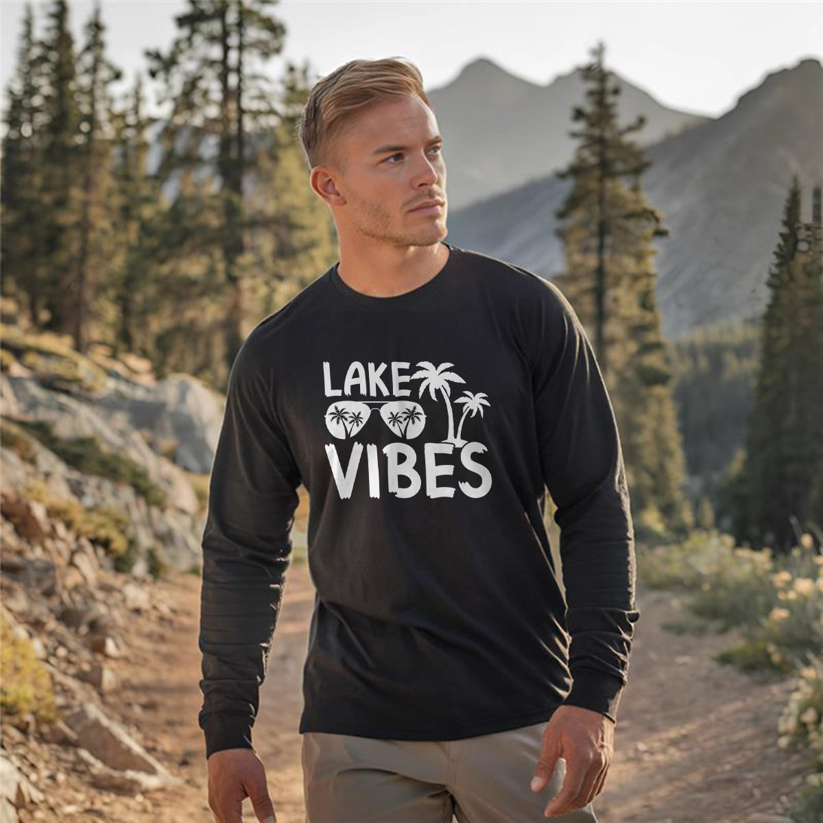Lake Vibes Summer Adventure Adult Long Sleeve Tee T-Shirt