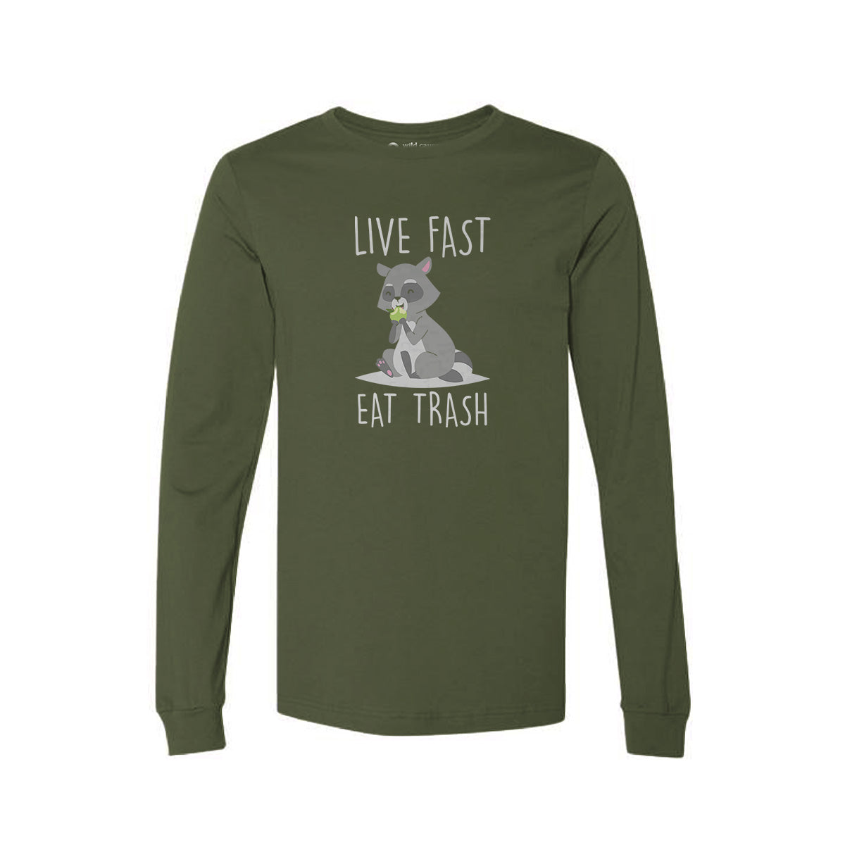Live Fast Eat Trash Raccoon Humor Adult Long Sleeve Tee T-Shirt