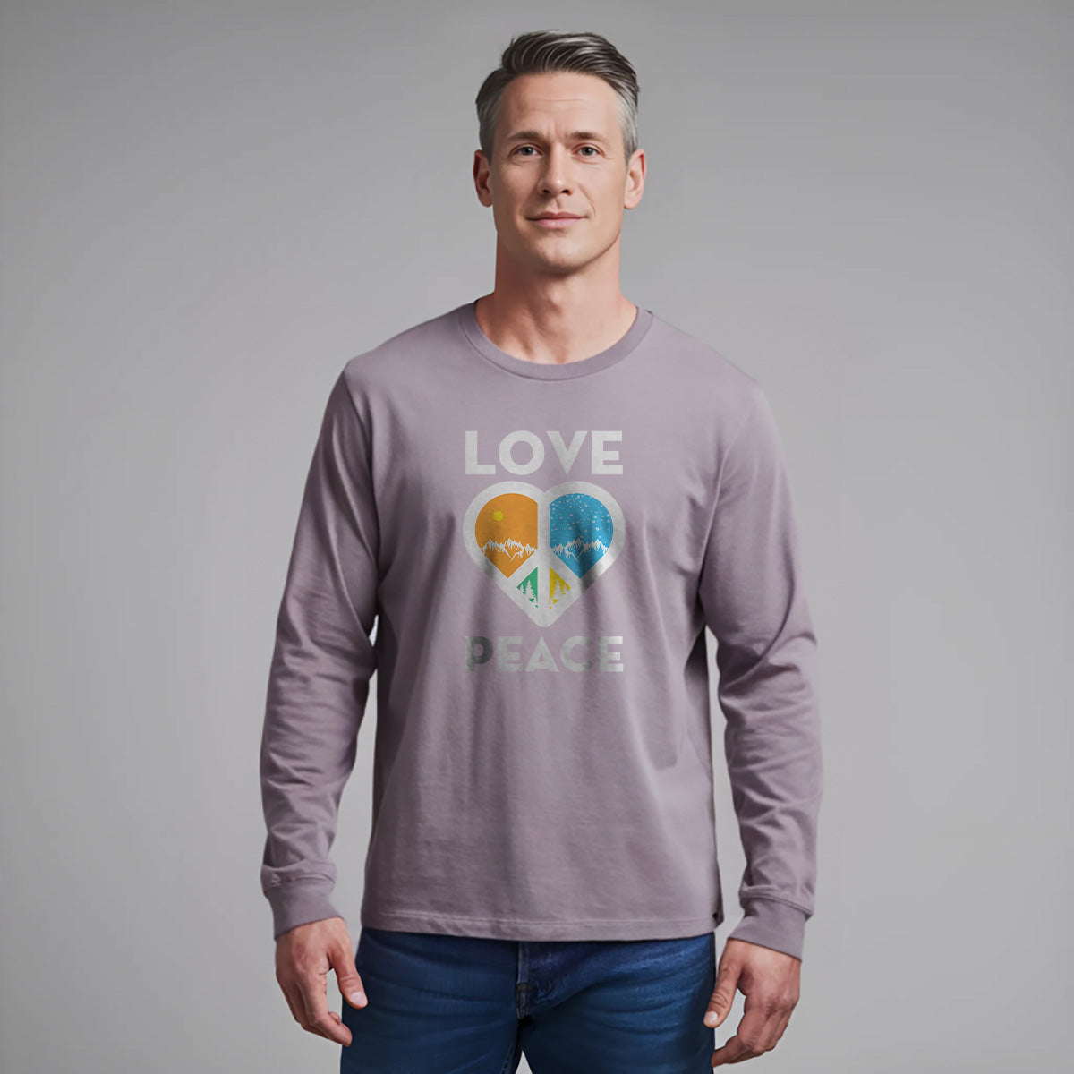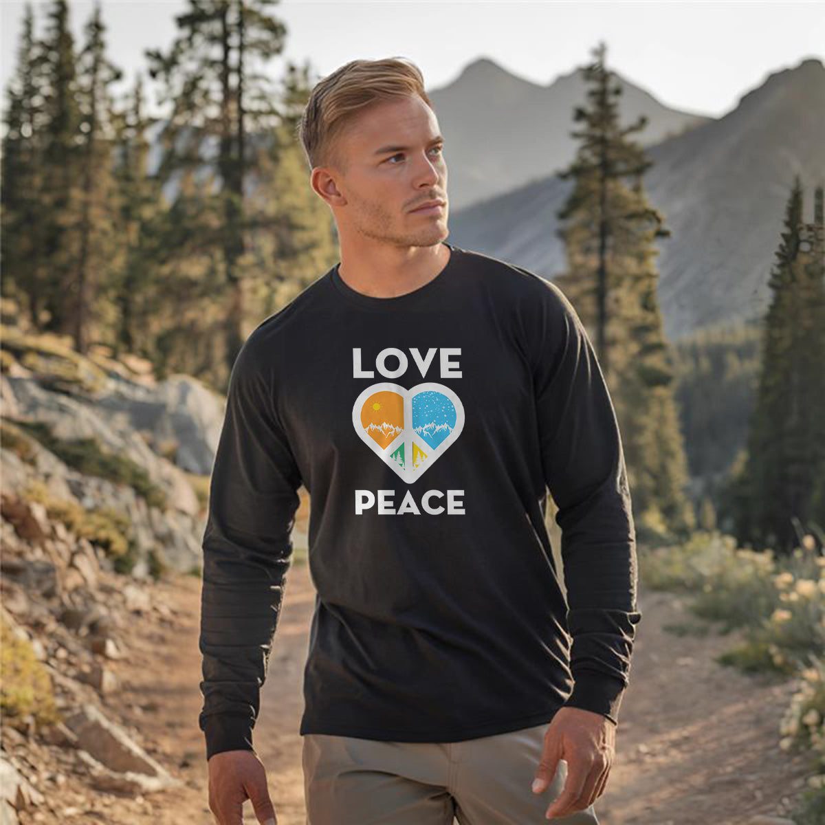 Love Peace Mountains Adventure Awaits Adult Long Sleeve Tee T-Shirt