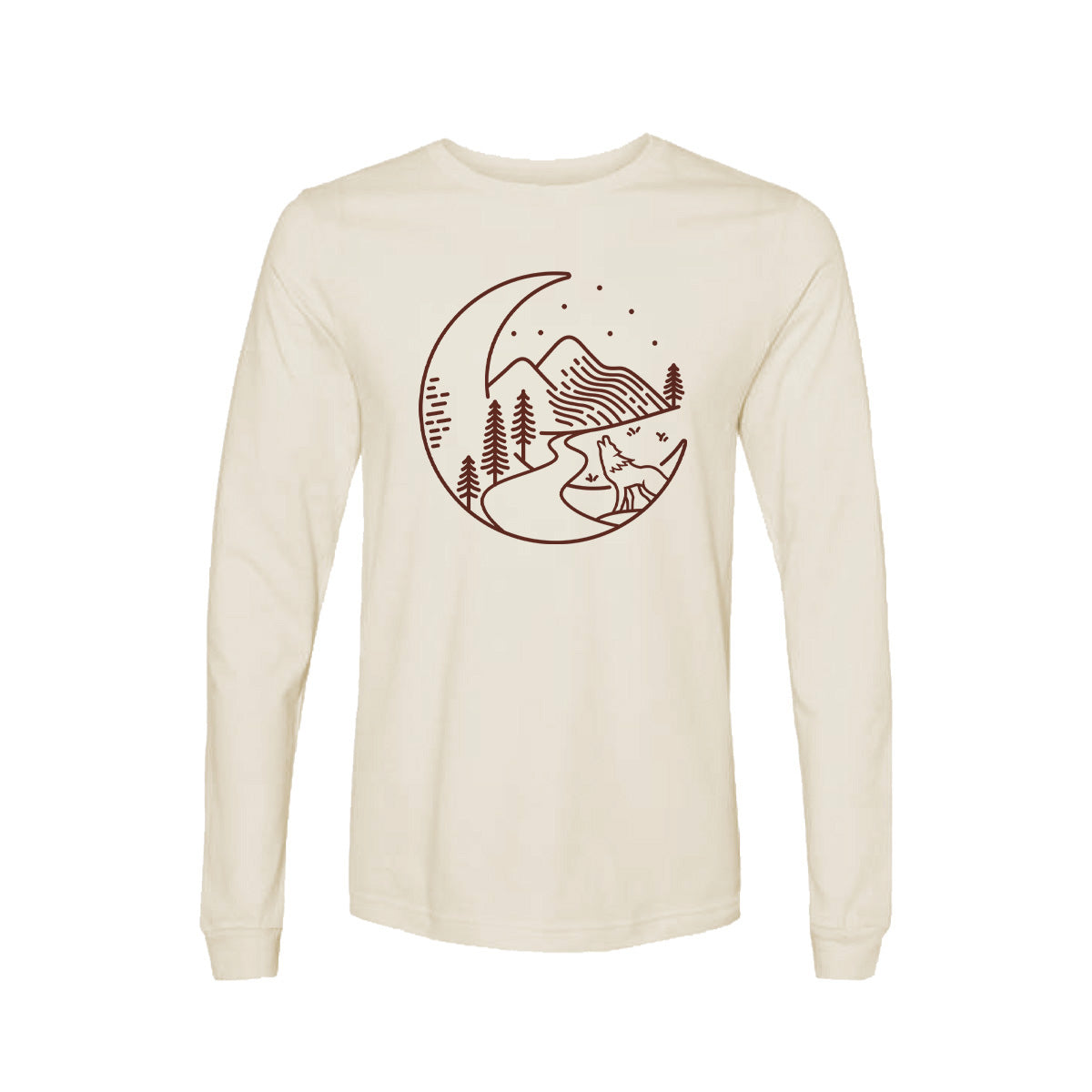 Moonlit Wild Wolf Mountain Trail Adventure Adult Long Sleeve Tee T-Shirt