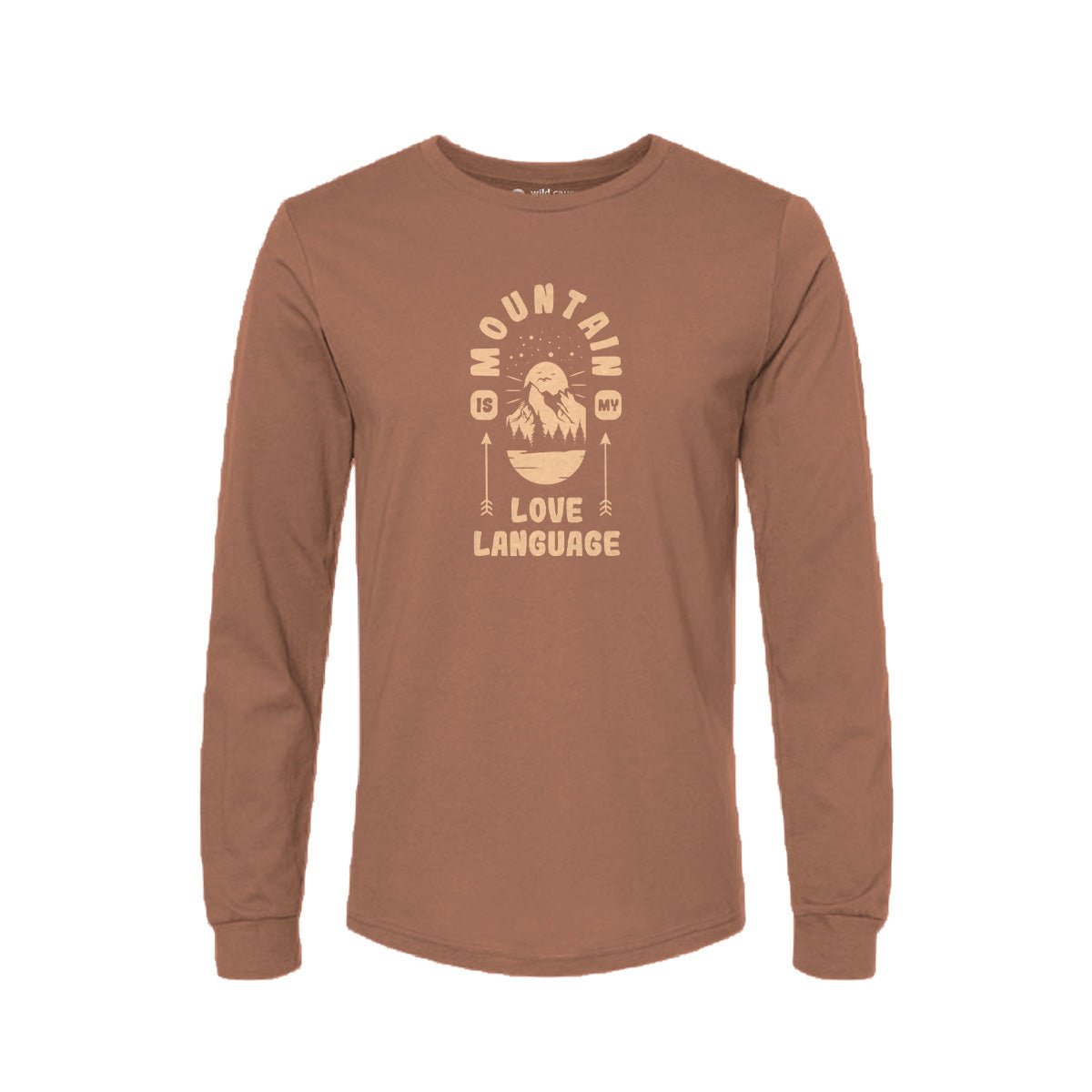 Feel the love in mountain vibes with this Adult Long Sleeve Tee T-Shirt. Nature's love language is captured in the mountain love vibes and love for mountain peaks design. Made from high-quality material for comfort and style.