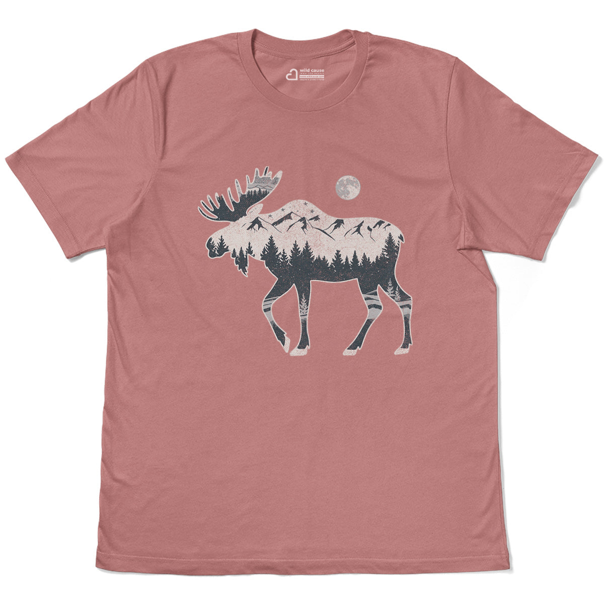 Mountain Wildlife Moose Under Night Sky Adult Cotton Tee T-Shirt $34.99