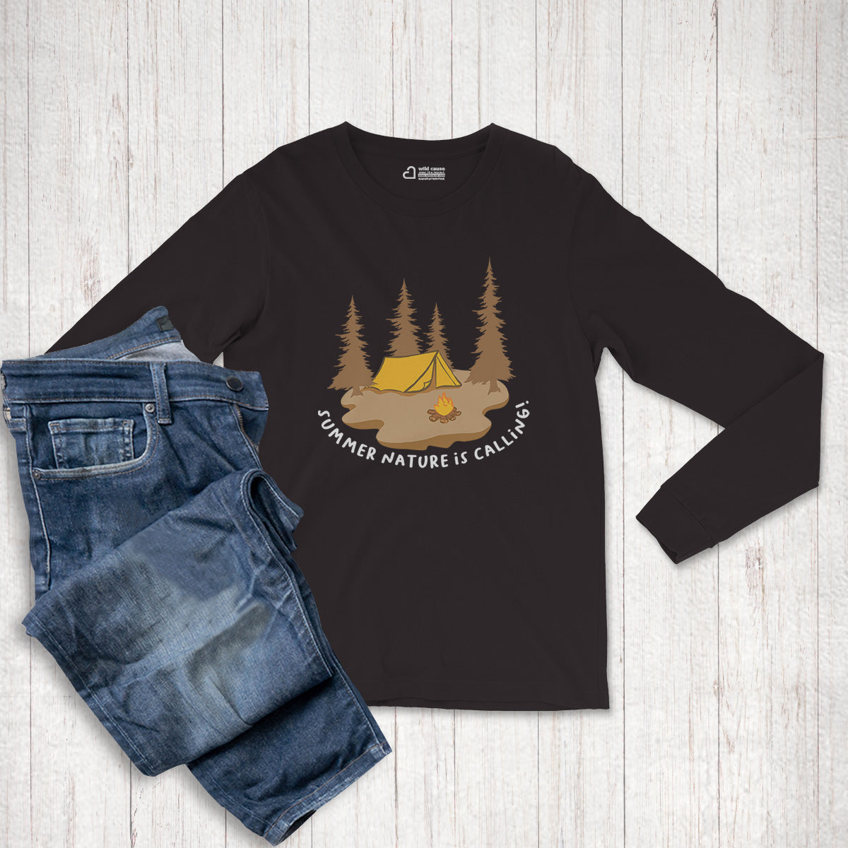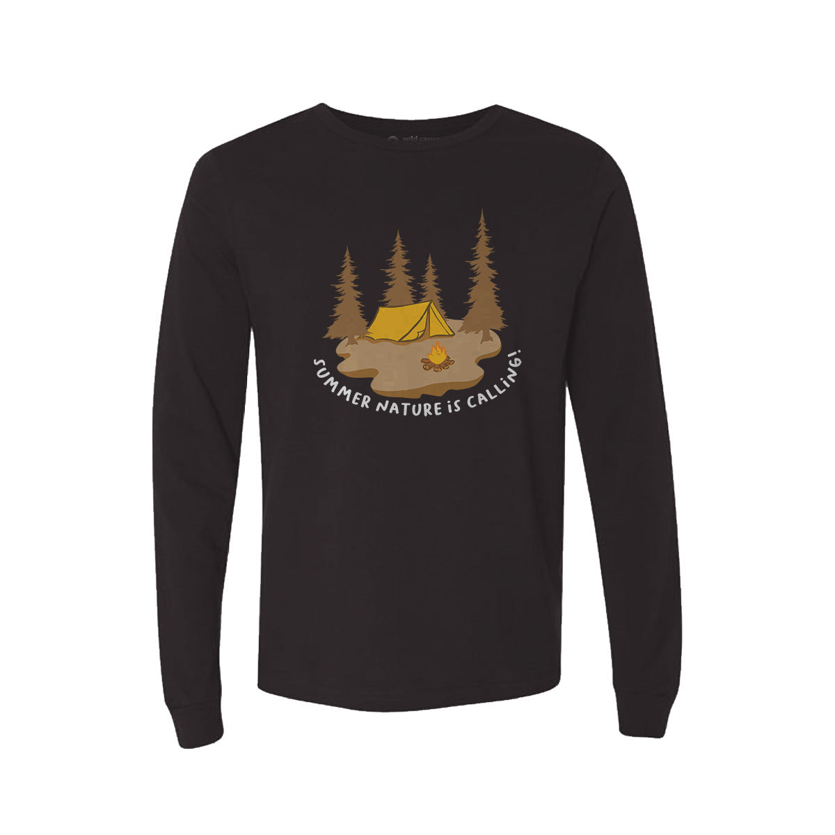 Nature calls for summer camping fun Adult Long Sleeve Tee T-Shirt is perfect for summer adventures in nature. Answer nature call this summer and explore the outdoors with this comfy tee. Nature awaits you this summer.