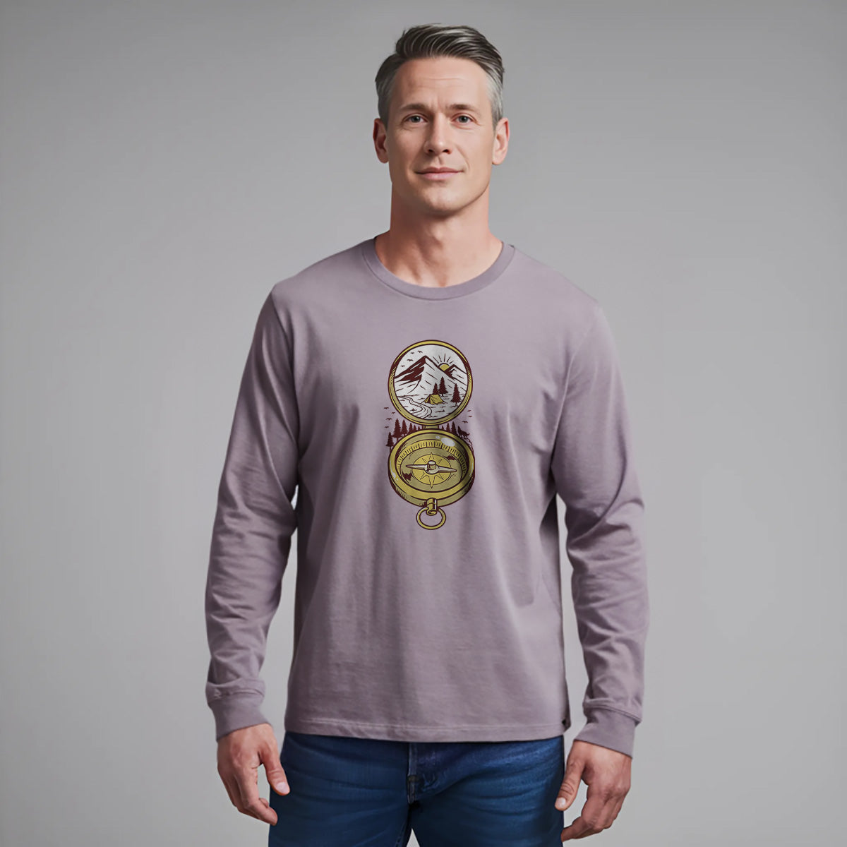 Nature's Compass-Camping Adventure Fun Adult Long Sleeve Tee T-Shirt