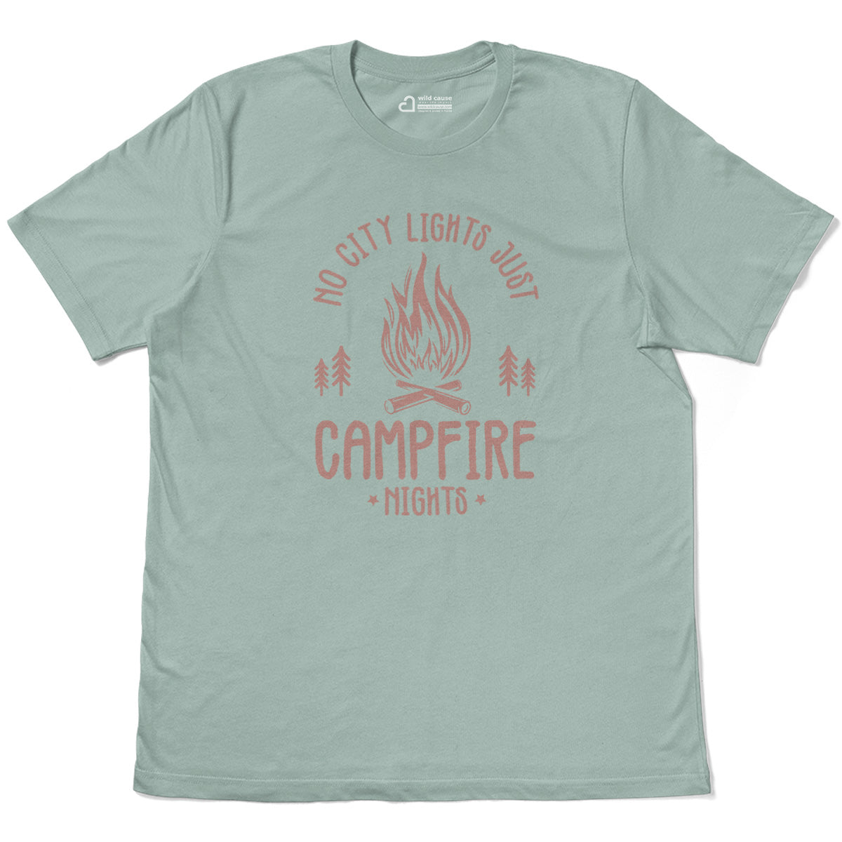 No City Lights Just Campfire Nights Camping Fun Adult Cotton Tee T-Shirt