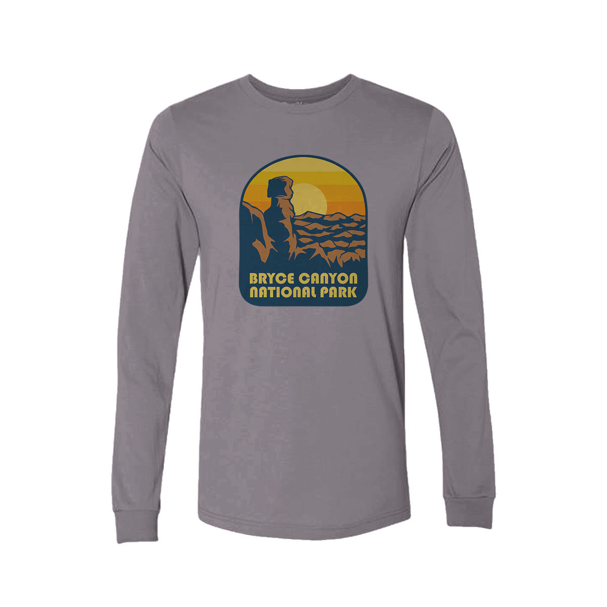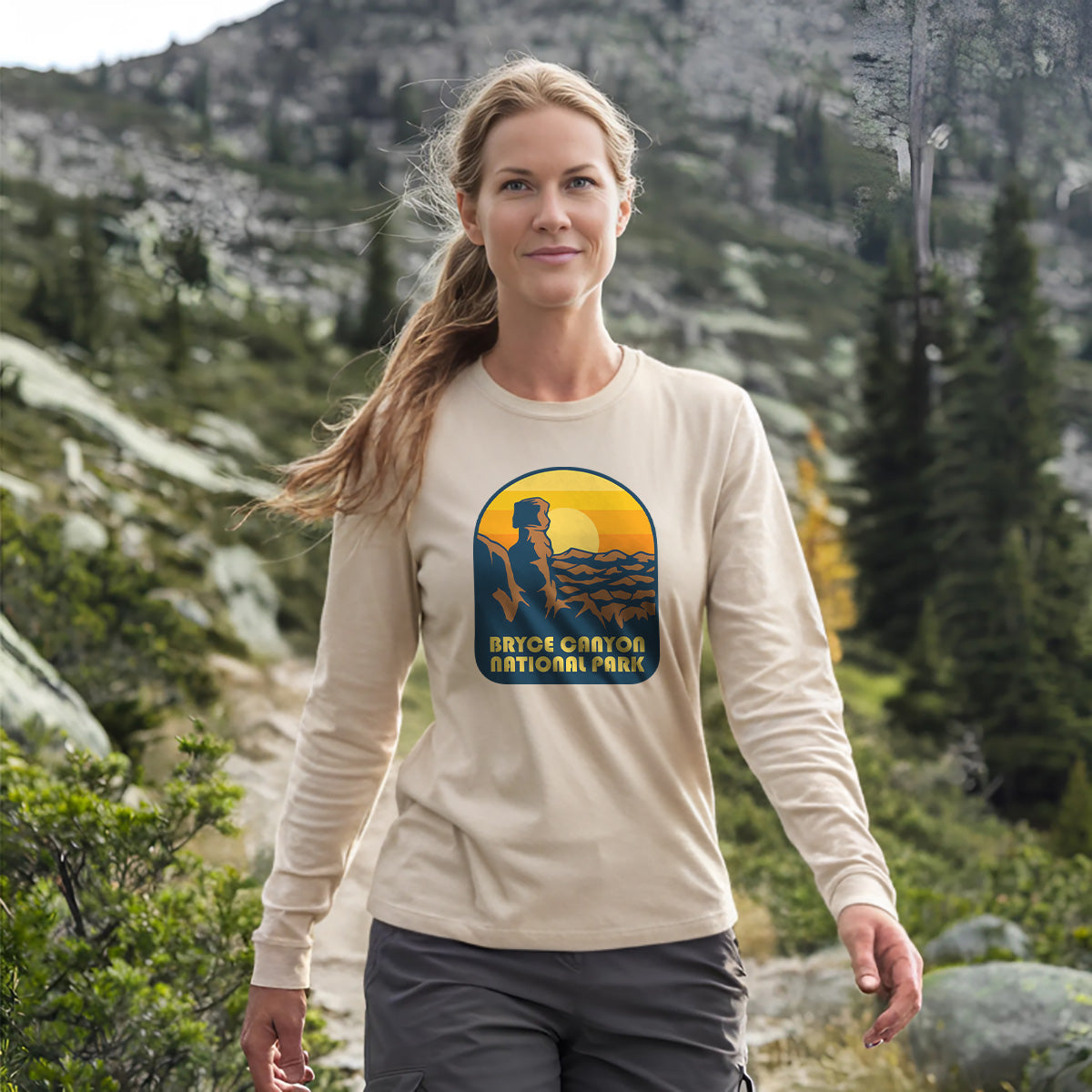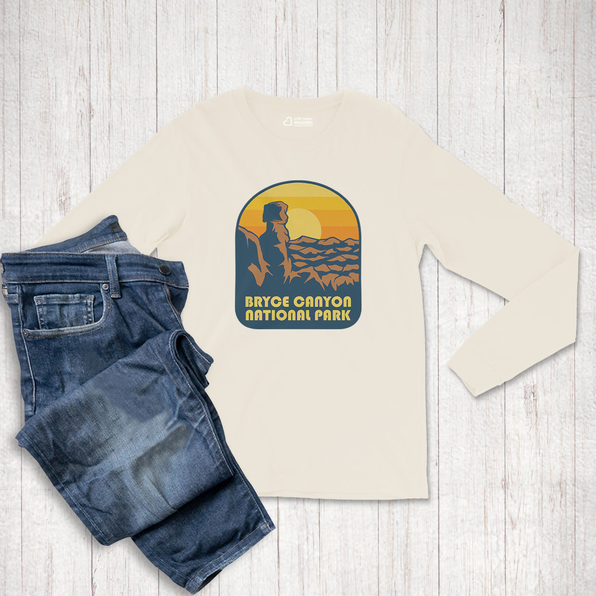 The Bryce Canyon National Park Trek Adult Long Sleeve Tee T-Shirt is ideal for outdoor Bryce Canyon journey enthusiasts. Featuring stunning Bryce Canyon Park views, it is perfect for Bryce Canyon adventures on hiking trails in Bryce Canyon National Park.