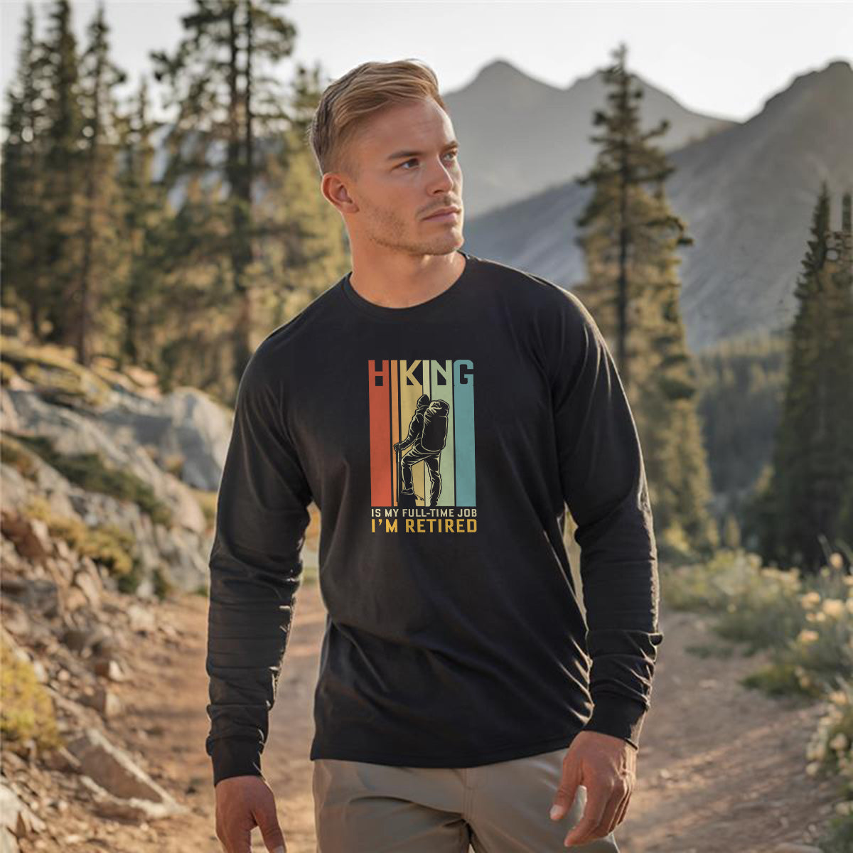 The Retired but Hiking Full Time Adult Long Sleeve Tee T-Shirt is ideal for retirees who still enjoy hiking every day. Made from durable material, this shirt is perfect for those whose daily routine involves hiking after retirement.