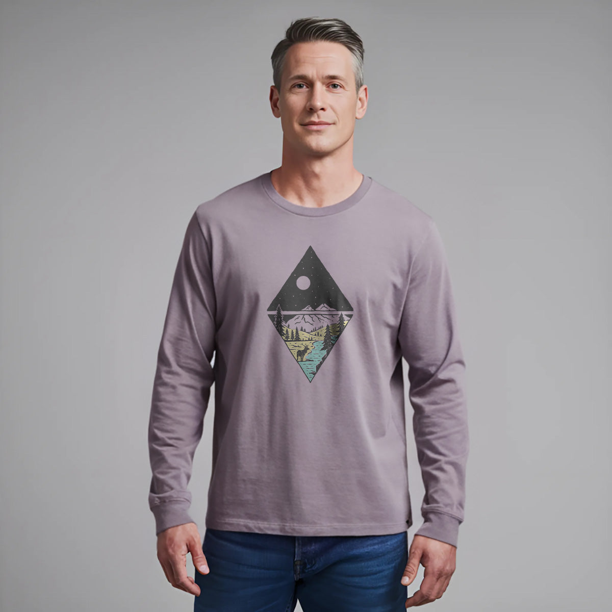 Peaceful Mountain Scenic Night Sky Vibe Adult Long Sleeve Tee T-Shirt