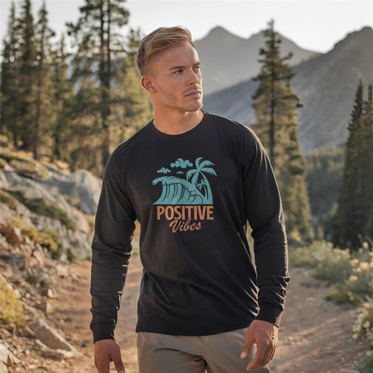 Catch positive vibes with beach surfing Adult Long Sleeve Tee T-Shirt. Embrace the ocean waves and good vibes in summer with this stylish tee. Featuring waves and positive beach vibes, it is perfect for those who seek positive vibes and sunshine.