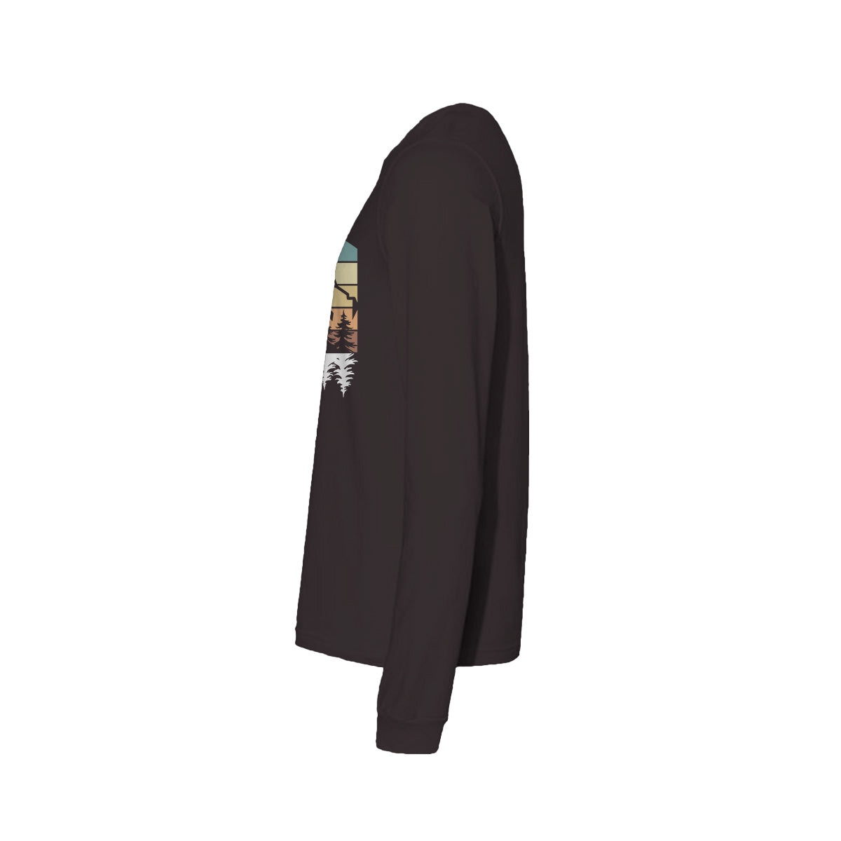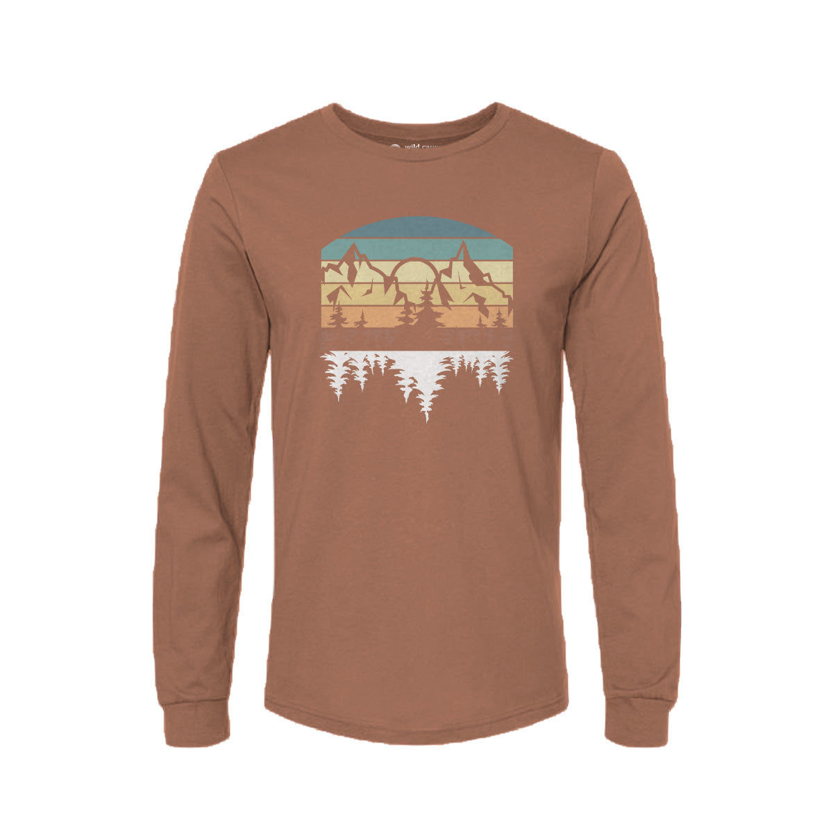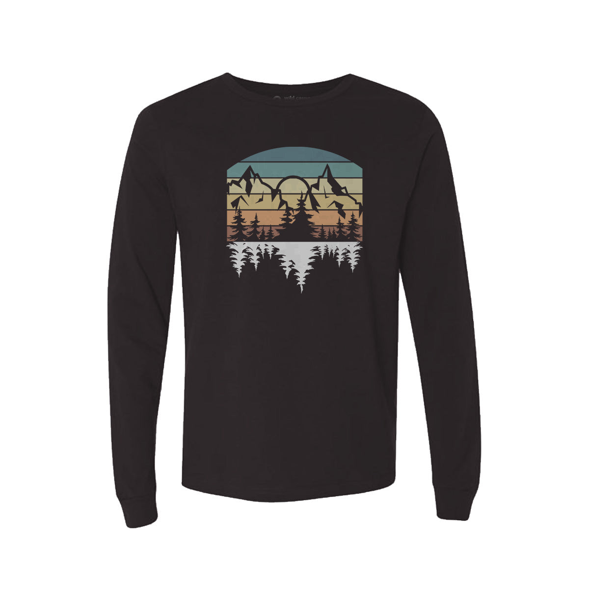Embrace the retro sunset vibes with our Vintage vibes in the peaks! Adult Long Sleeve Tee T-Shirt. Featuring vintage mountains and scenic sunset views, this tee captures the essence of a retro landscape and vintage nature.