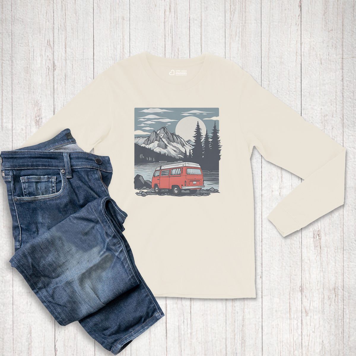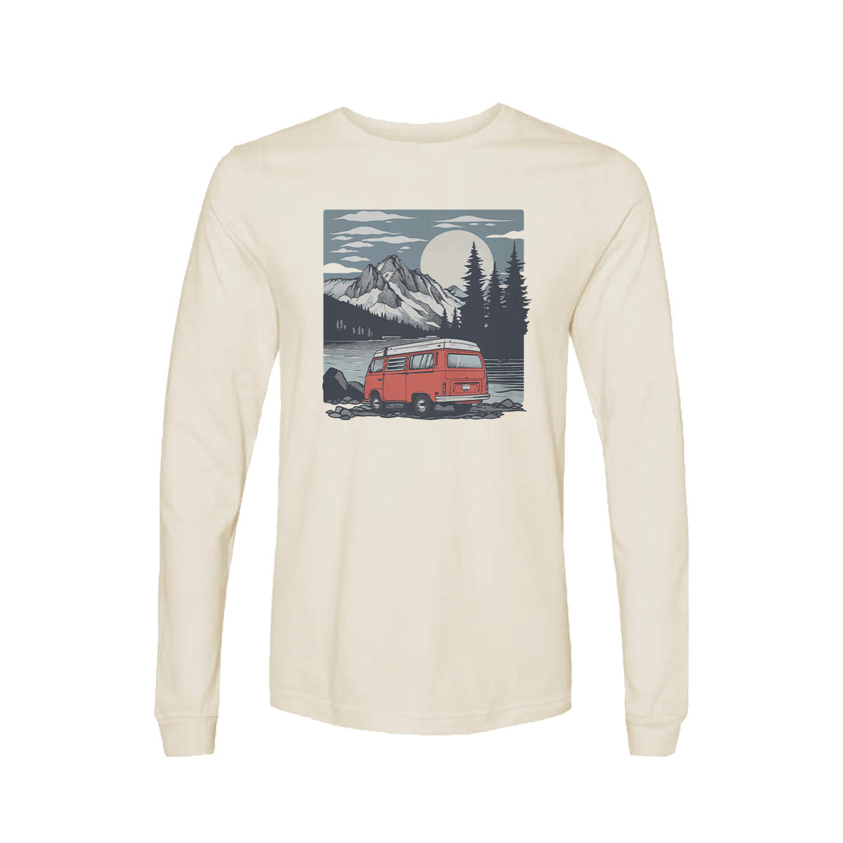 Retro Camper Van Mountain Adventure By Lake Adult Long Sleeve Tee T-Shirt