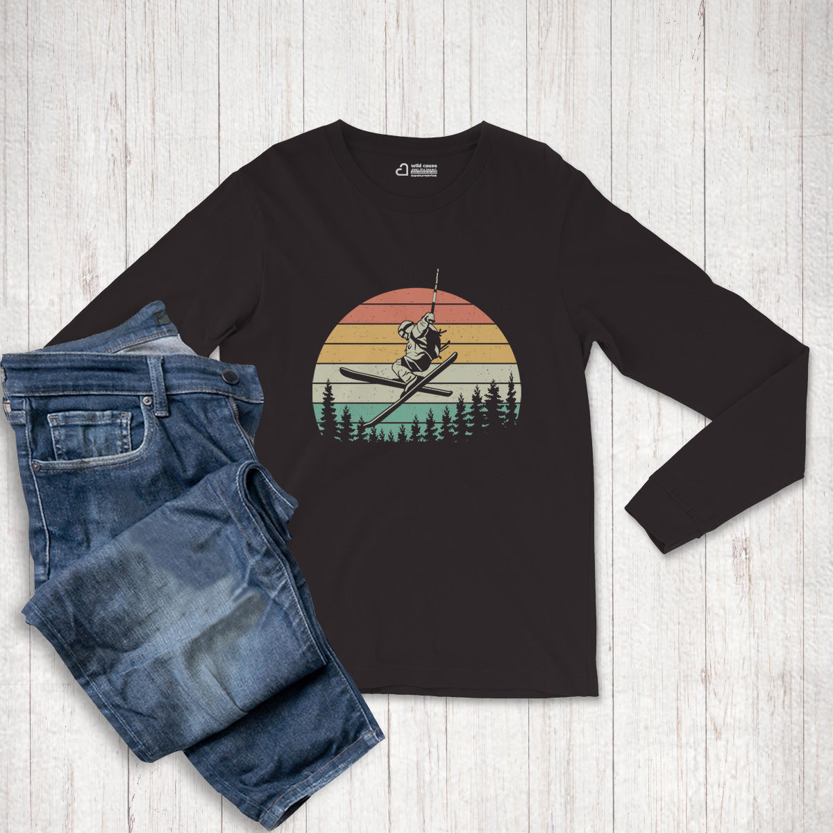 The Retro Snowboarder Adult Long Sleeve Tee T-Shirt is a stylish choice for ski jumping enthusiasts. Featuring a vintage design, it showcases winter mountain skiing and skiing snow trails. Perfect for winter sports skiing lovers seeking a snow skiing adventure.