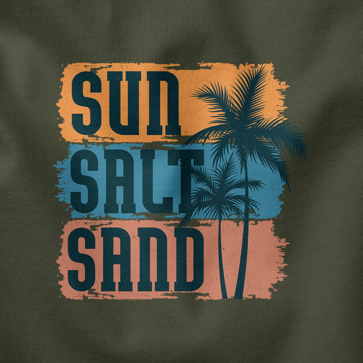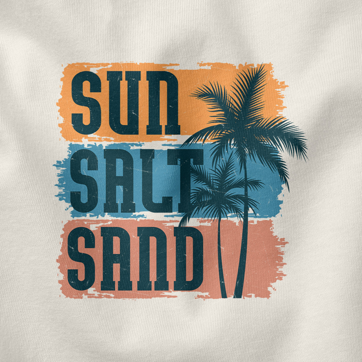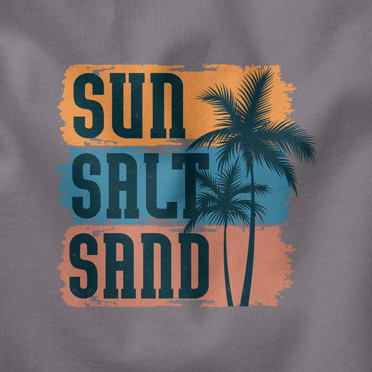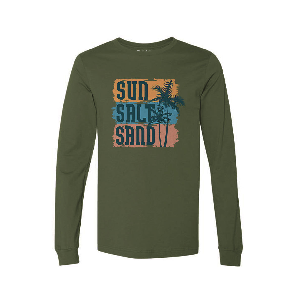 The Sun, salt, sand, beach summer fun Adult Long Sleeve Tee T-Shirt is ideal for sun bathing and relaxing by the shore. Embrace the salt breeze and waves with this design that captures sun days at the beach. Feel the sand stuck everywhere with this comfortable and stylish tee.