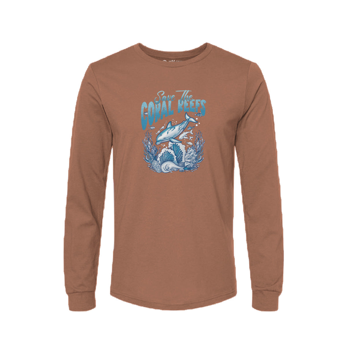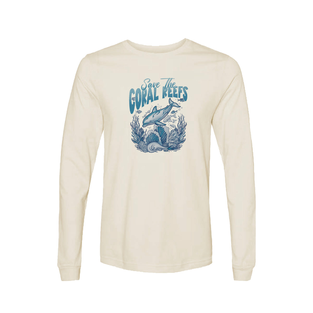 The Save coral reefs, protect oceans Adult Long Sleeve Tee T-Shirt is a statement piece for coral reef conservation. Show your support for protecting coral reefs and saving the ocean reefs. Help maintain healthy ocean life because reefs need our help.